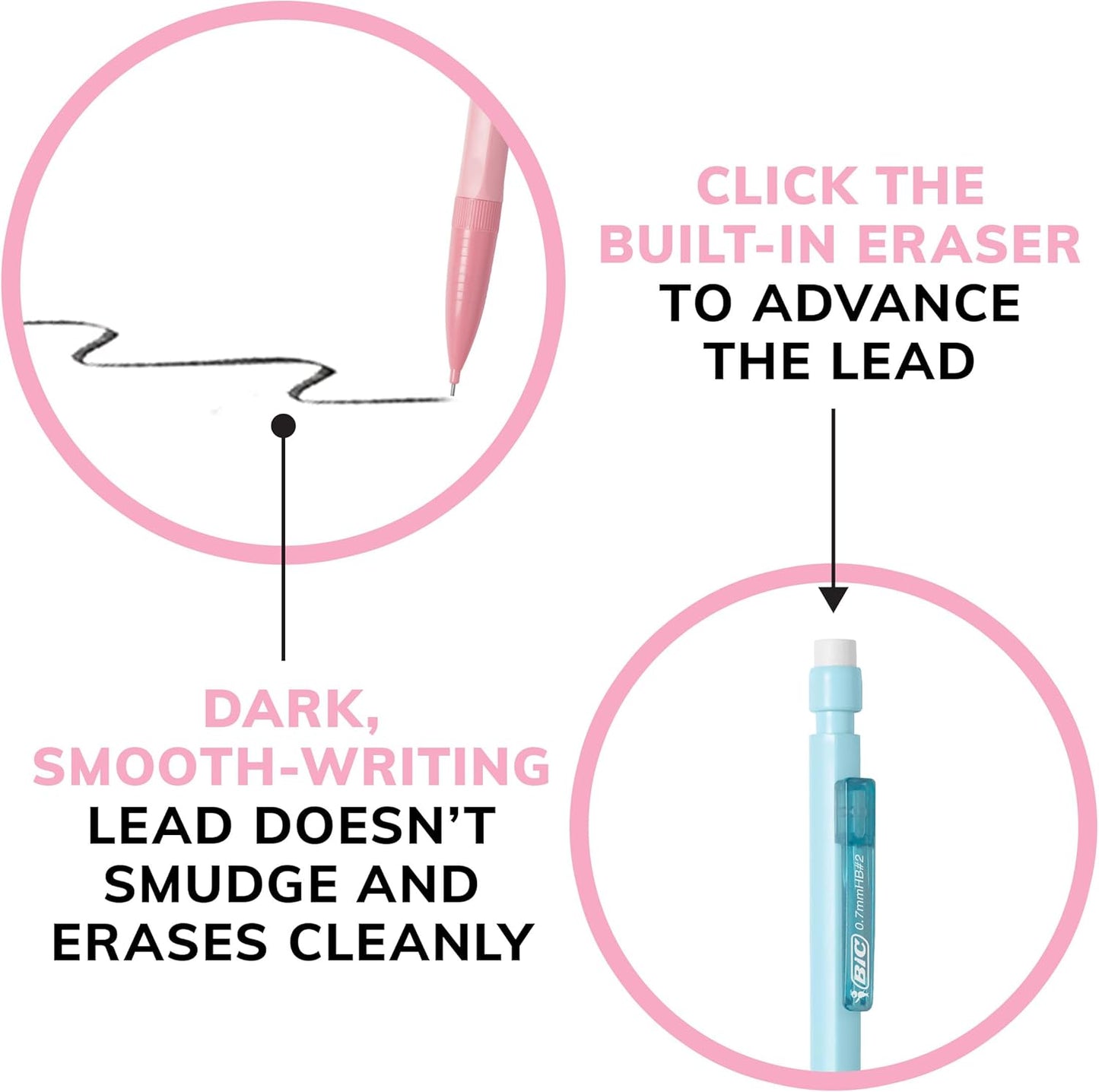 BIC Xtra-Smooth Pastel Mechanical Pencils with Erasers, Medium Point (0.7mm), 40-Count Pack, Bulk Mechanical Pencils for School or Office Supplies