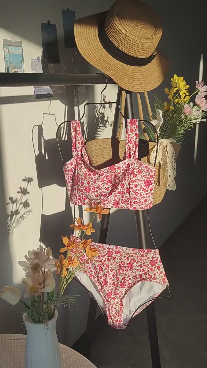 Bikini Small Floral High Waist Sexy Bikini Split Swimsuit Swimwear Women
