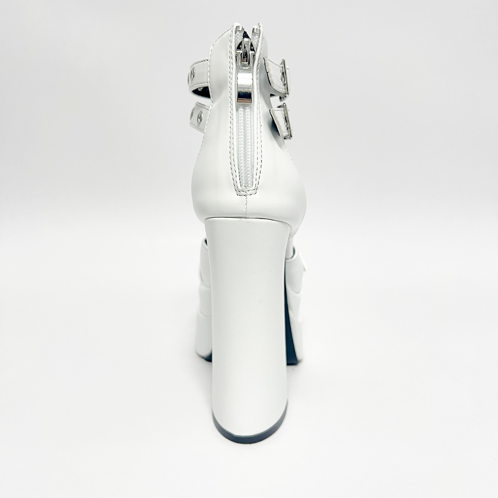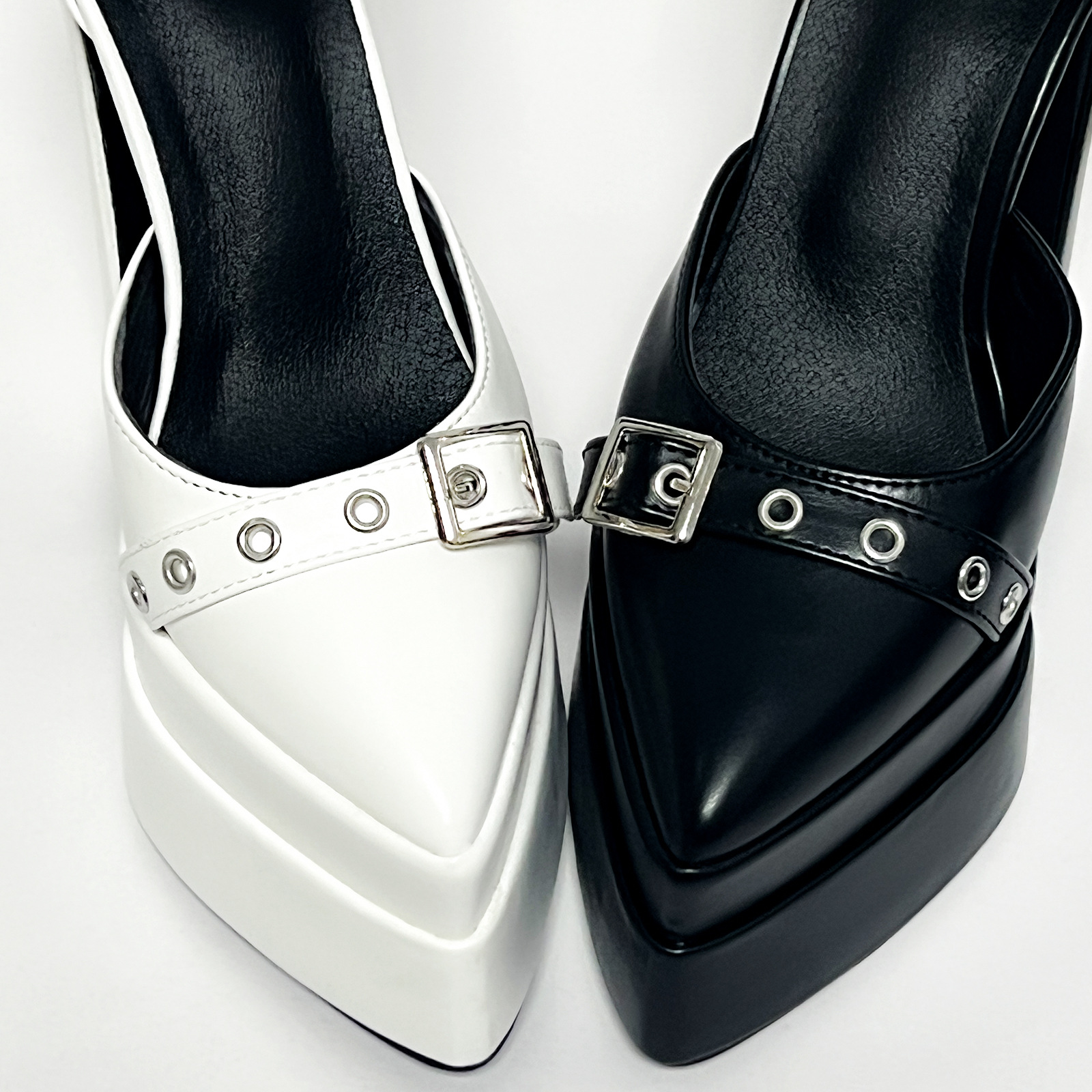 Black White Rivet Belt Buckle 15cm Double Waterproof Platform Women Shoes Heels