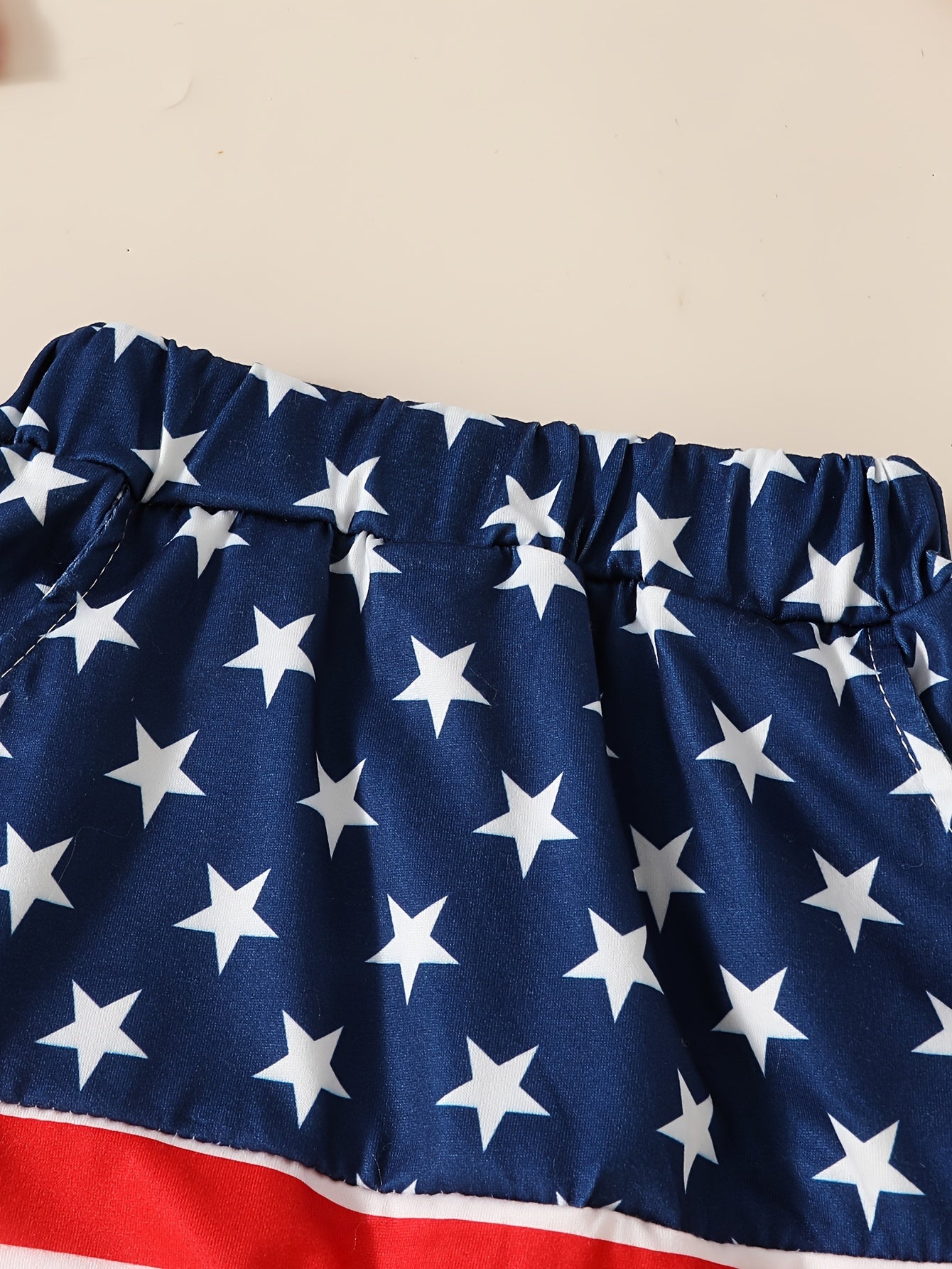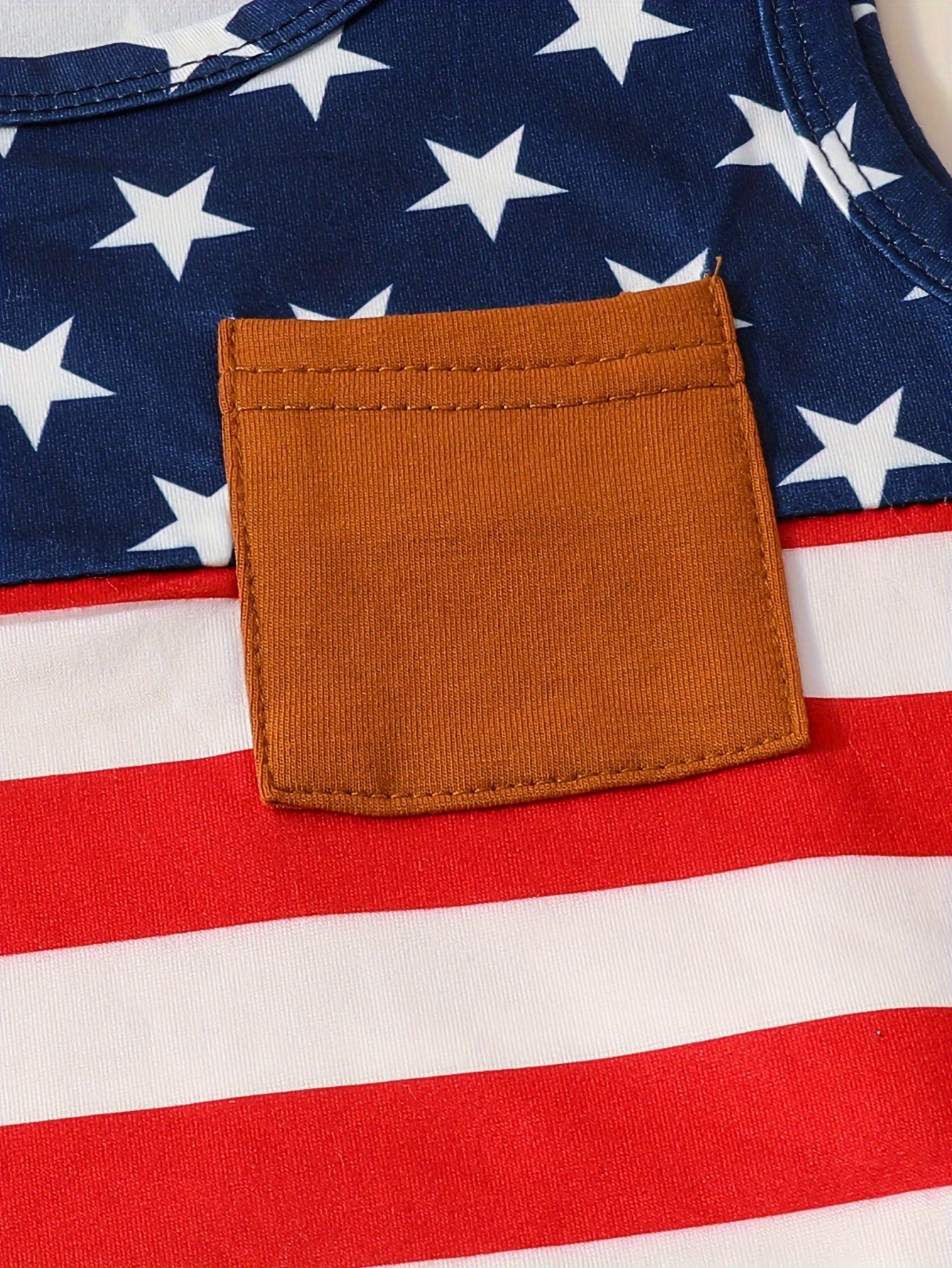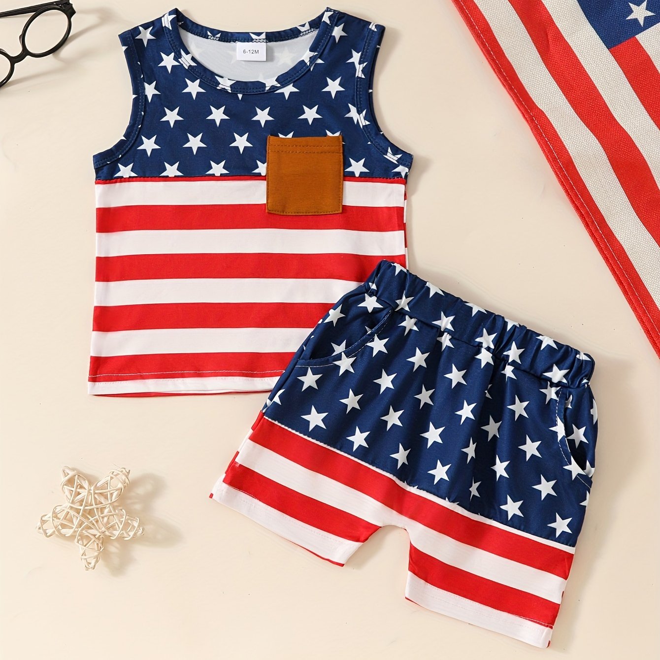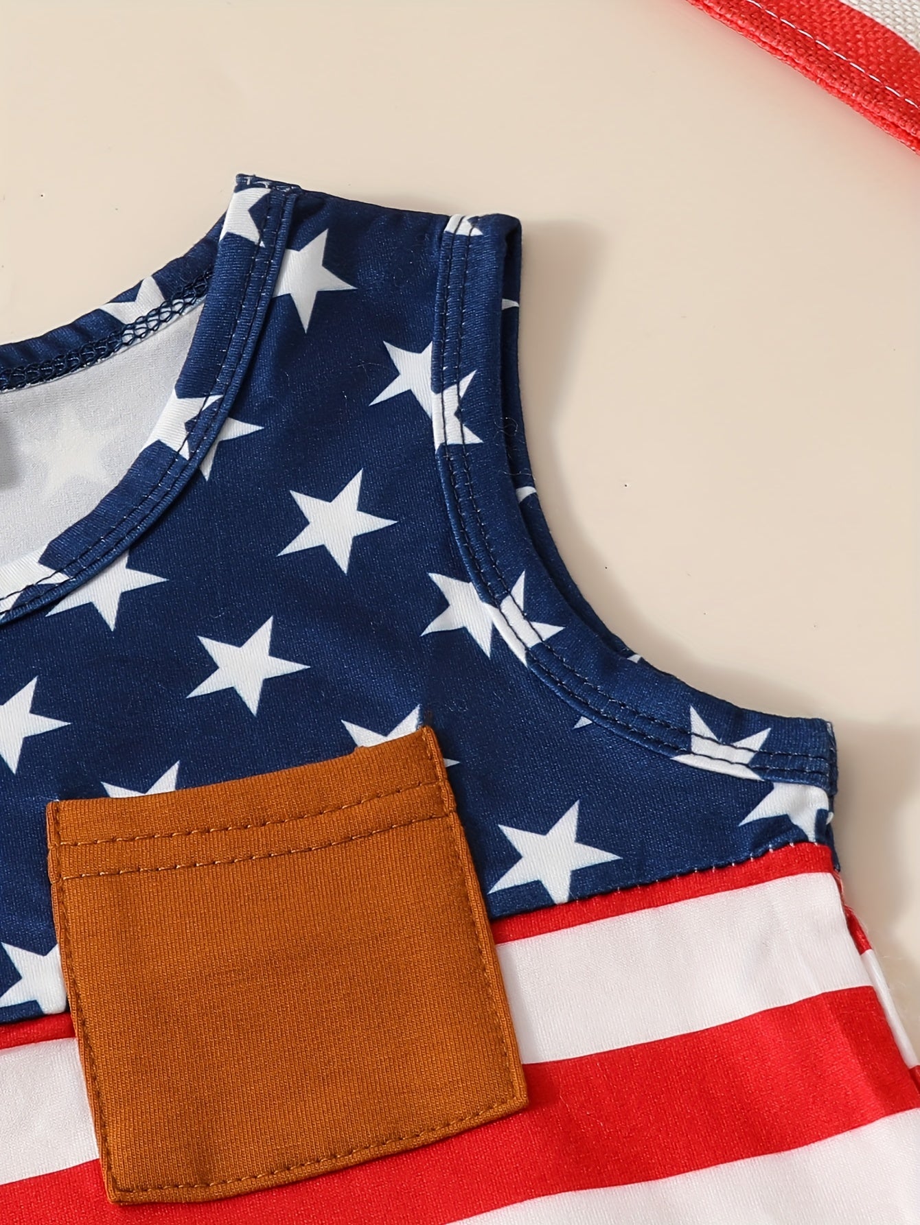 Boys' Patriotic Striped & Star Print Sleeveless Top and Shorts Set, Casual Knit Polyester with Slight Stretch, Regular Fit Spring/Summer Outfit, for Outdoor