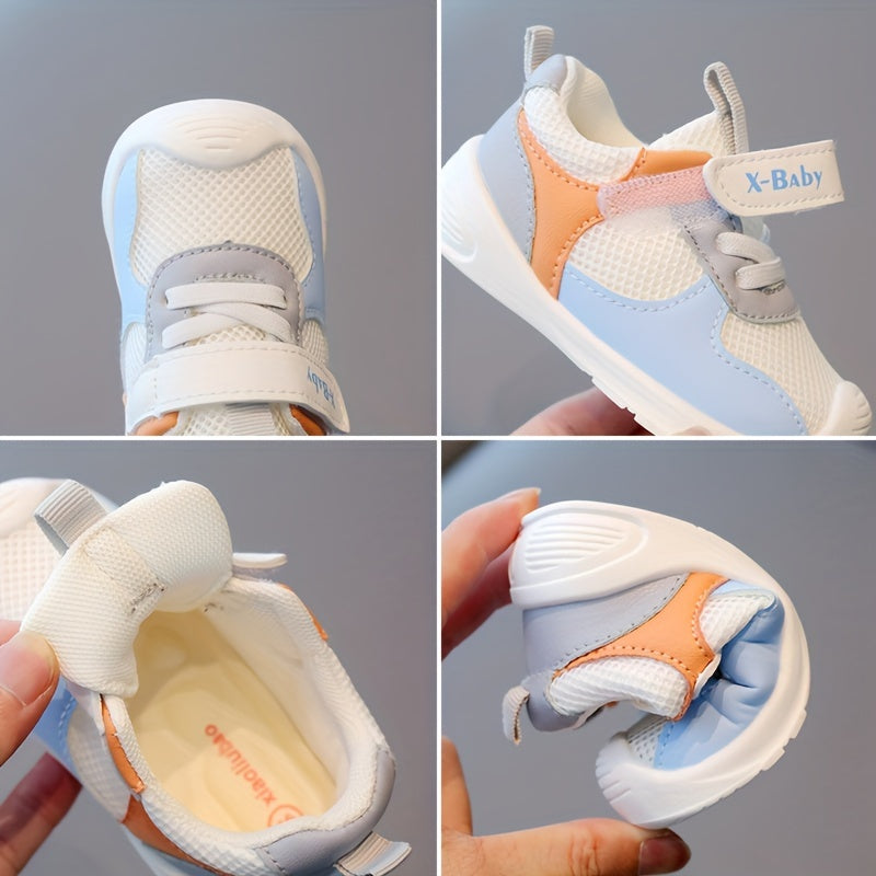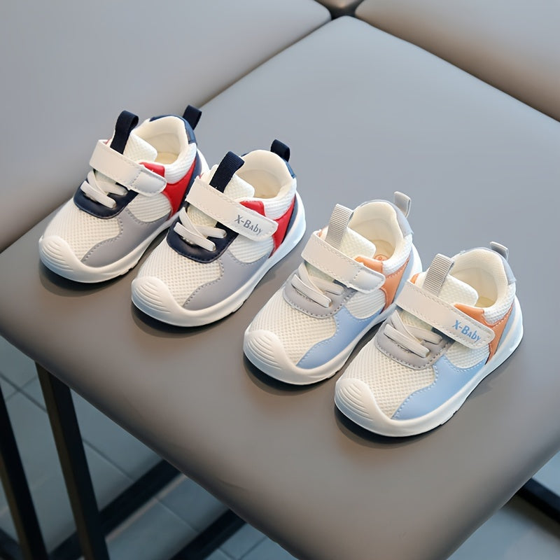 Breathable Toddler Sneakers for Boys and Girls, Soft Sole Walking Shoes with Hook-and-Loop Closure, Striped Casual Sports Footwear for Ages 1-3, Spring/Fall