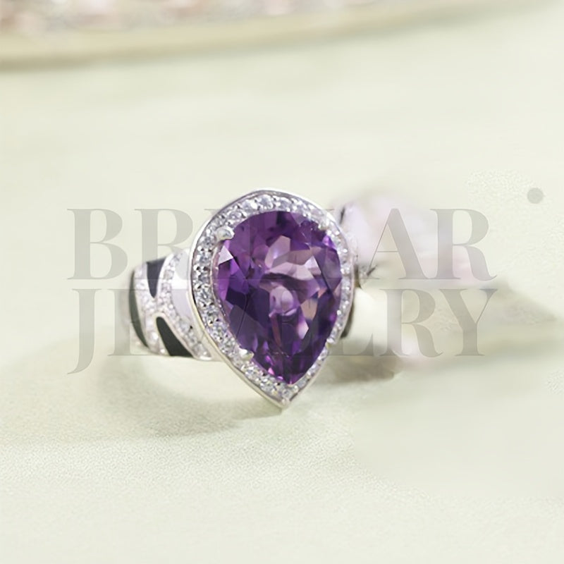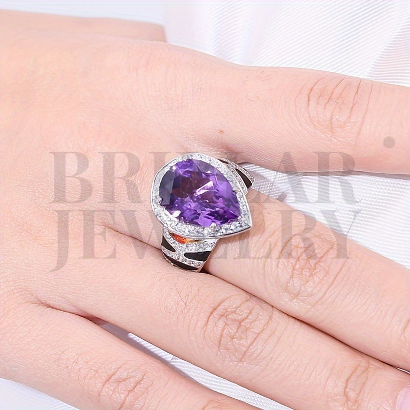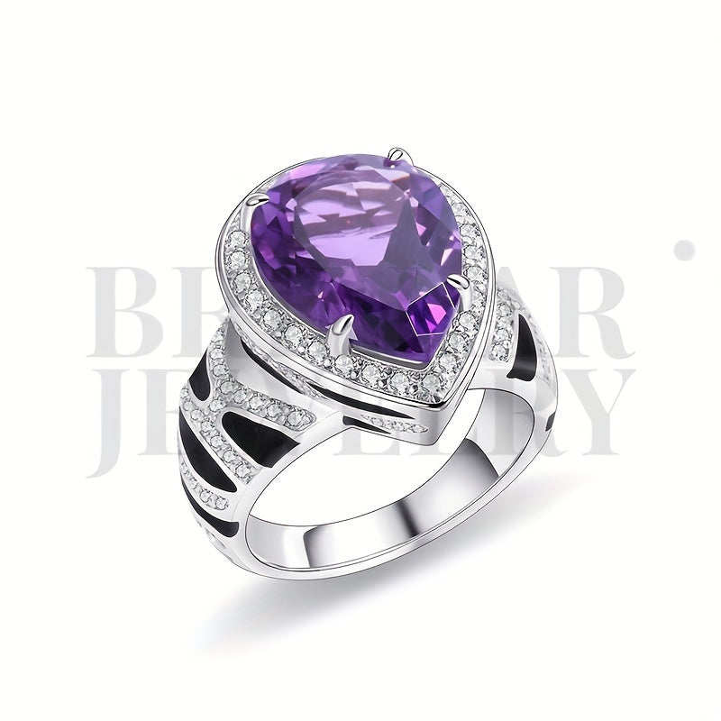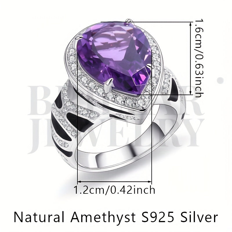 BRILLAR-Stylish 12x16mm 10-Carat Natural Ring, Featuring Black Striped Patterns, A Lavish Ring.