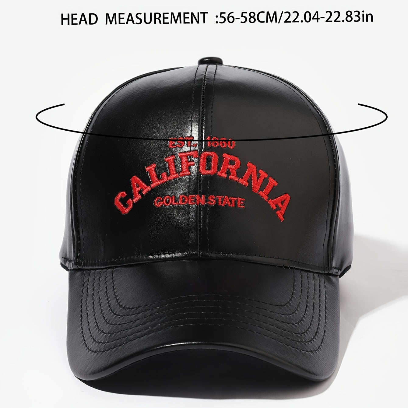 California Golden State PU Leather Baseball Cap - Unisex, Adjustable, Button Closure, Sun Protection, Holiday-Themed, Handcrafted with Embroidery and Woven Design