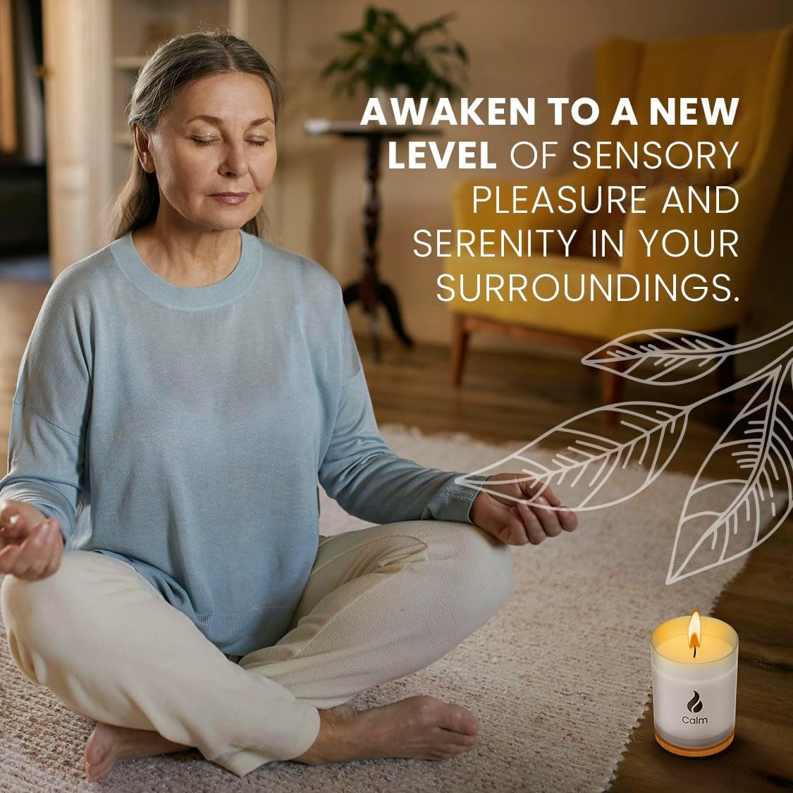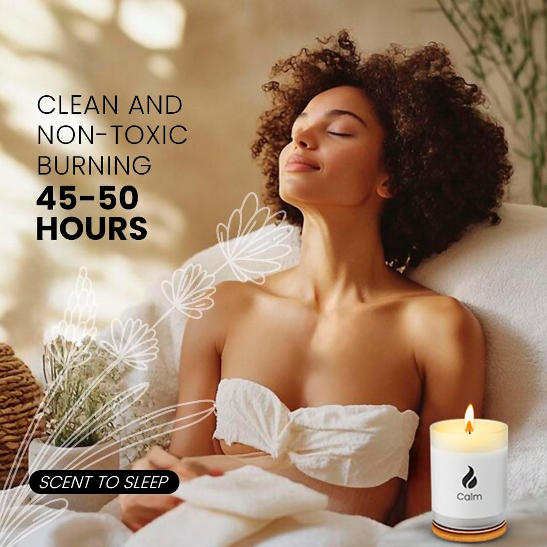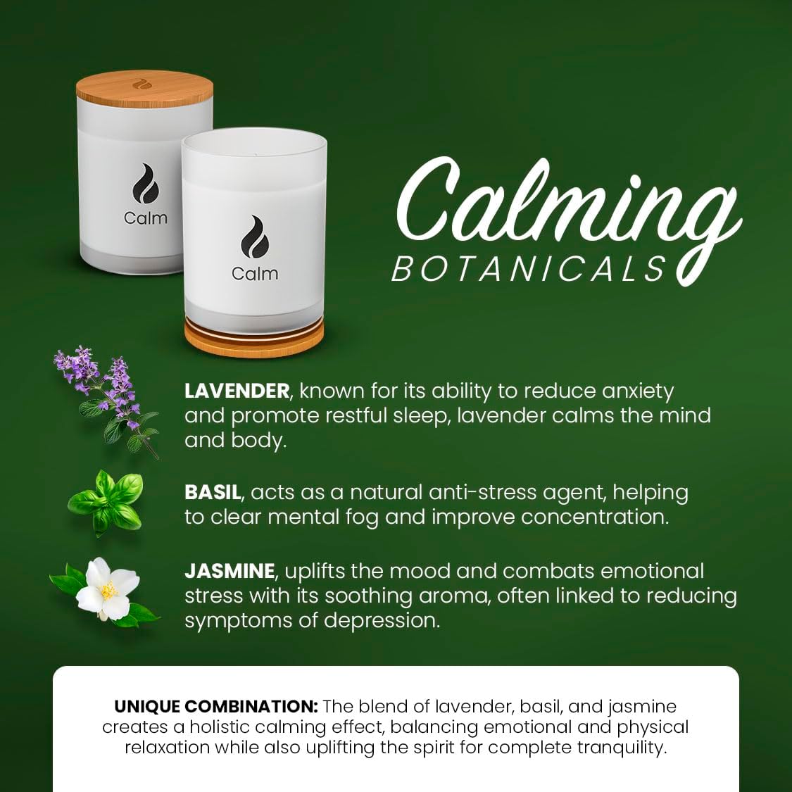 CALMING BOTANICALS - Create a serene atmosphere with our soy wax candle, featuring a soothing blend of lavender, basil, and jasmine, known for promoting relaxation, restful sleep, and stress relief. Enhanced with subtle notes of cinnamon, musk, rosemary, and lily of the valley, this non-toxic calming candle offers 50 hours of calming burn time, perfect for unwinding and creating a peaceful environment.