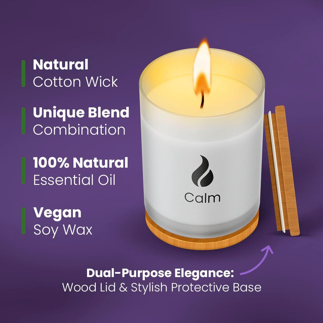 SOOTHE YOUR SENSES- The natural blend of essential oils in our natural soy candles is known to help relax, alleviate stress, uplift your mood, and calm the mind so you can unwind after a long day at work. The combination of essential oils was designed to have a better calming effect.