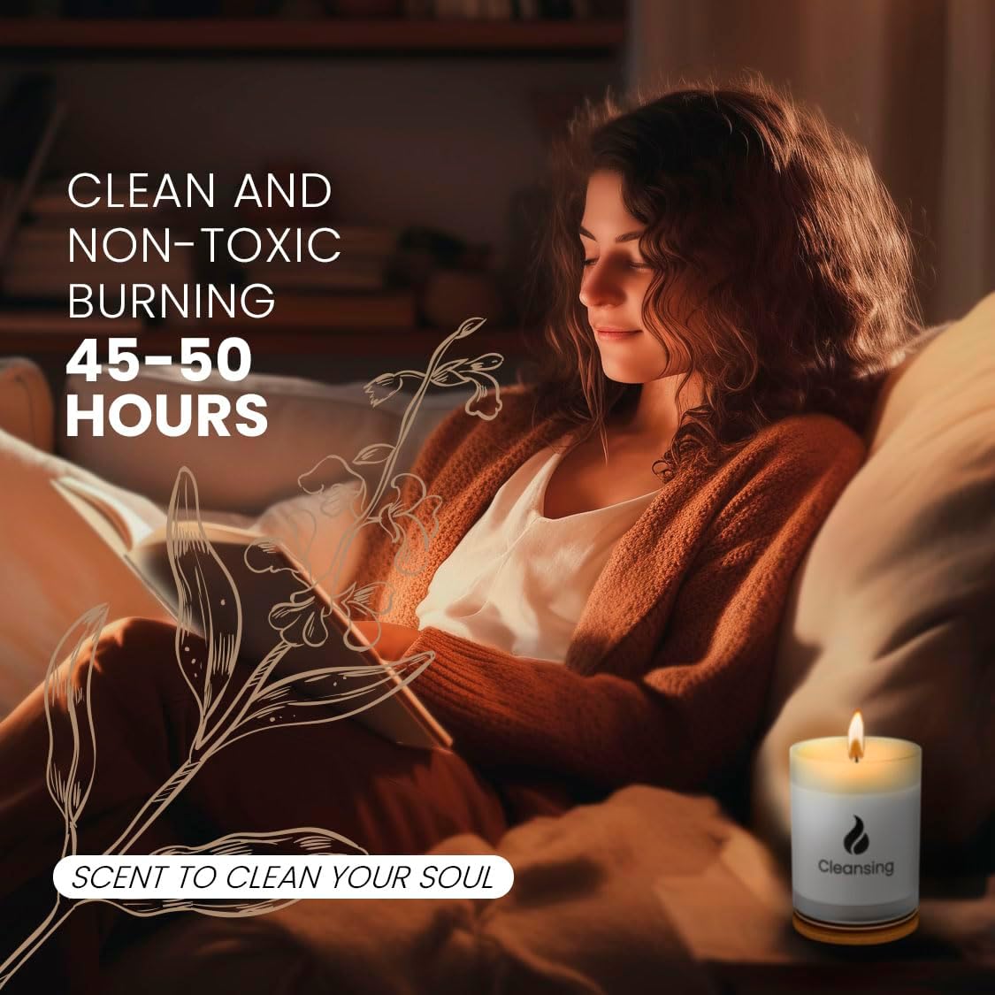 50 HOURS OF SERENITY - Welcome a lasting companion of peace! These aren't merely all natural candles non toxic; it’s a luminous beacon of unrivaled serenity, whispering calming tales to your soul, outshining, and leaving other scented soy candles a mere flicker in its radiant glow!