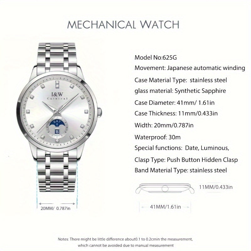Carnival IW Series Men's Automatic Winding Mechanical Watch With Sapphire Mirror 316L Stainless Steel Waterproof Wristwatch Festival Gift