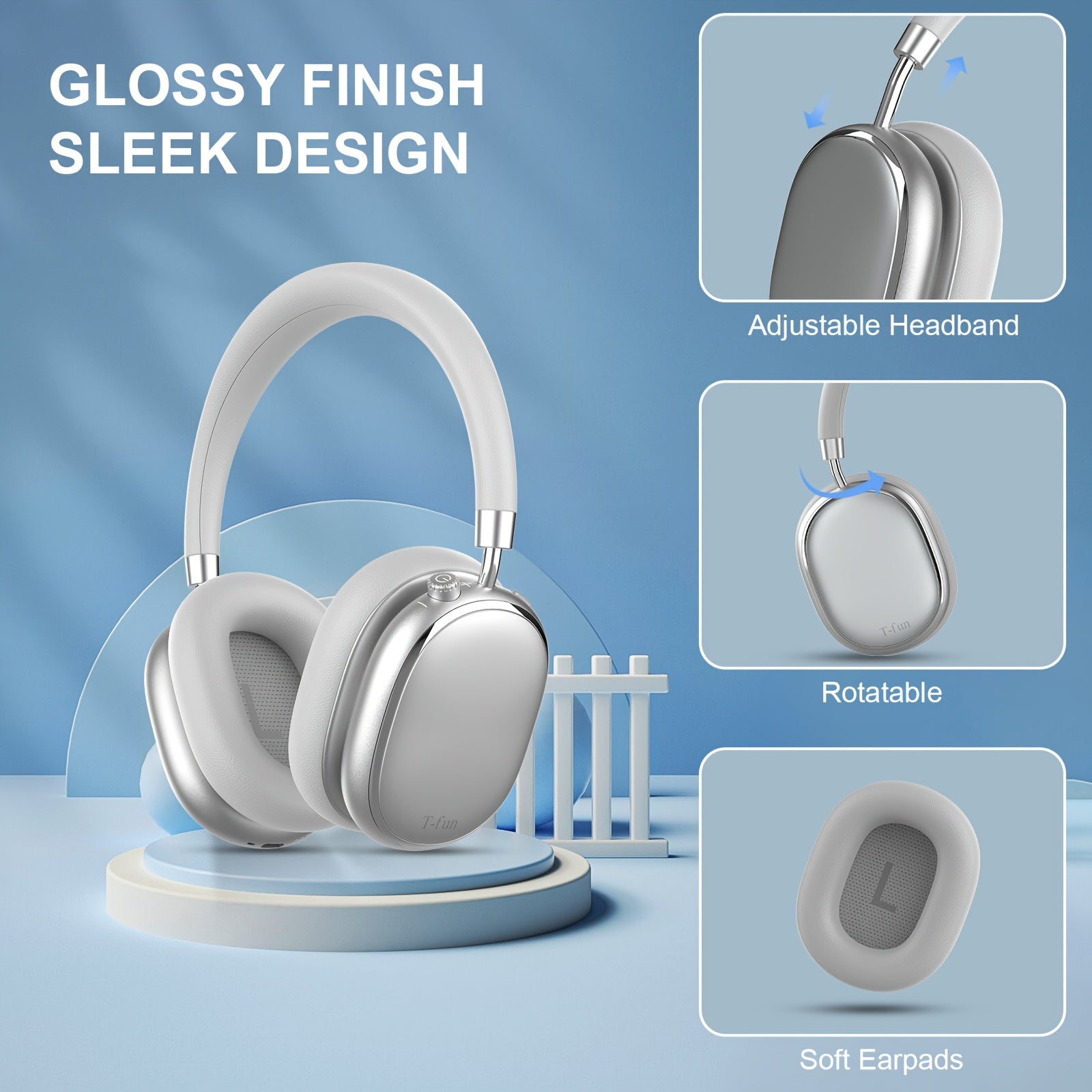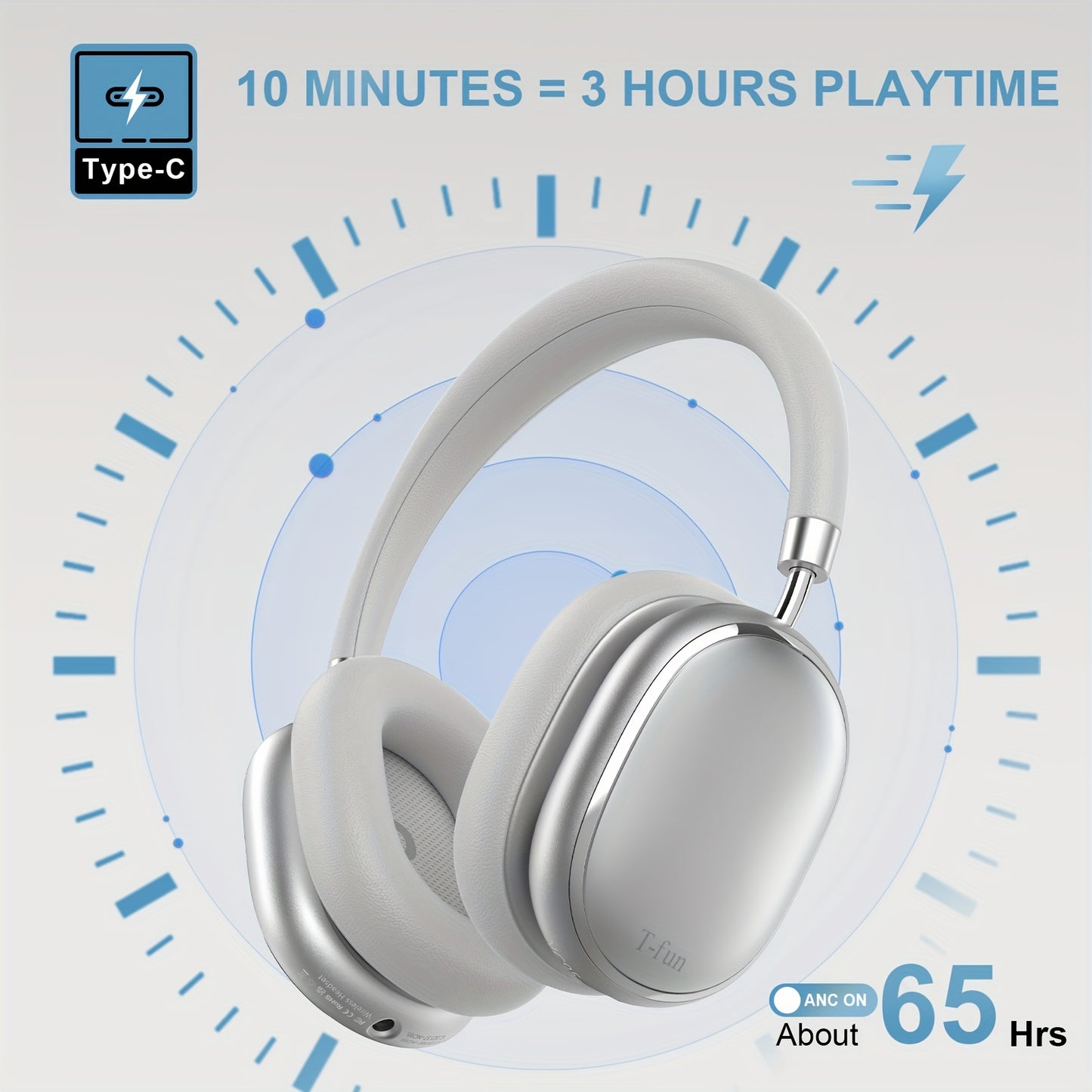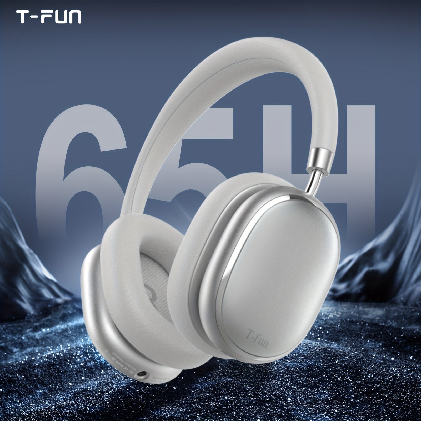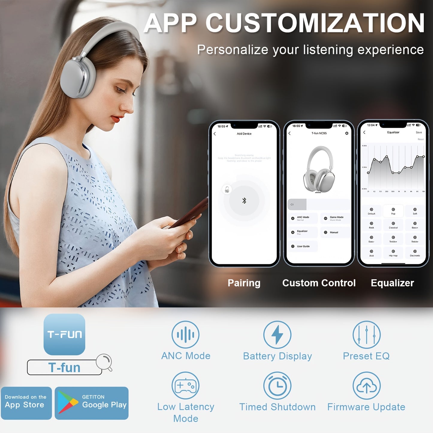 Casque Actif Réducteur de Bruit Hybride T-fun NC95, Sans Fil, Sur-oreille avec Micro Intégré, 65H d'Autonomie, Audio Hi-Res, Confortable, Contrôle par App, Appels Clairs, Idéal pour les Voyages & les Entraînements, Casque de Voyage|Écouteurs Élégants|Casq