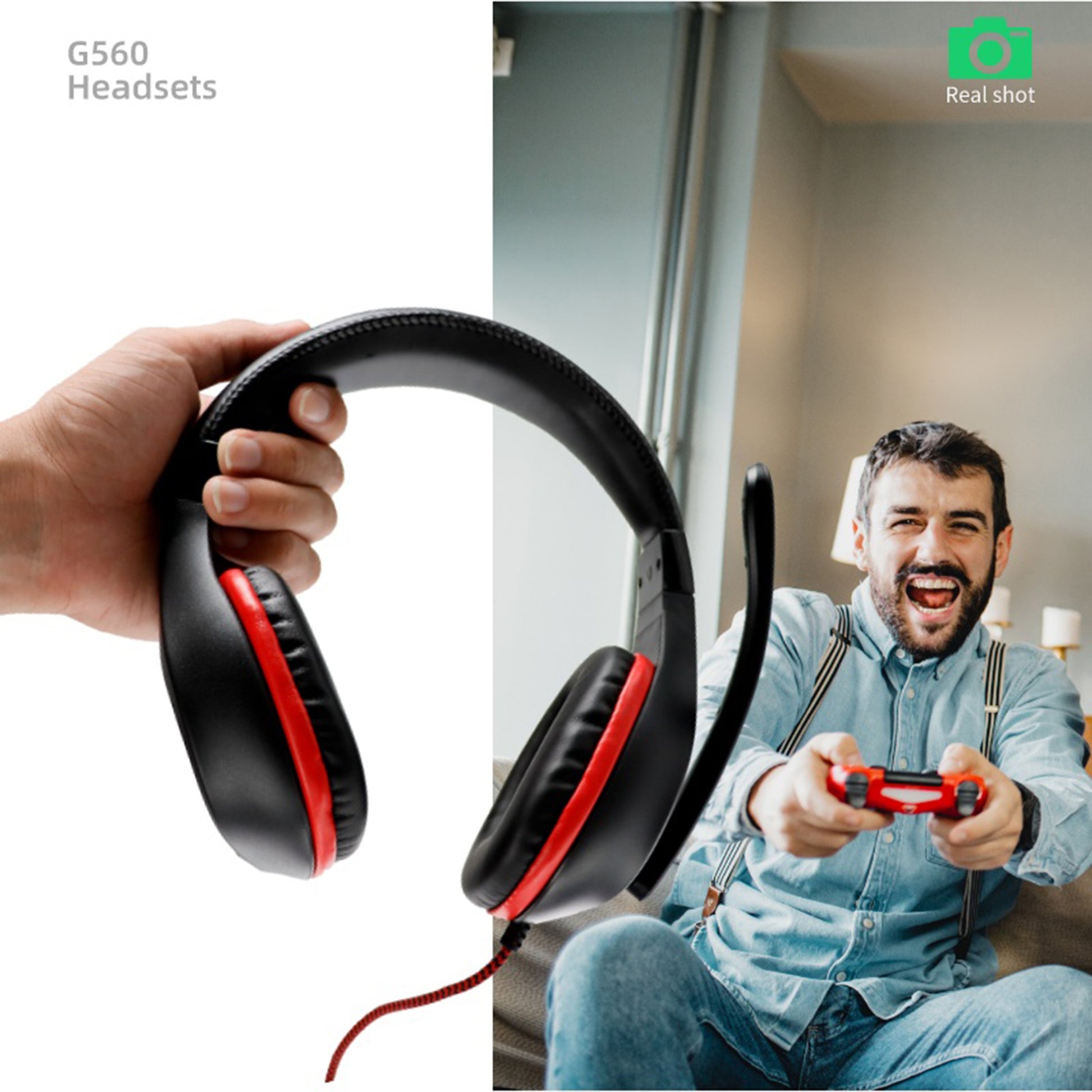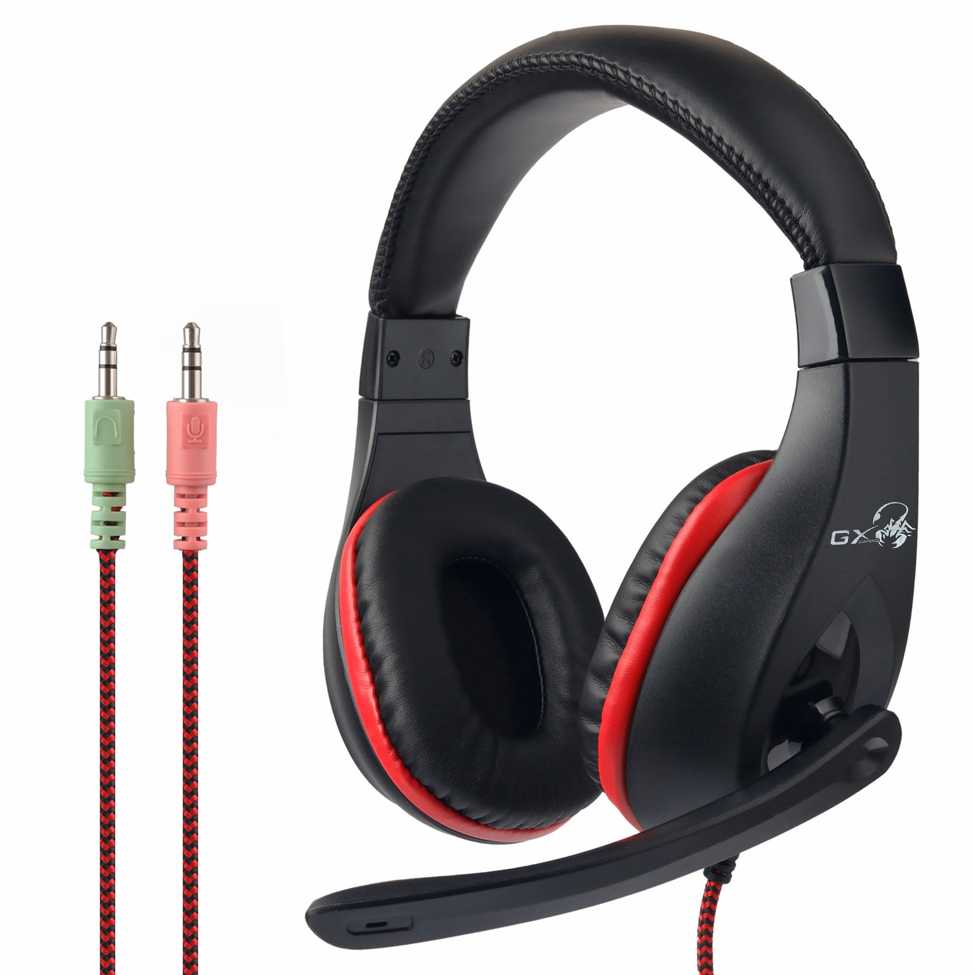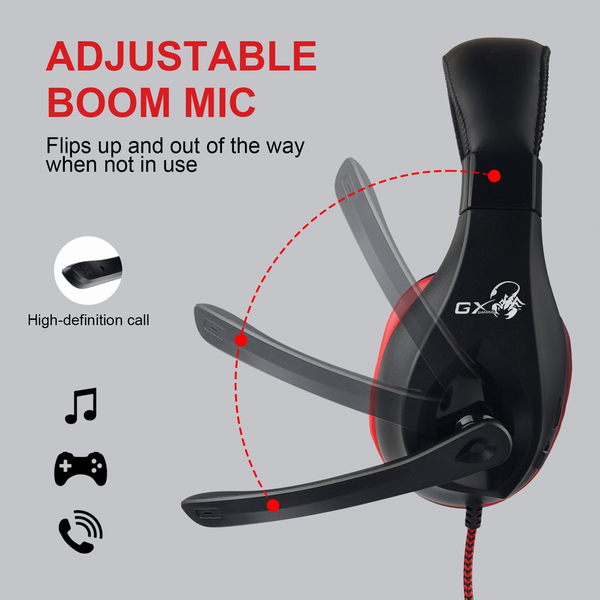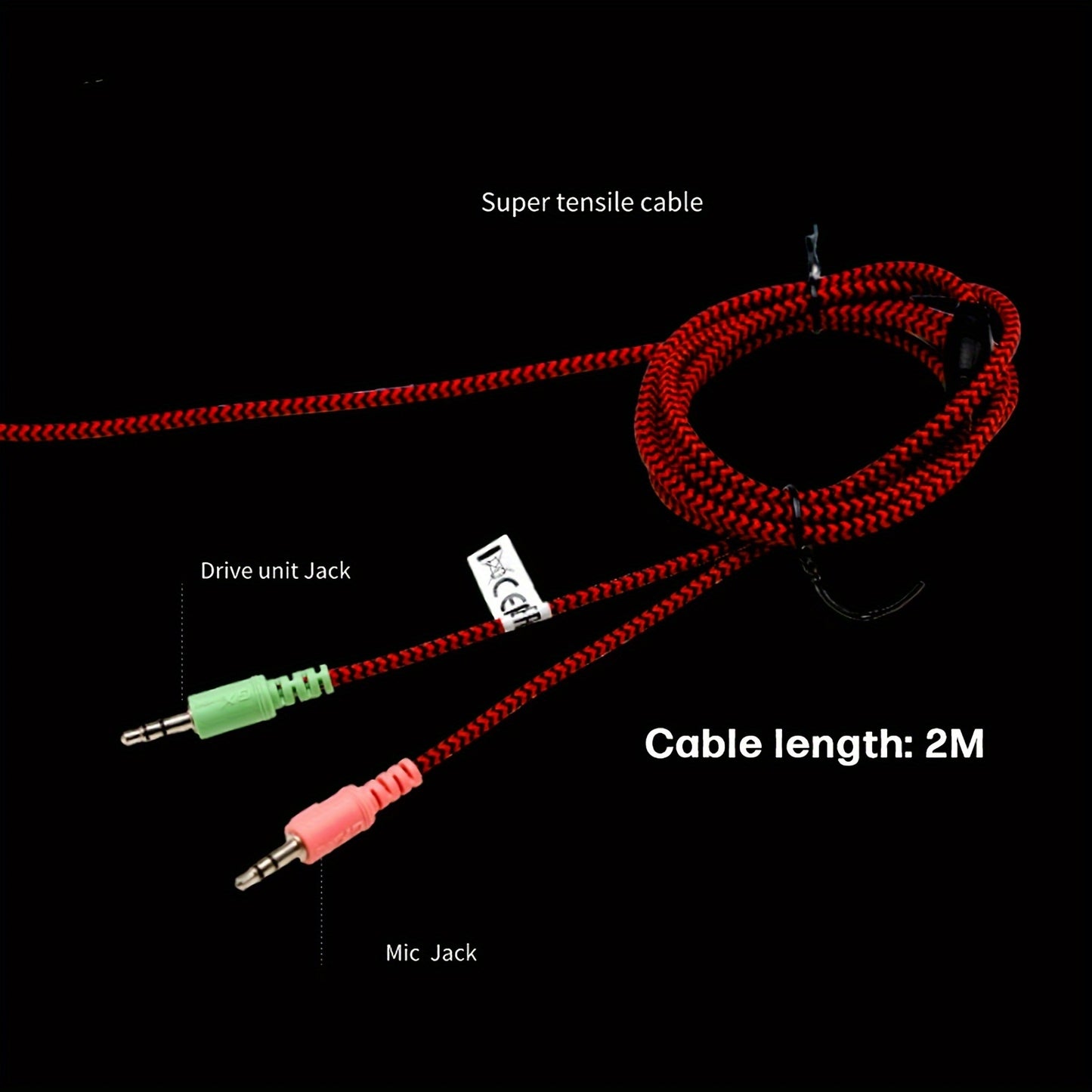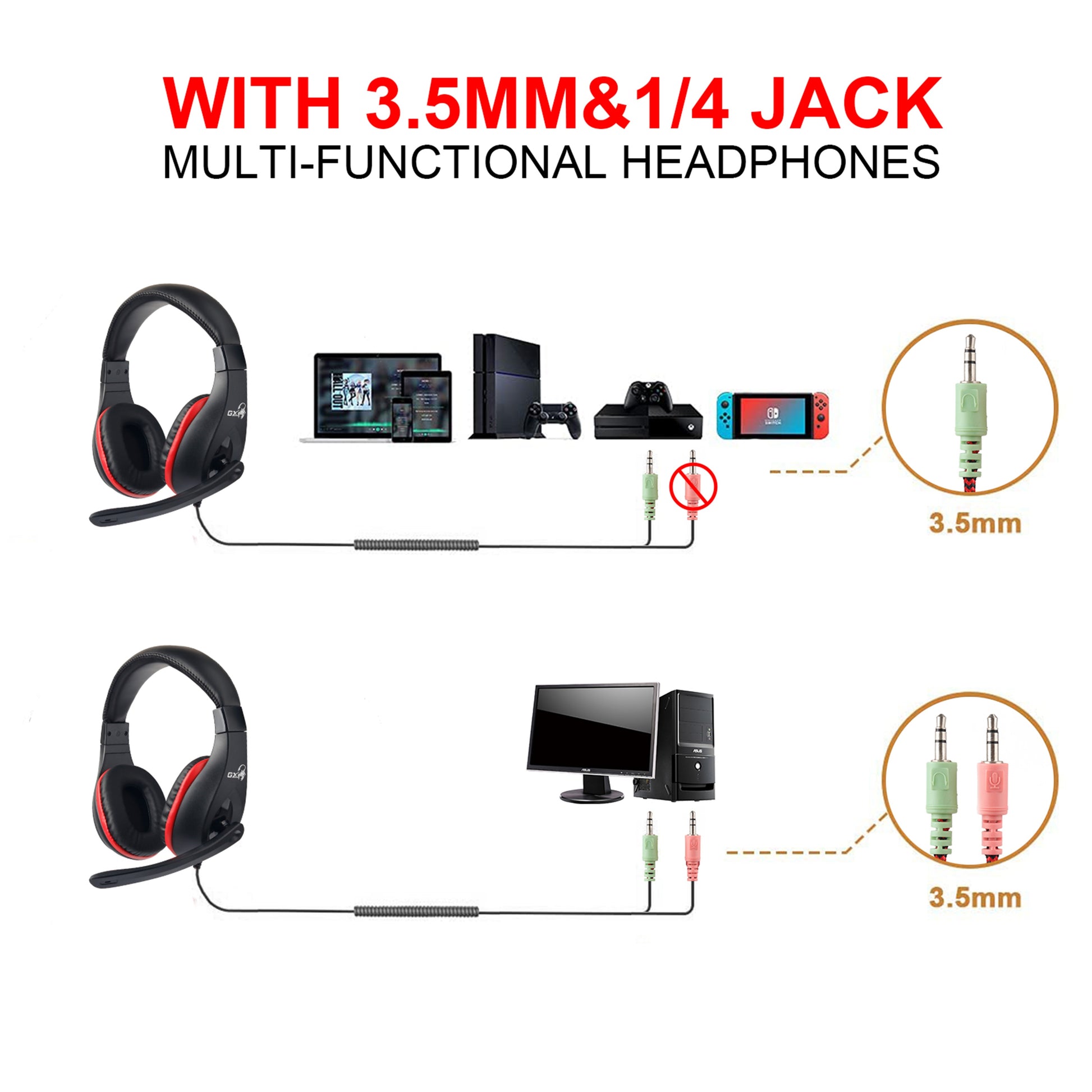Casque de jeu filaire avec microphone pour PC, PS4, PS5, Mac, ordinateurs portables - Prise jack 3,5 mm double, isolation du son, haut-parleurs de 50 mm, écouteurs en plastique avec câble rétractable et commande à bouton-poussoir - Contient des composants