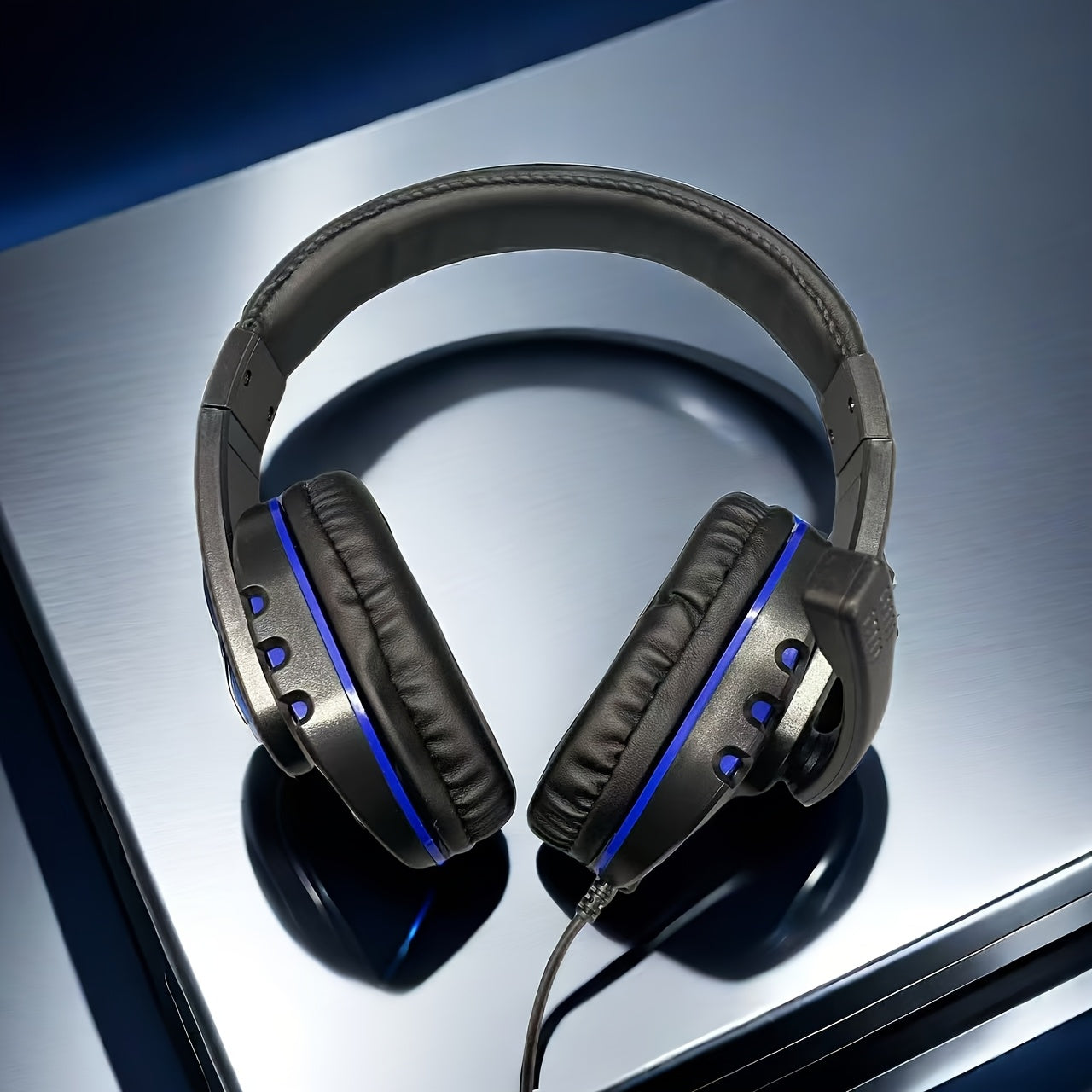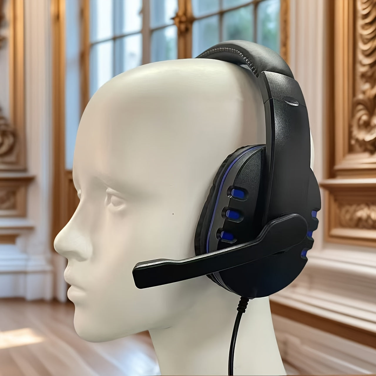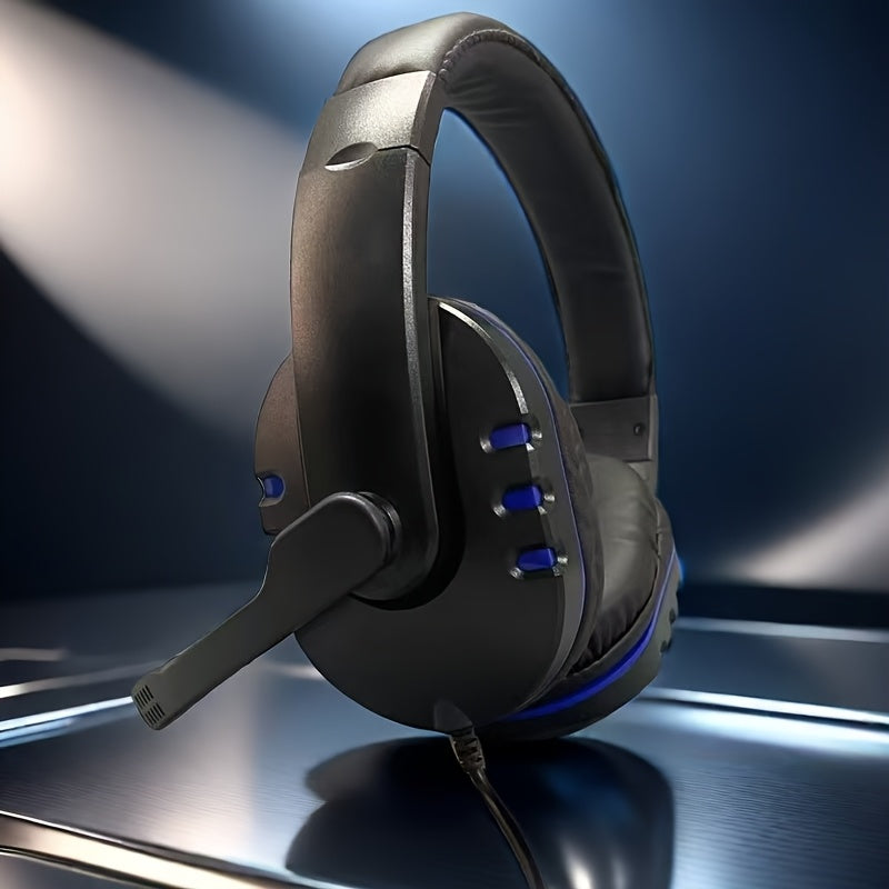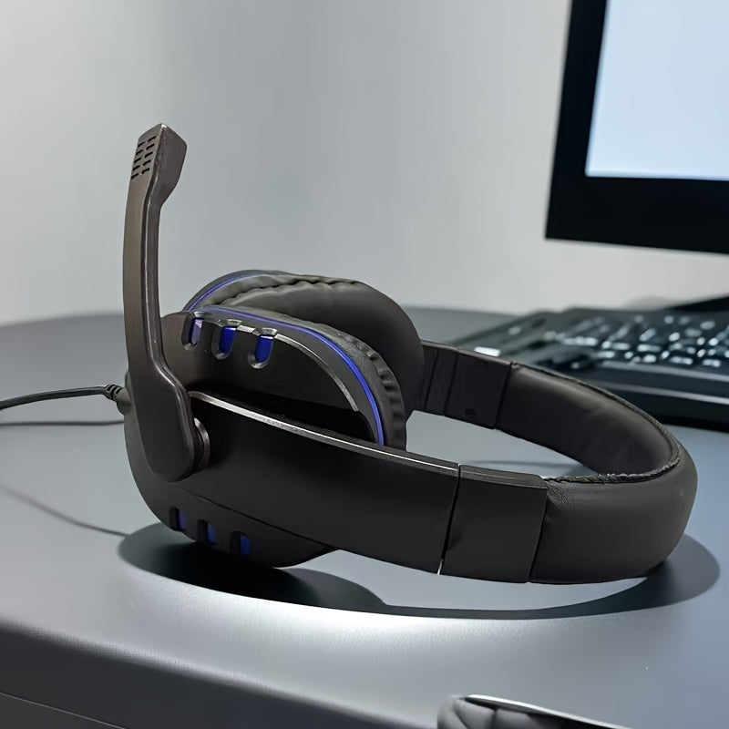 Casque de Jeu Filaire sur l'Oreille avec Micro Détachable - Noir Élégant avec Accents Bleus, Coussinets d'Oreilles Confortables, Réduction de Bruit pour Appels, Musique & Cours en Ligne - Prise 3.5mm, Câble Anti-Enchevêtrement pour Ordinateur de Bureau &