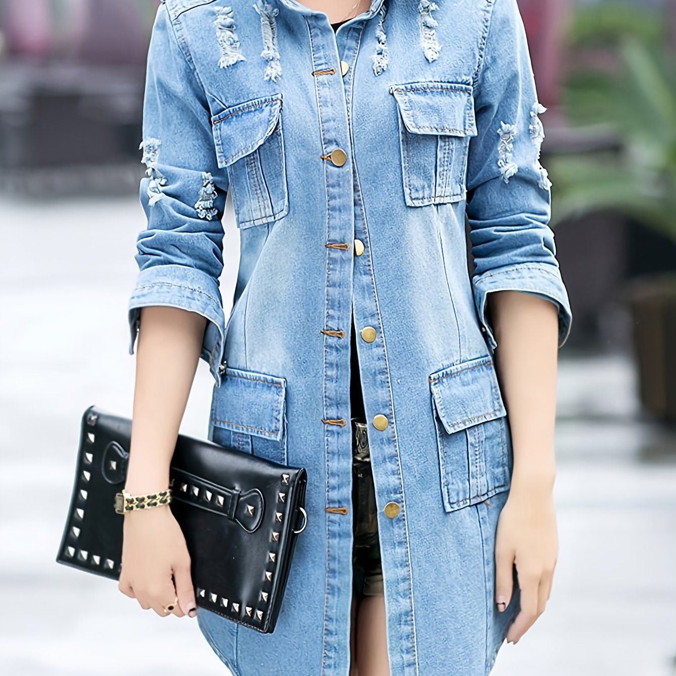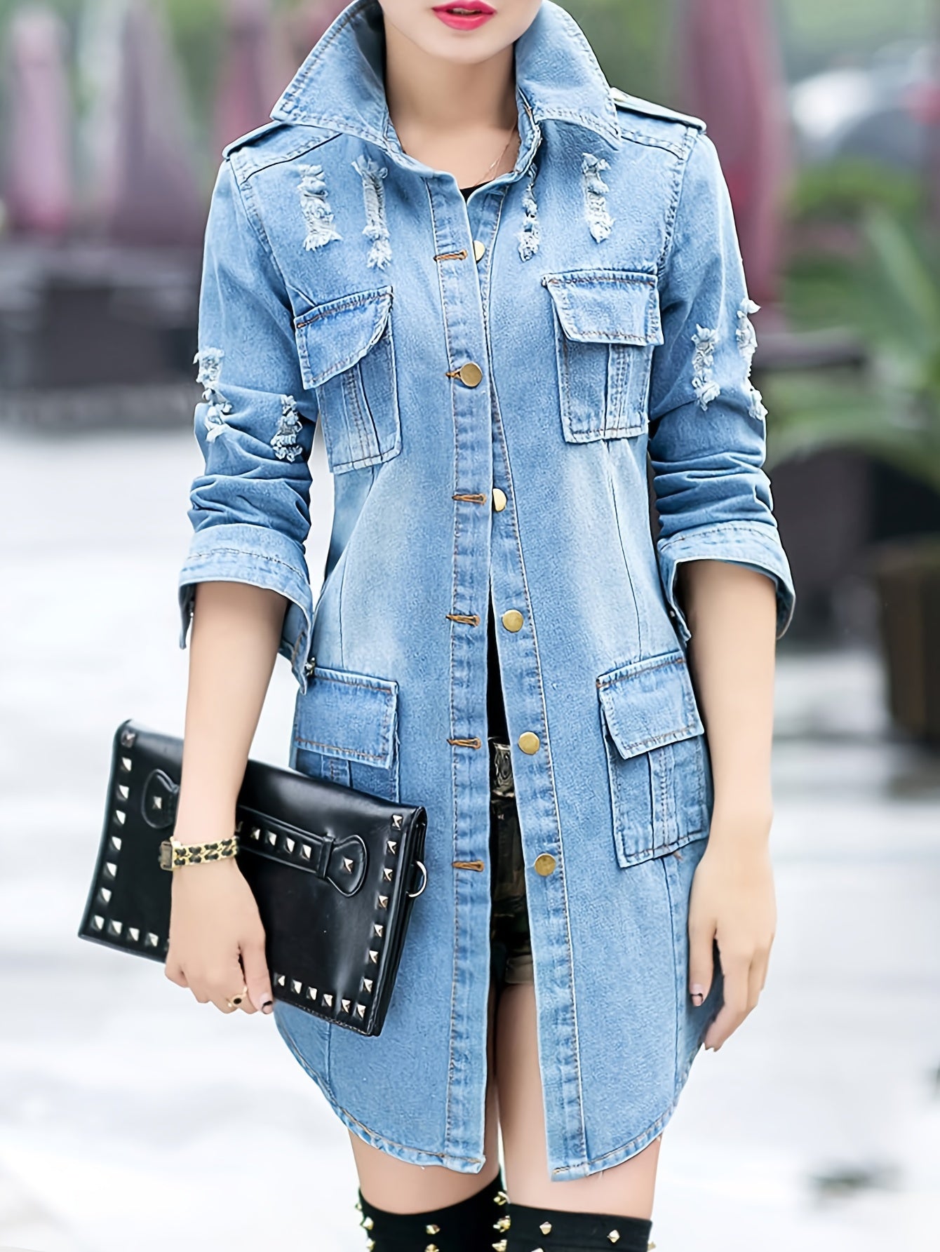 [Casual Denim Jacket] Slim Fit Denim Jacket - Women's Casual Collar Long Sleeved Windproof