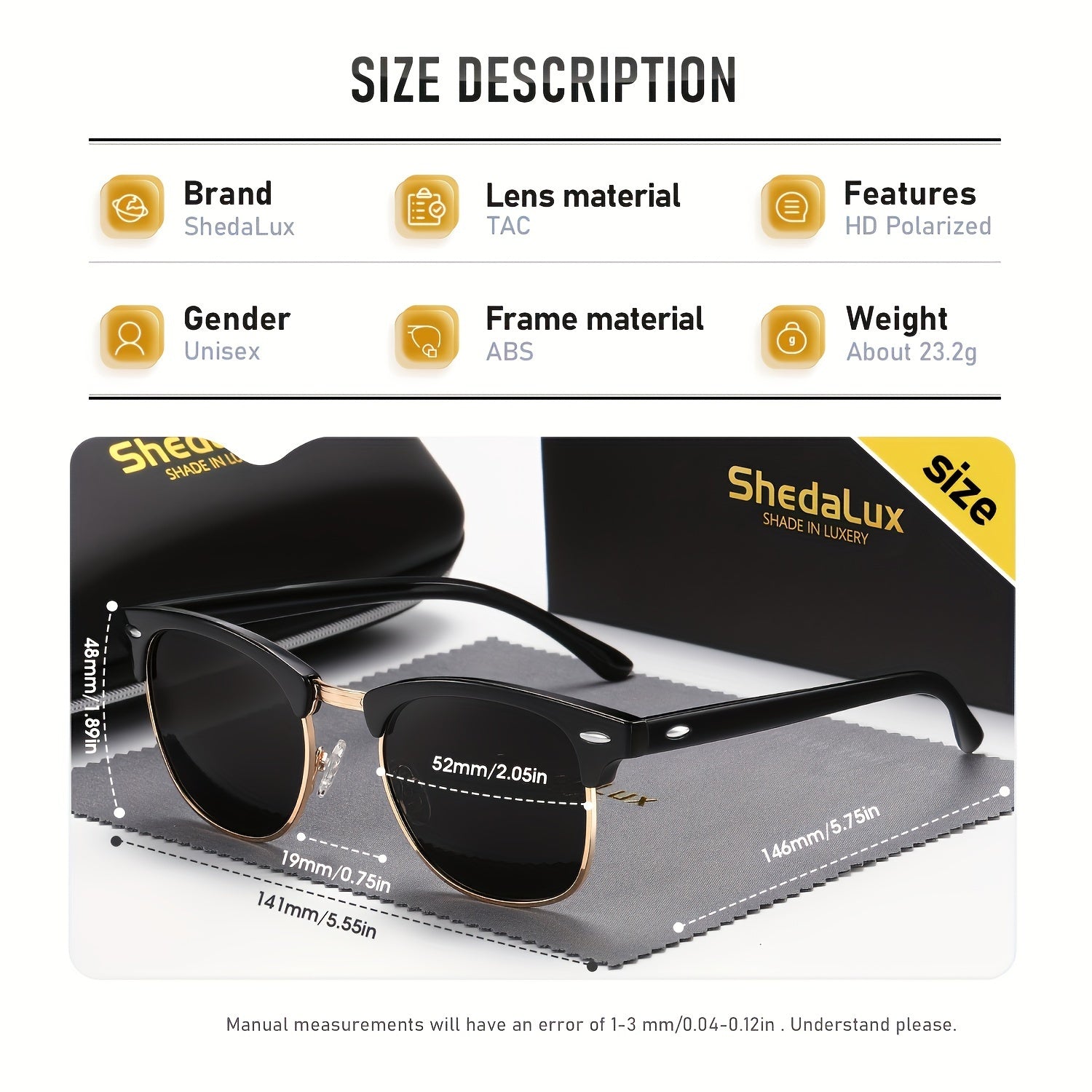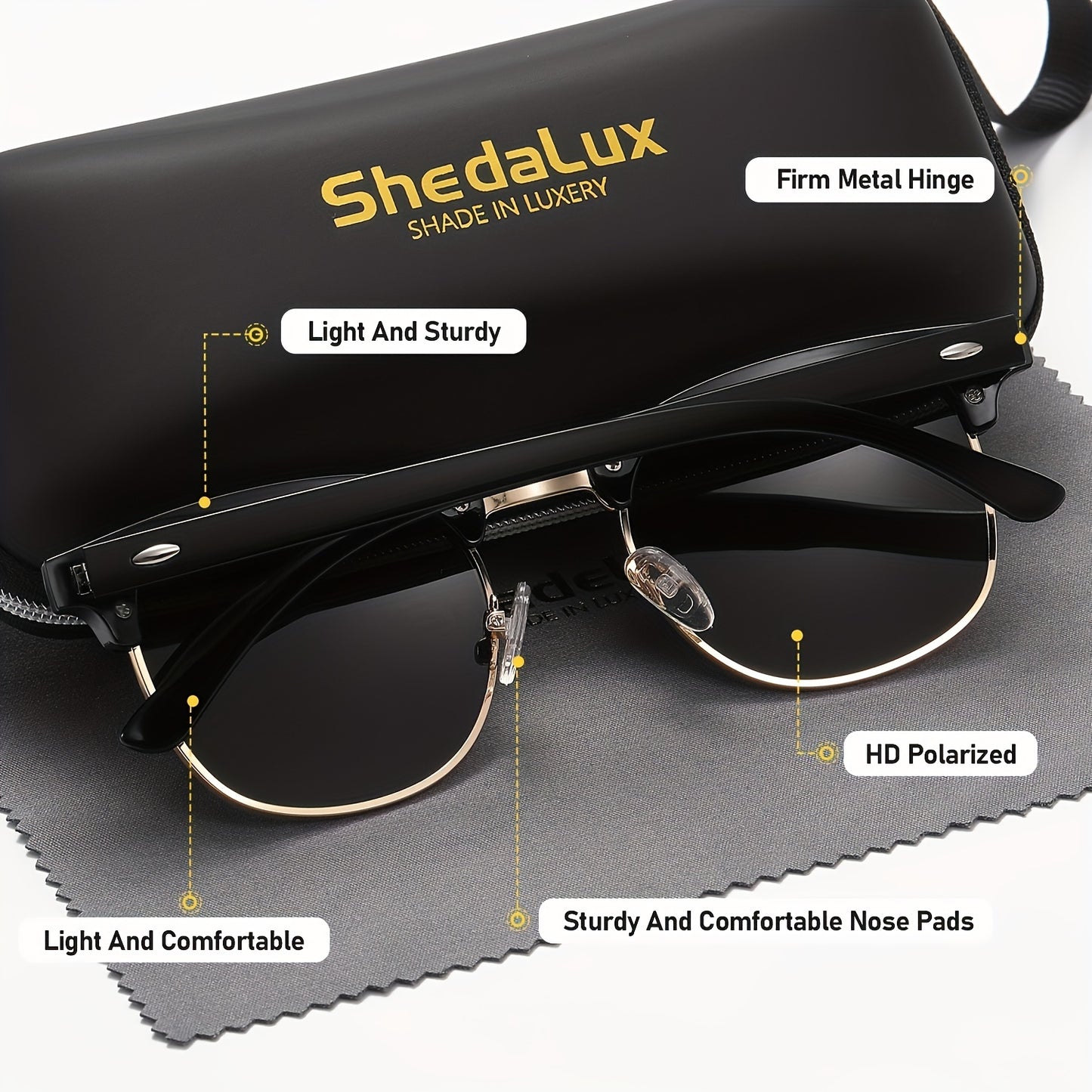 Casual Fashion Glasses| ShedaLux Square Polarized Fashion Fashion Glasses - Protection, Zinc Alloy Frame, Stylish Black & Golden Design with Glare Reduction Lenses, Includes Elegant Case & Cloth, Glasses Accessories