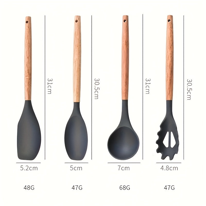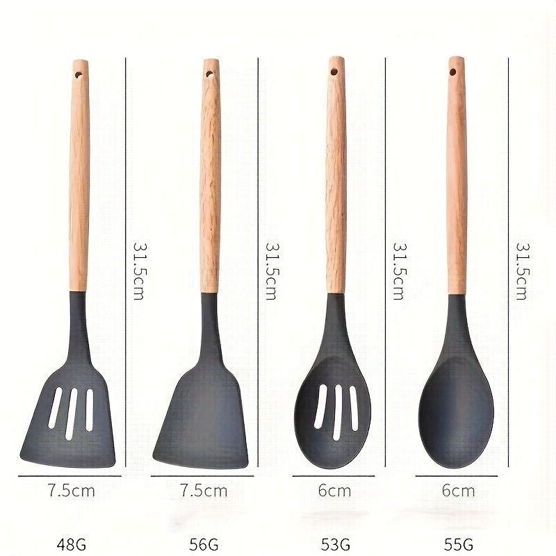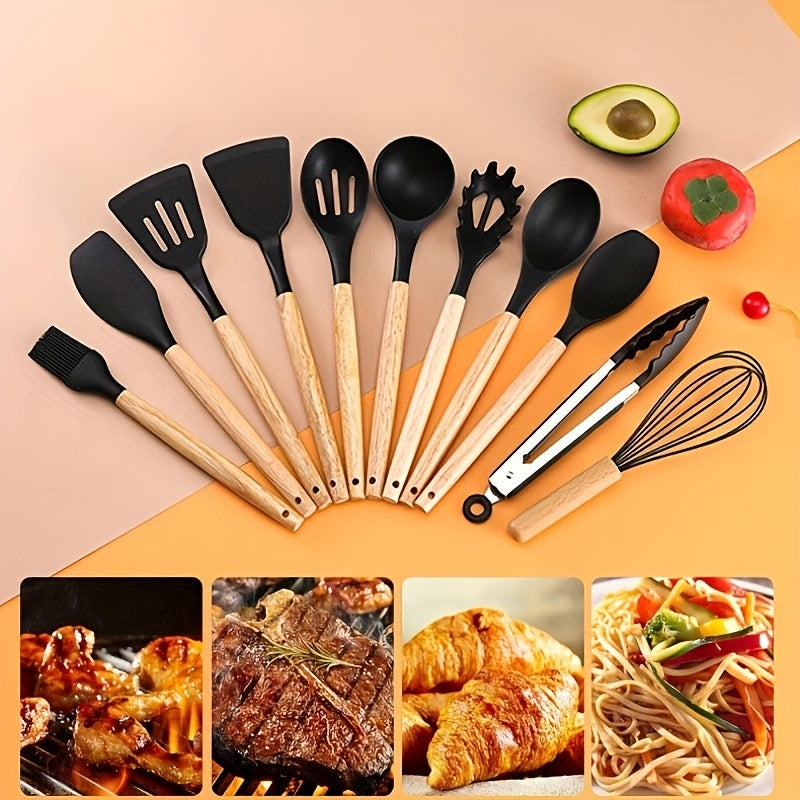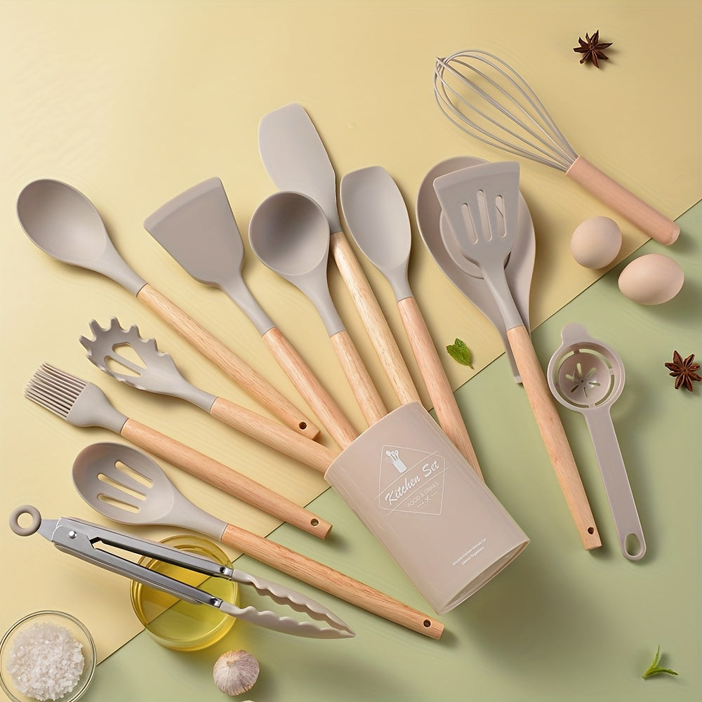 Chef Kitchen Cooking Utensils Set, 33pcs Non-stick Silicone Cooking Kitchen Utensils Spatula Set With Holder, Wooden Handle Silicone Kitchen Gadgets Utensil Set