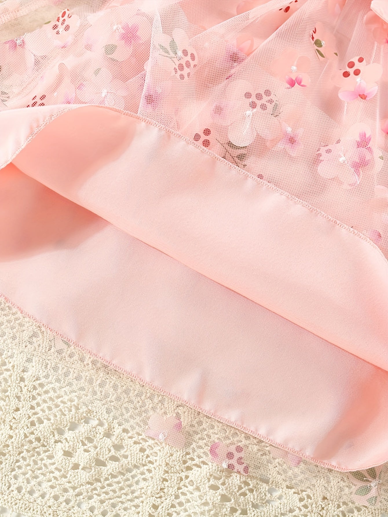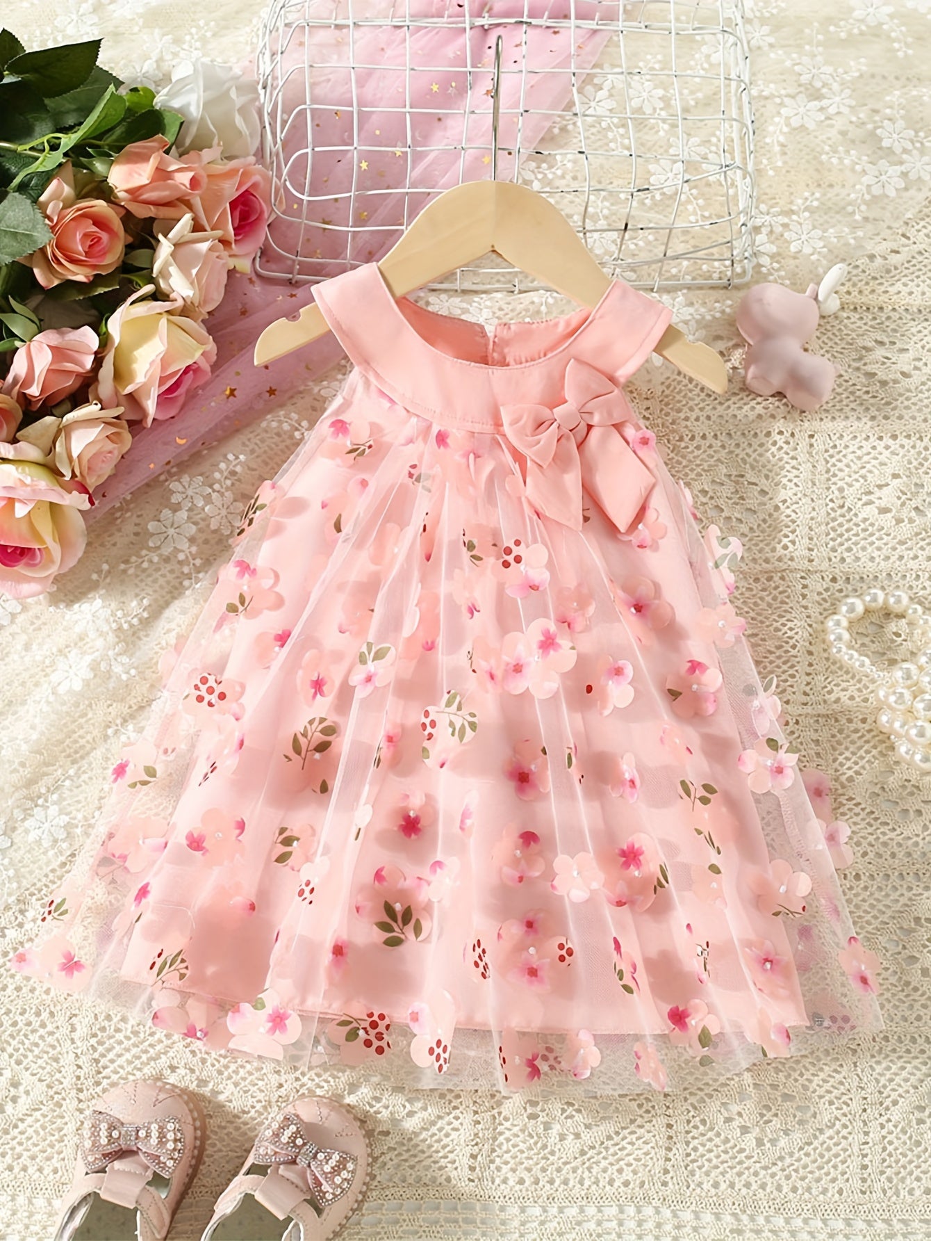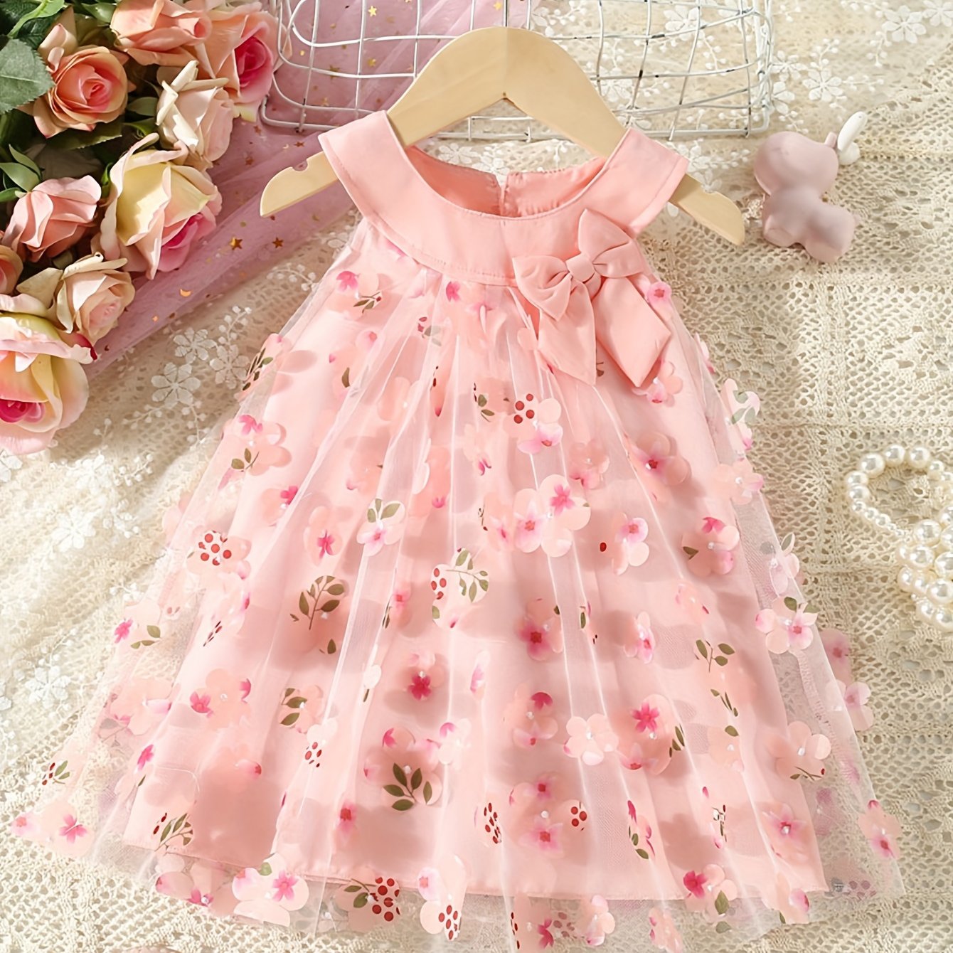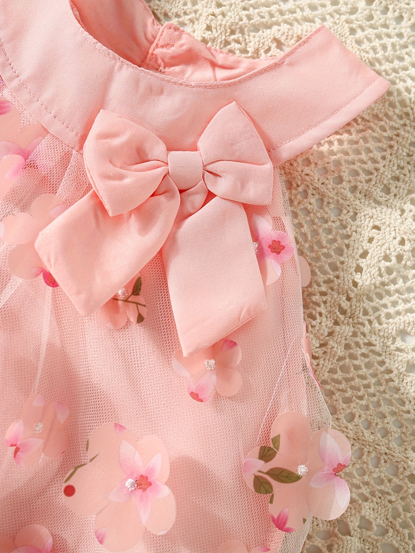 Children's Clothing New Summer Girls' Full Petal Princess Netting Necktie Bow Lady Sweet Dress