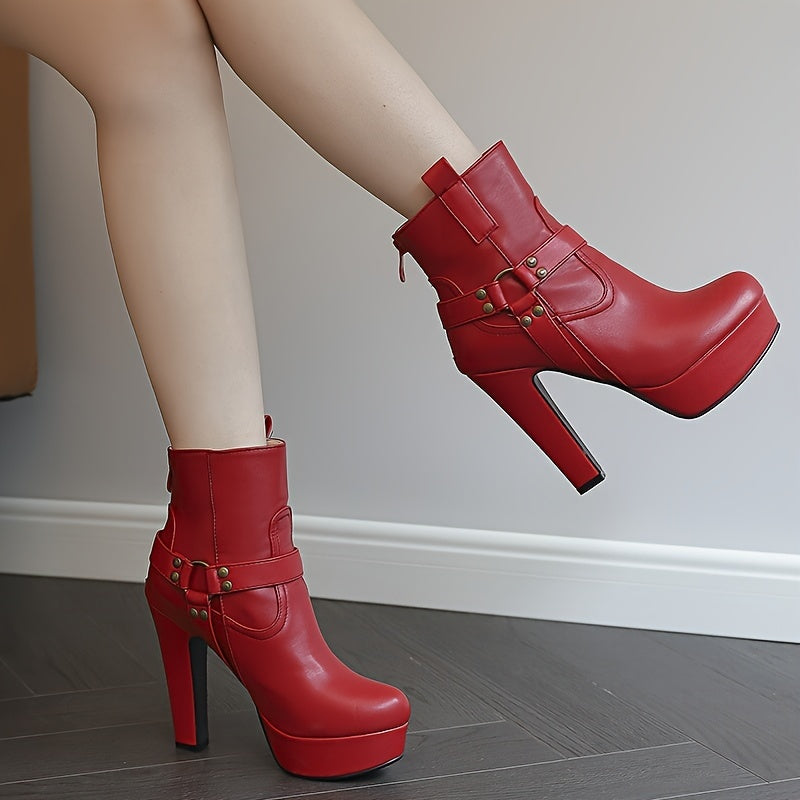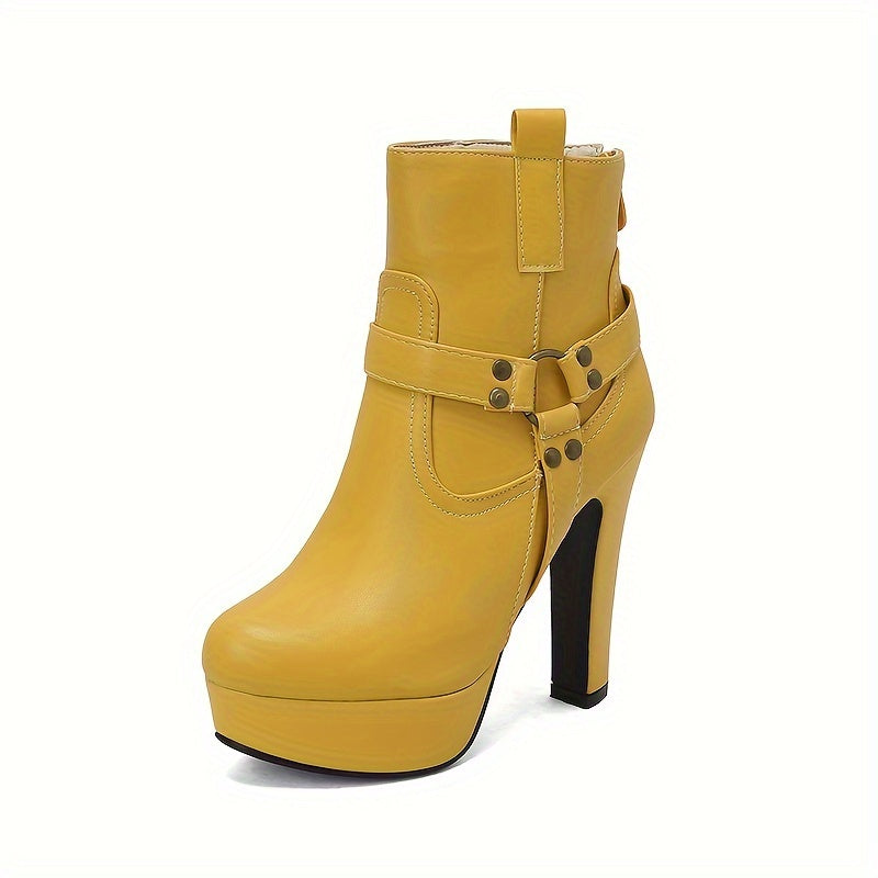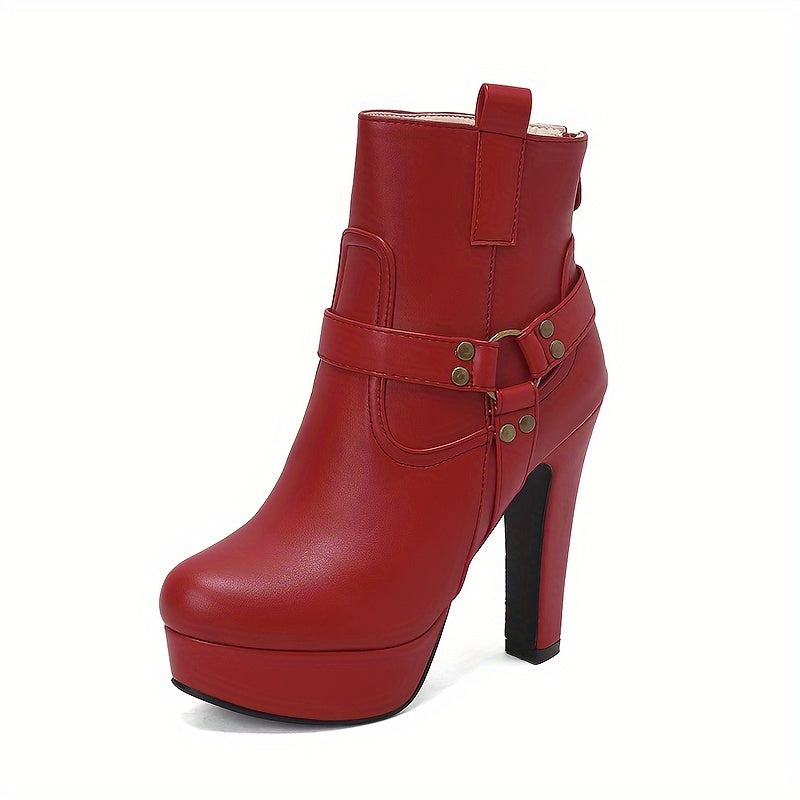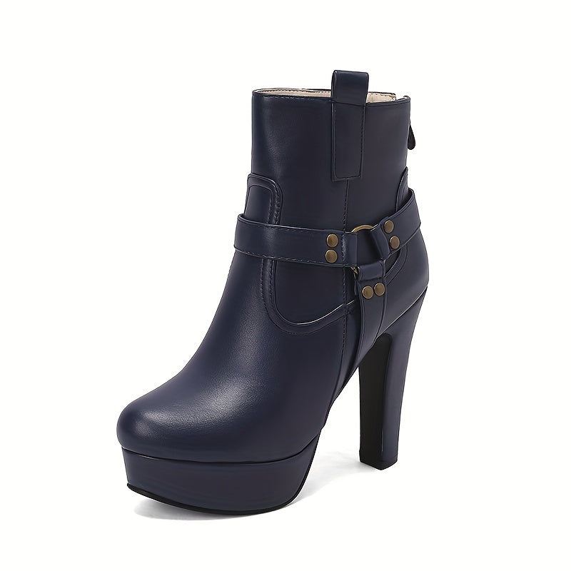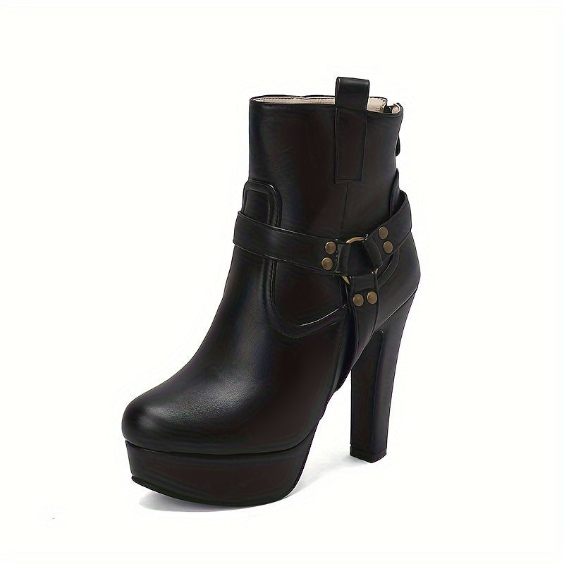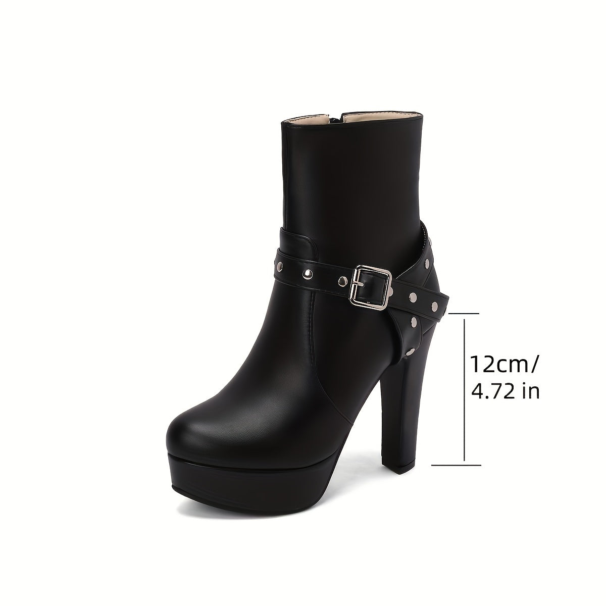 [Chunky Heel] Women's Chunky Heel Ankle Boots | 12cm Platform | Faux | Decorative Studs, Zipper Closure | Winter Boots for Dresses | Elegant, Black