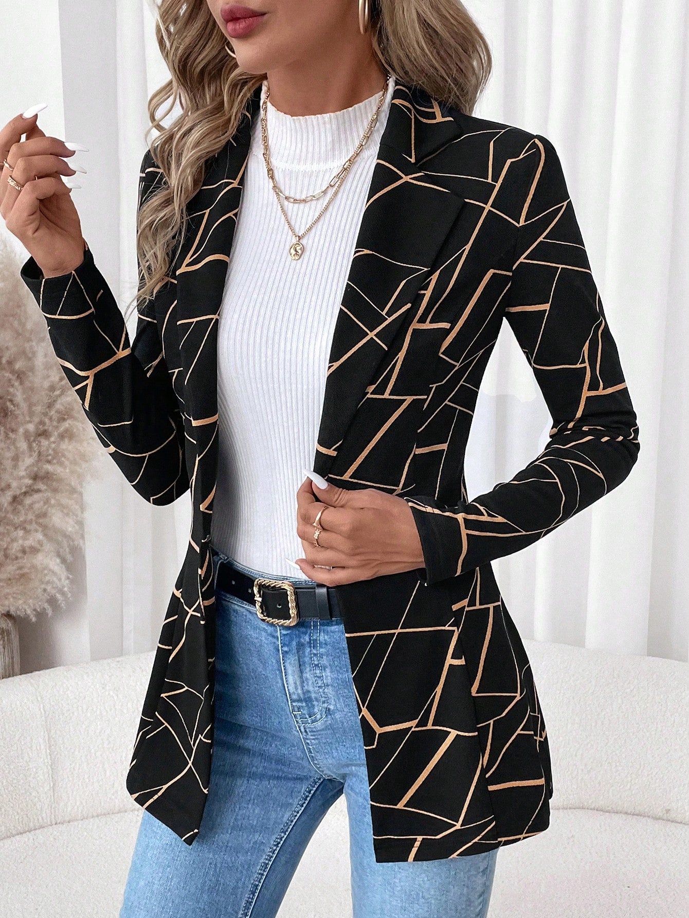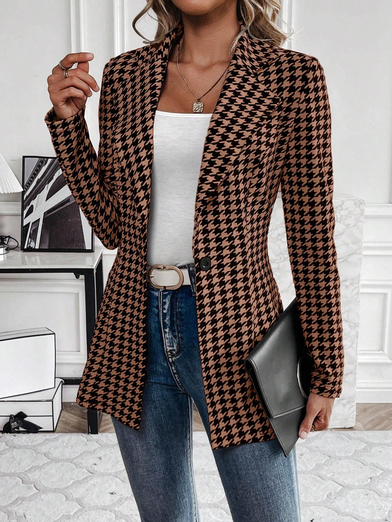 Clasi Waist-Cinching Houndstooth Pattern Blazer Jacket
