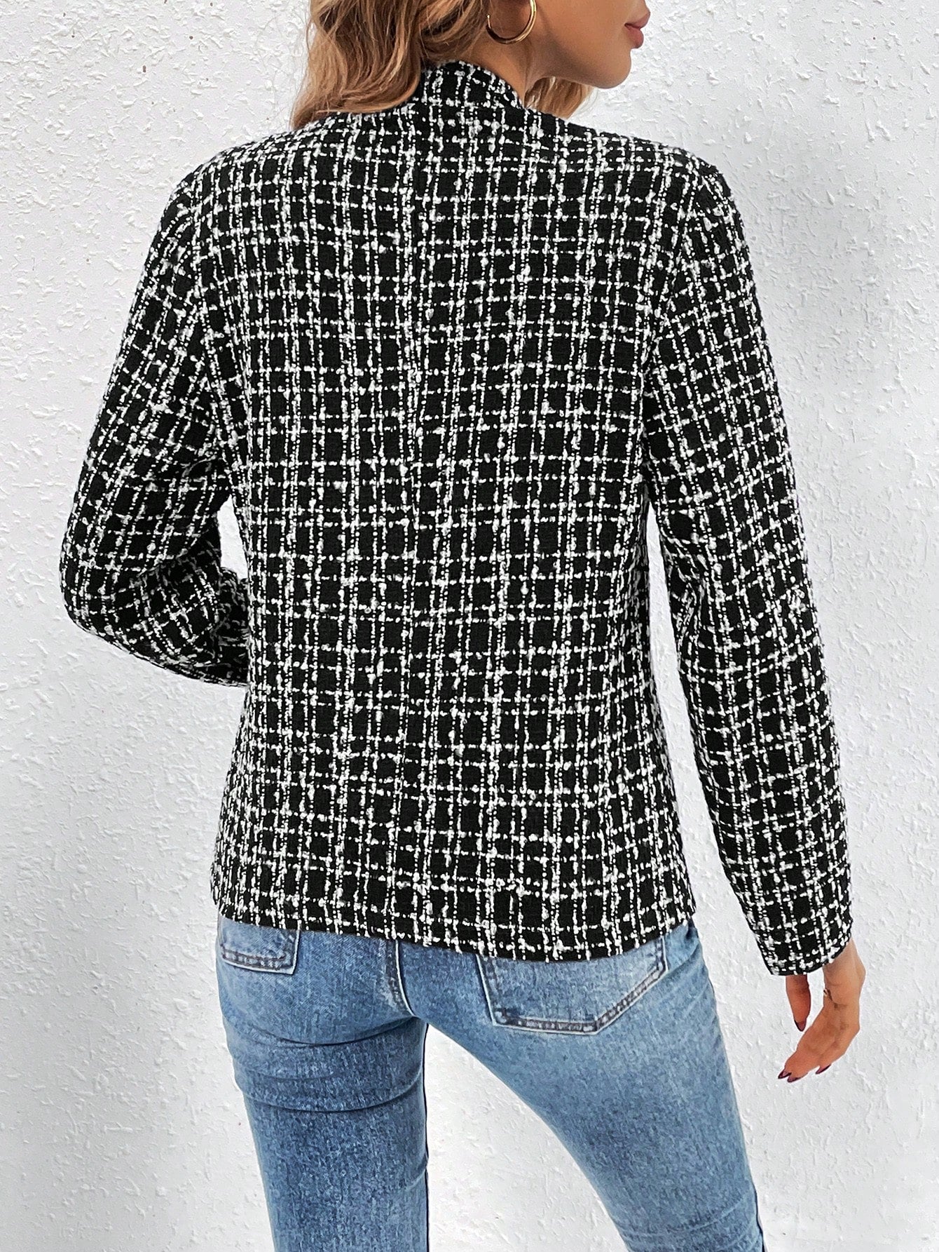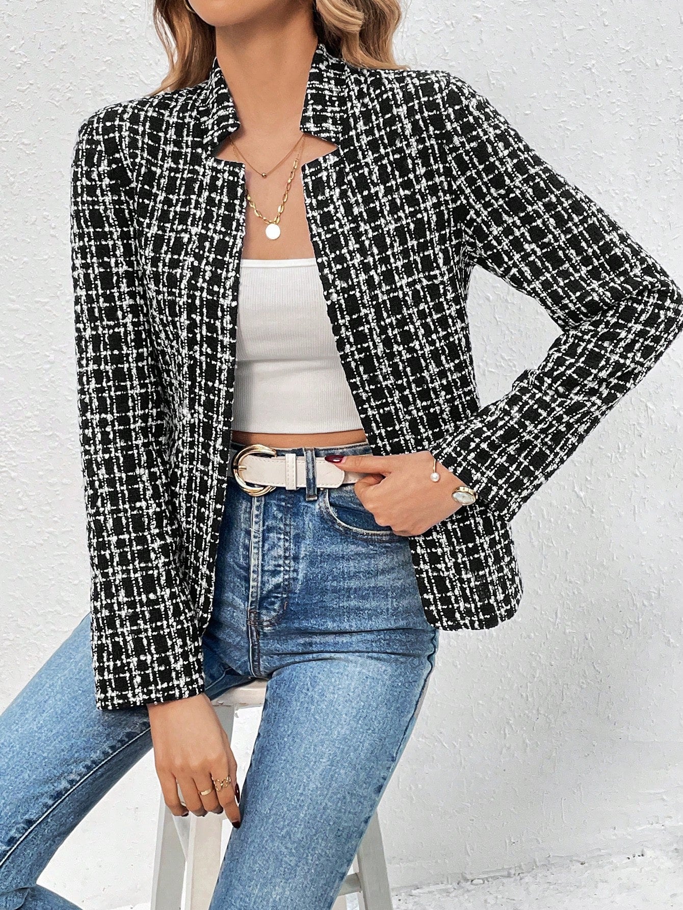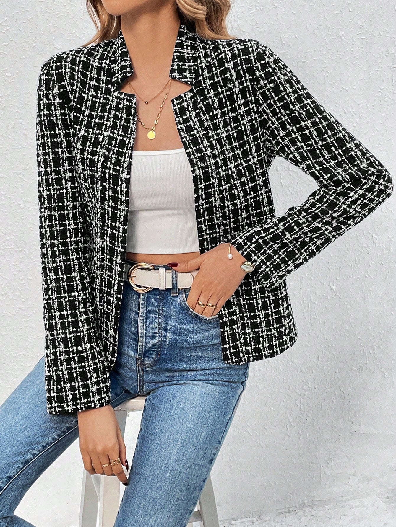 Clasi Women's Plaid Notched Collar Open Front Blazer Jacket