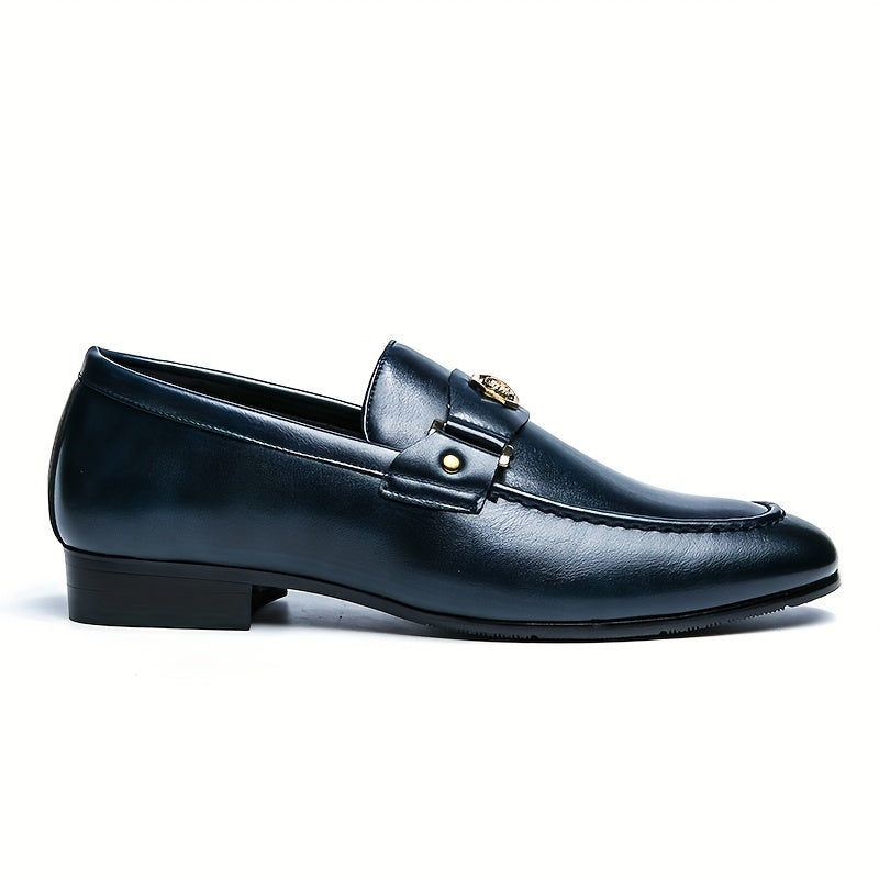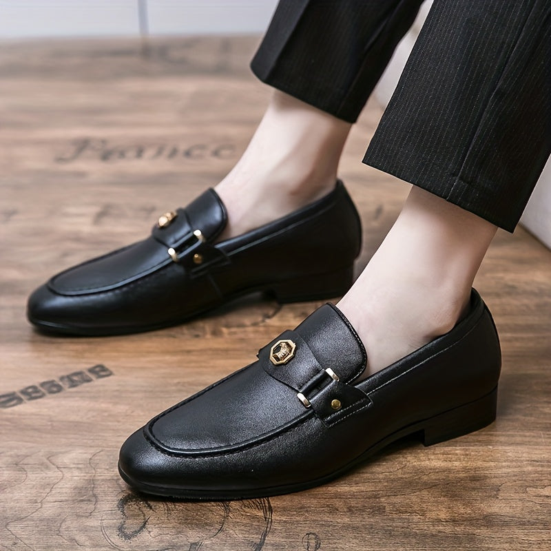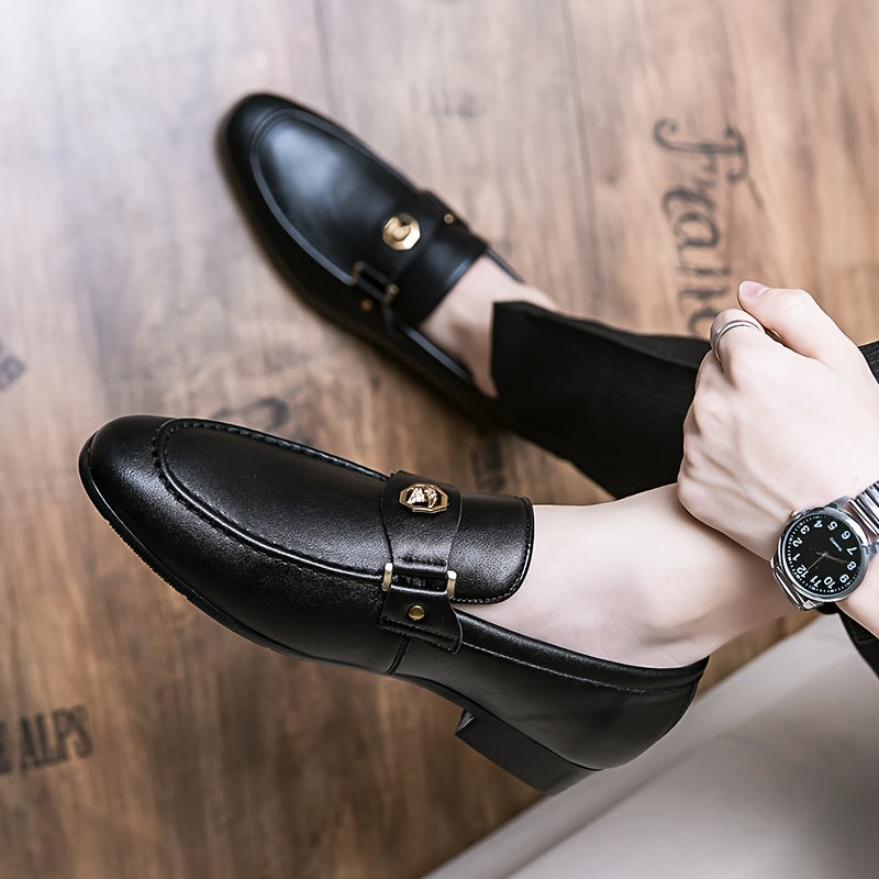 [Classic Oxford] Classic Black Oxford Shoes | Men's Comfortable Loafers with Golden-Tone Metal Buckle - Slip-On, Round Toe for Business & Casual Wear