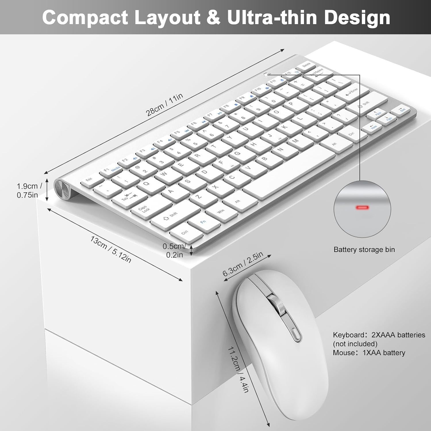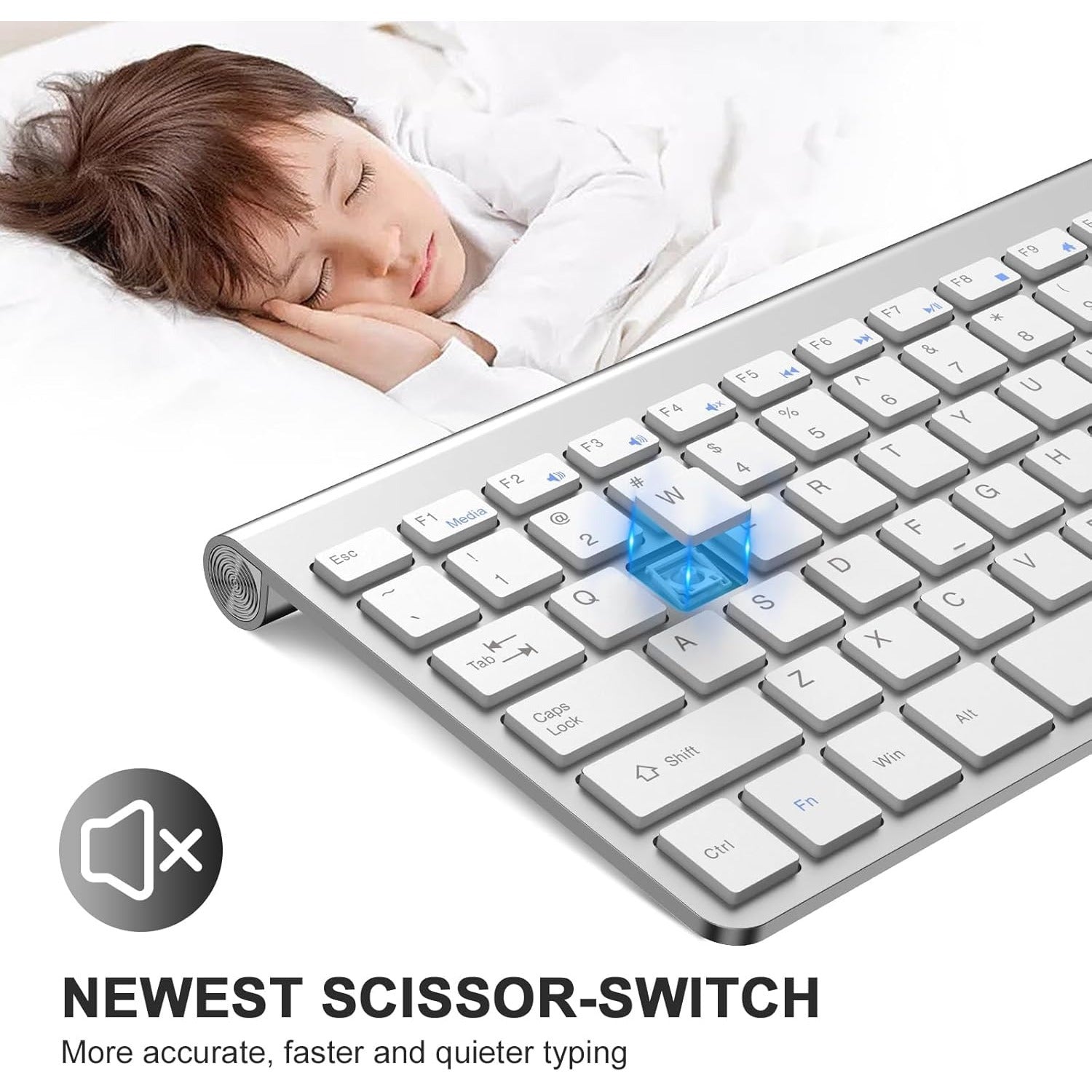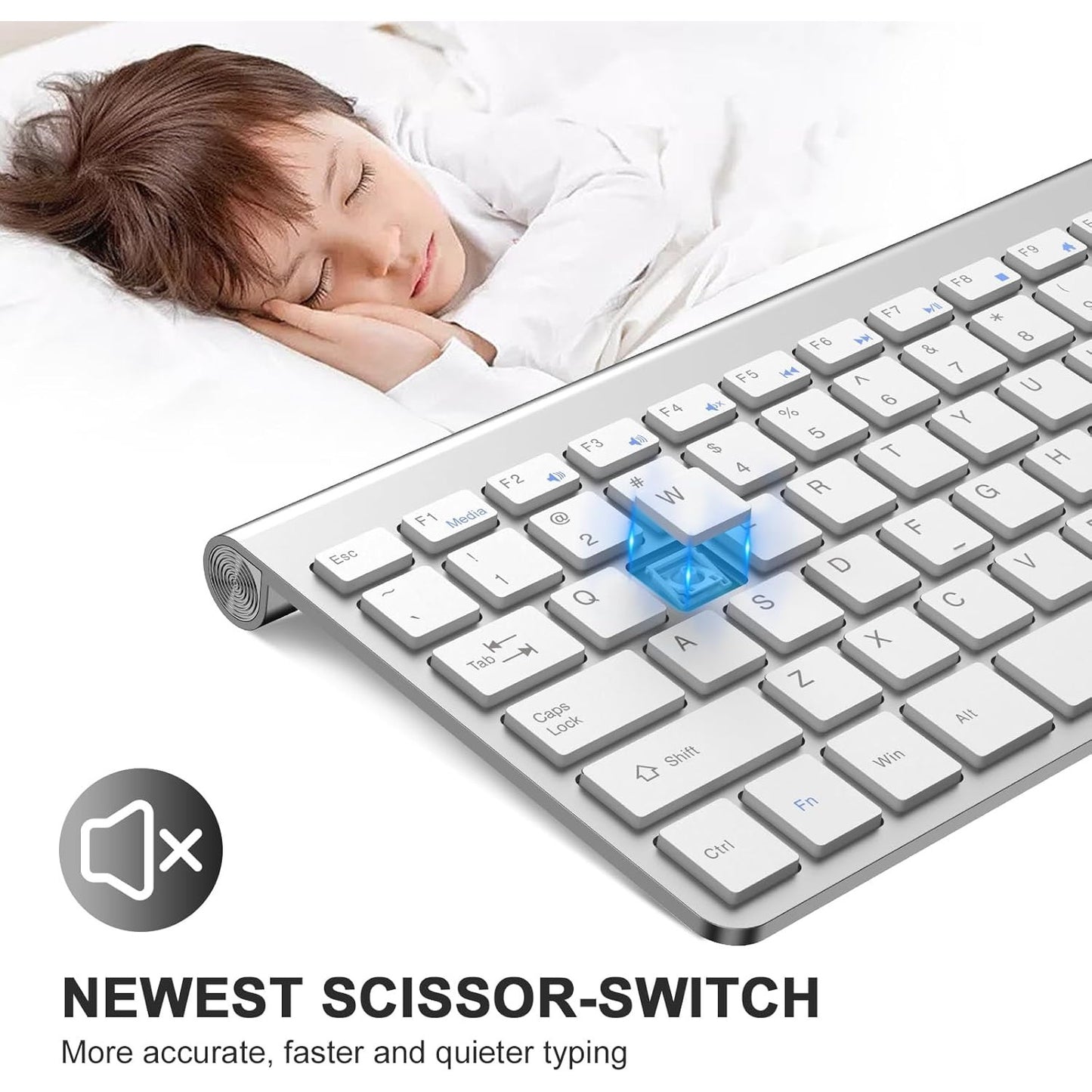 Clavier et Souris Sans Fil, [Clé à Commutateur Ciseaux] [Ultra Mince] Clavier et Souris Sans Fil pour Ordinateur Windows, PC, Laptop, Mac, MacBook - Argenté