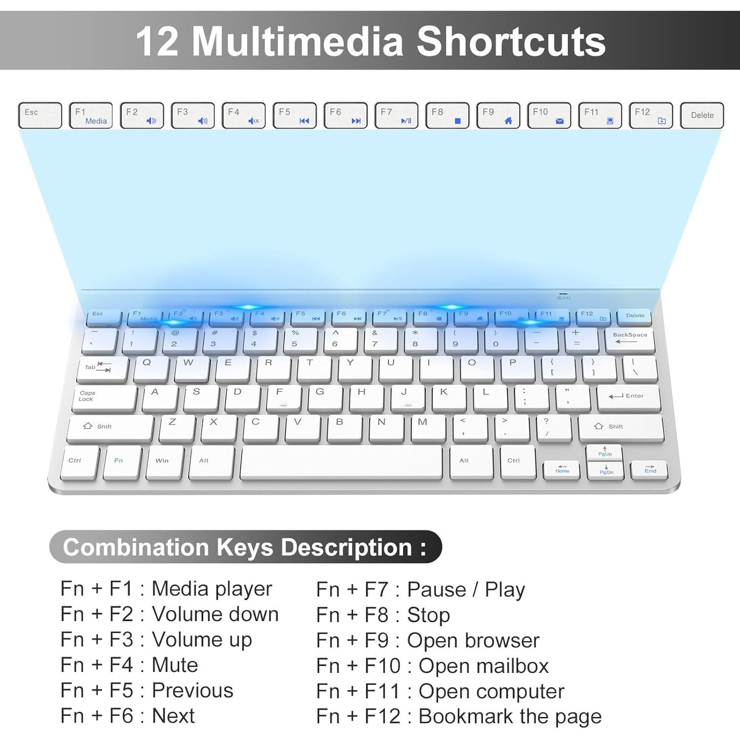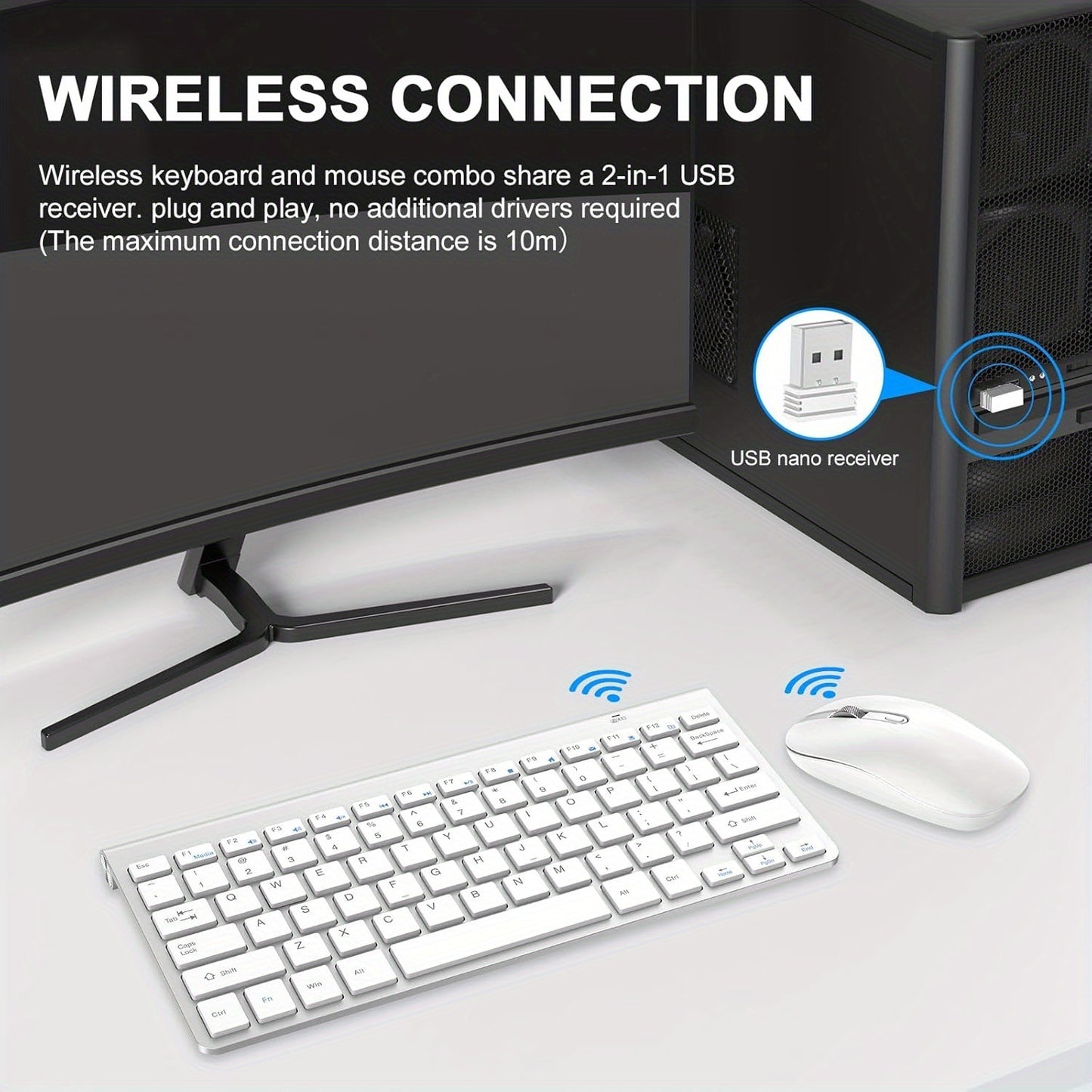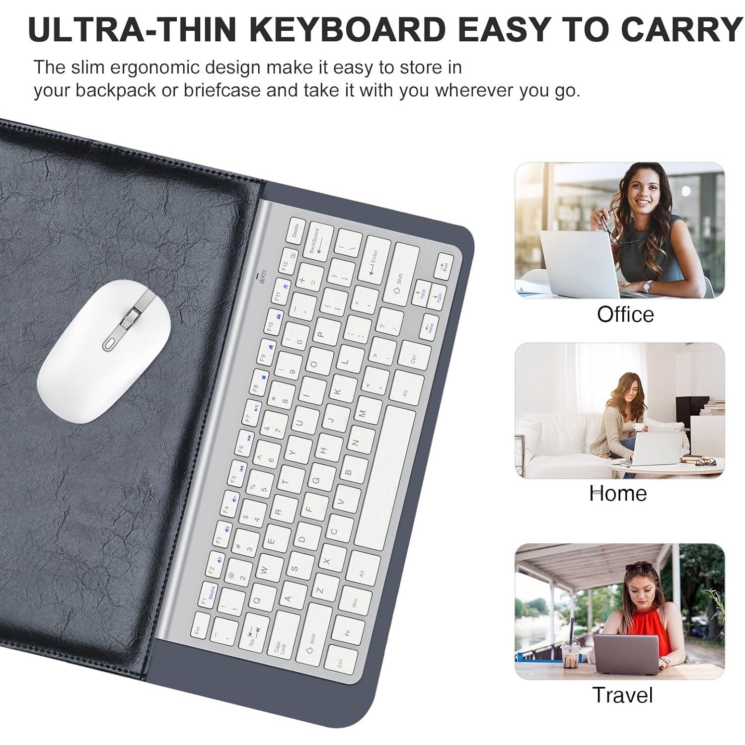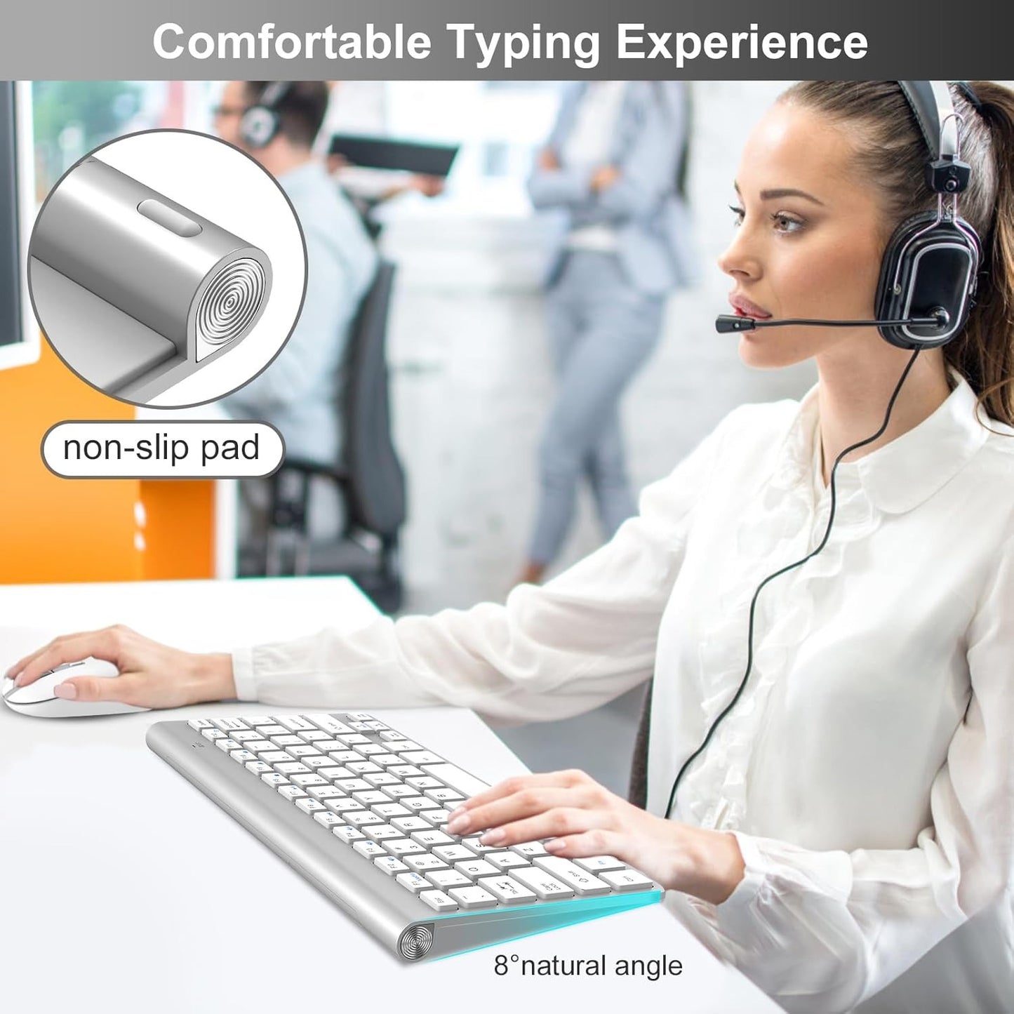 Clavier et Souris Sans Fil, [Clé à Commutateur Ciseaux] [Ultra Mince] Clavier et Souris Sans Fil pour Ordinateur Windows, PC, Laptop, Mac, MacBook - Argenté