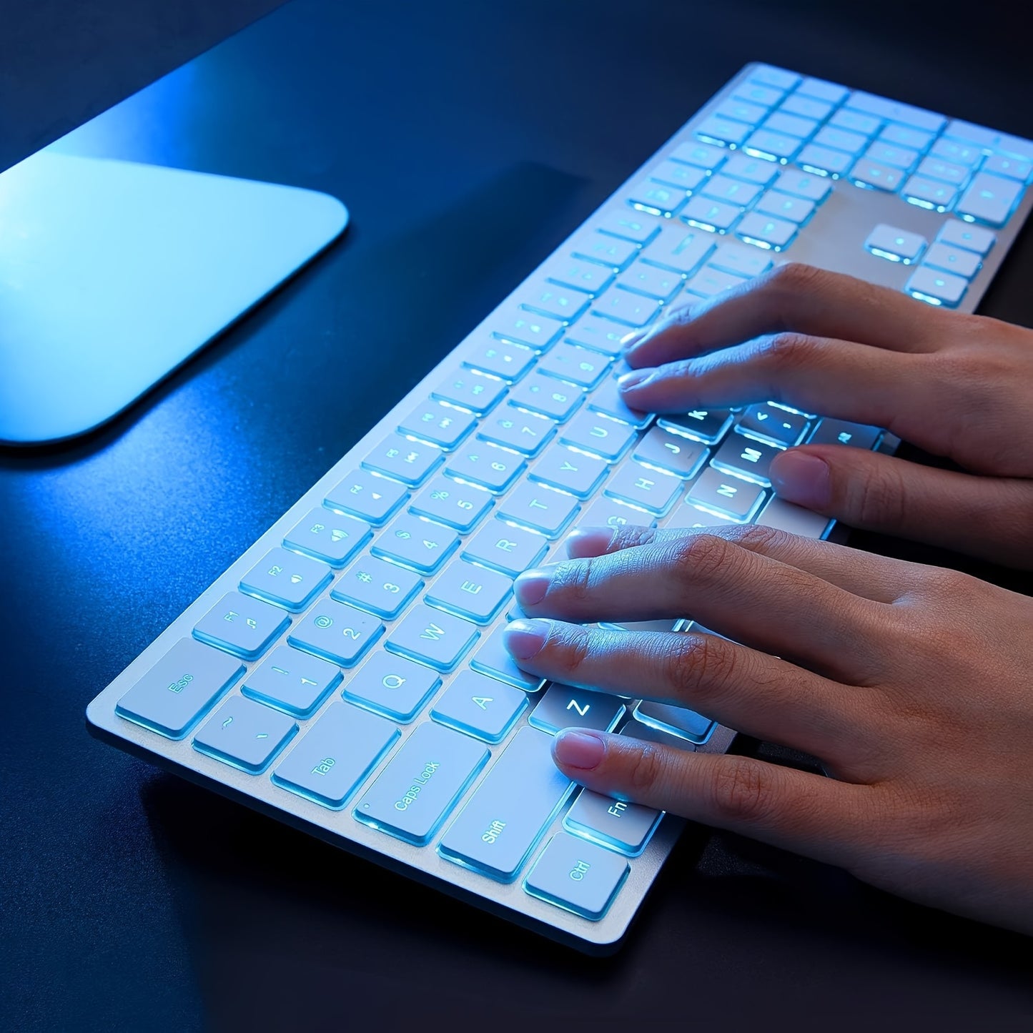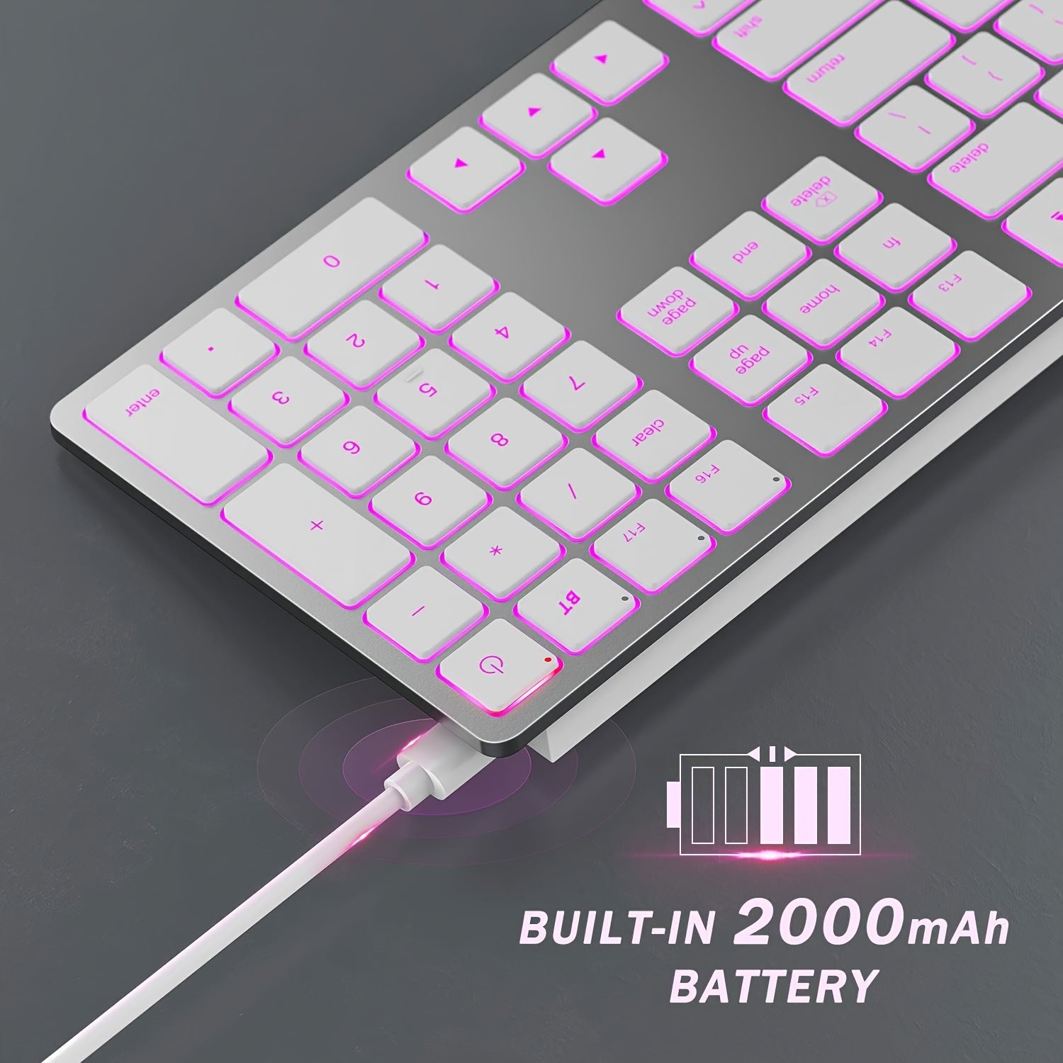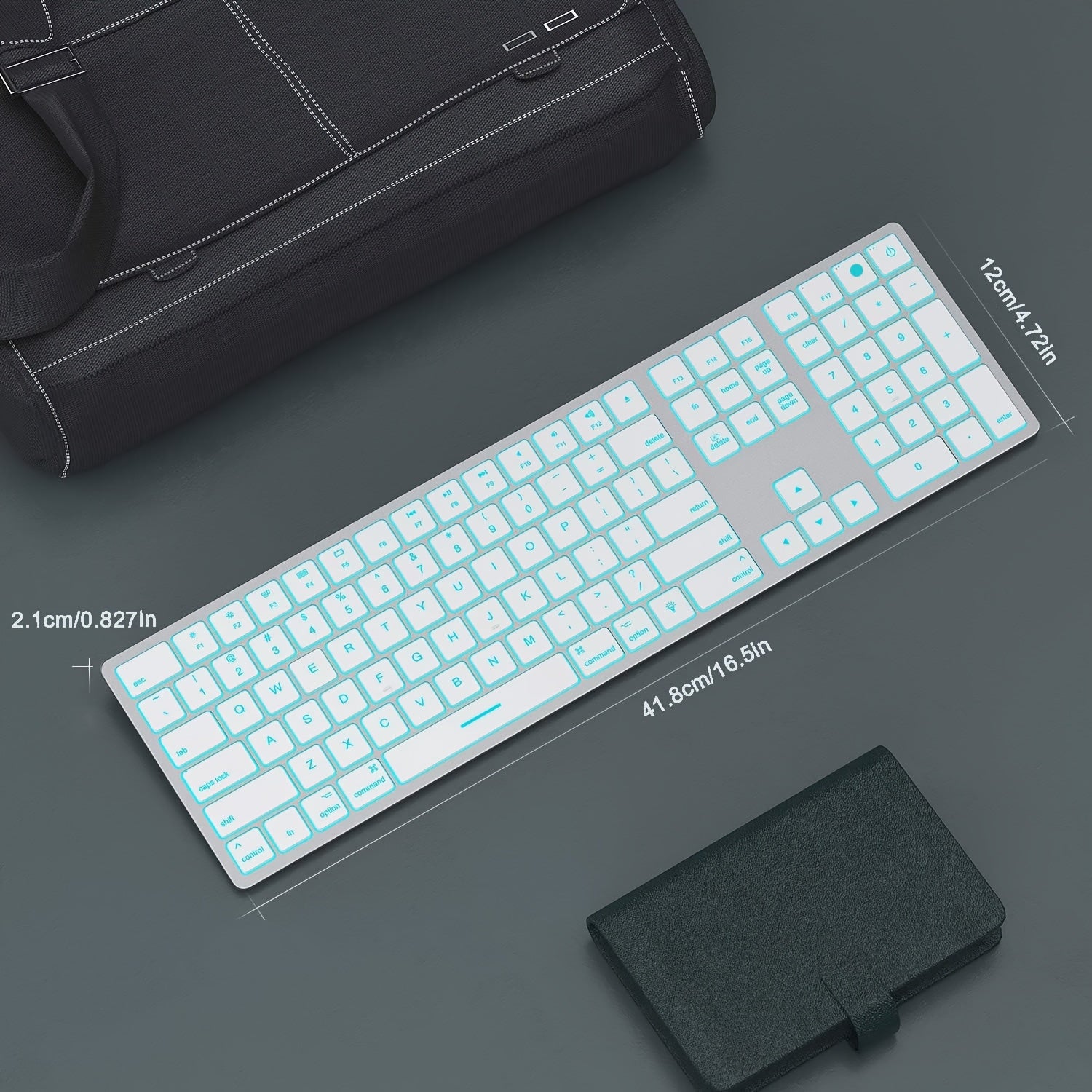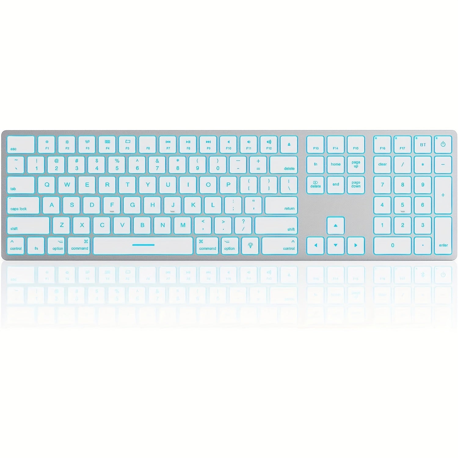 Clavier Rechargeable Sans Fil BT pour Mac IMac MacBook Pro Air Mac Mini, Clavier Rétroéclairé RGB 7 Couleurs, Clavier Mince avec Tastature Numérique
