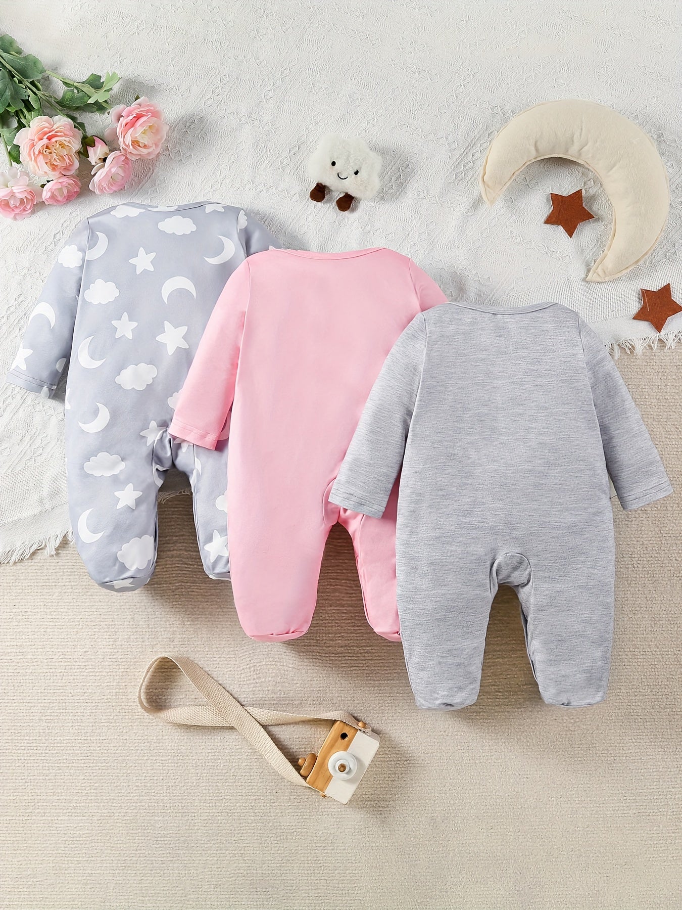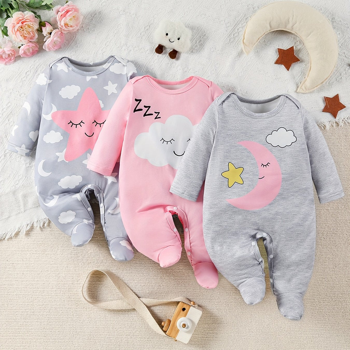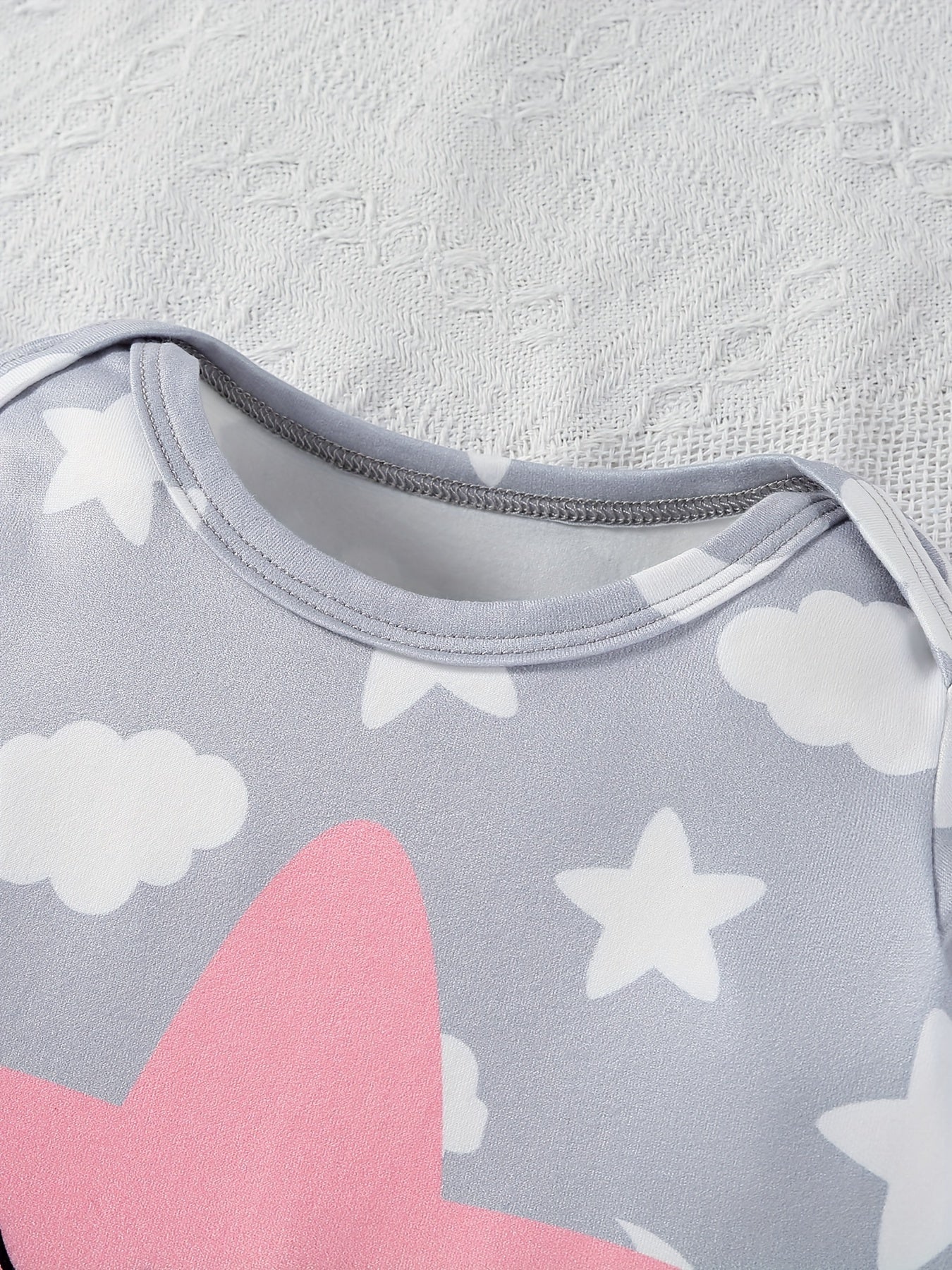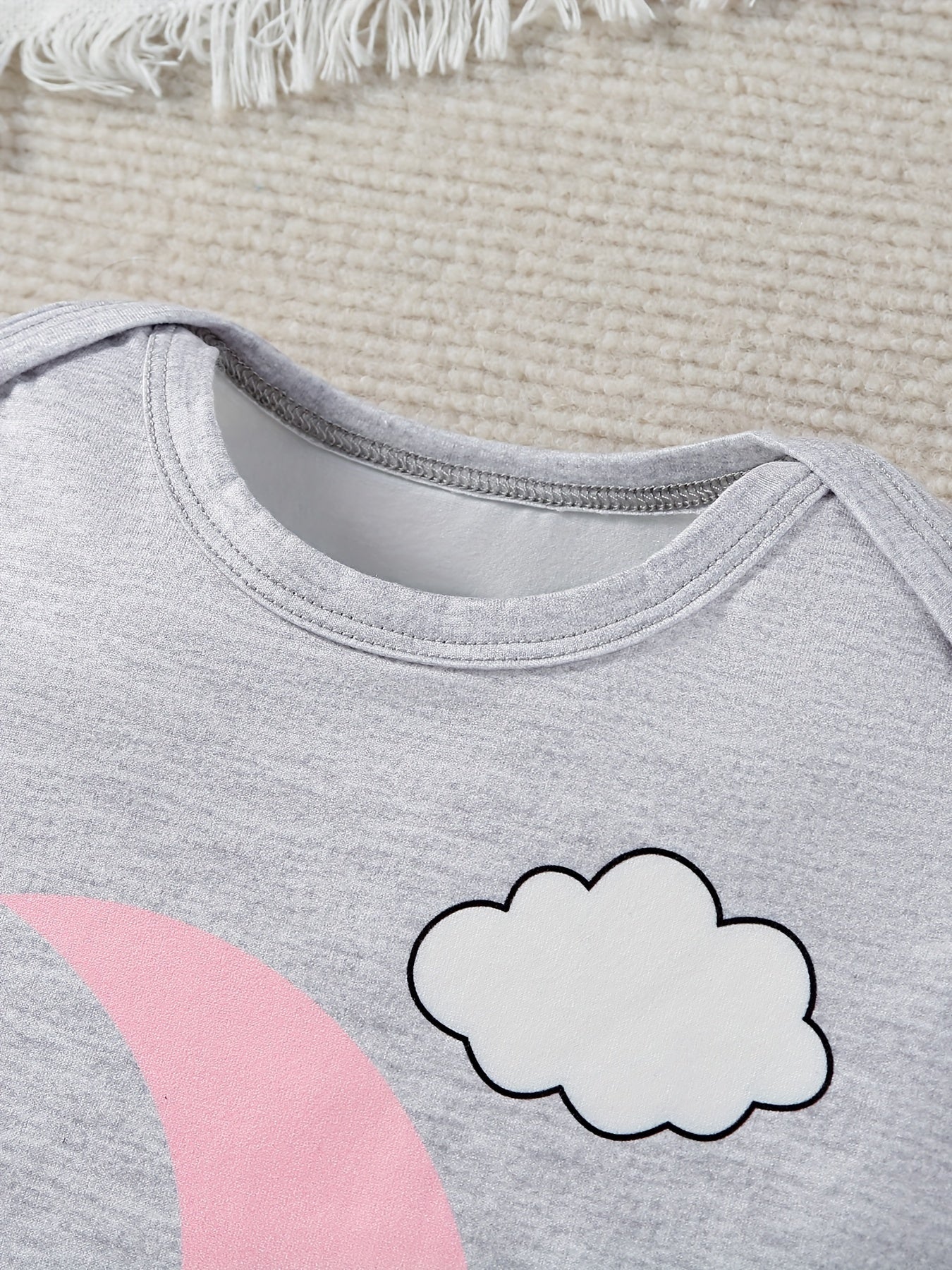 Cloud Print Footed Romper Three-Piece Set, Perfect for Outdoor