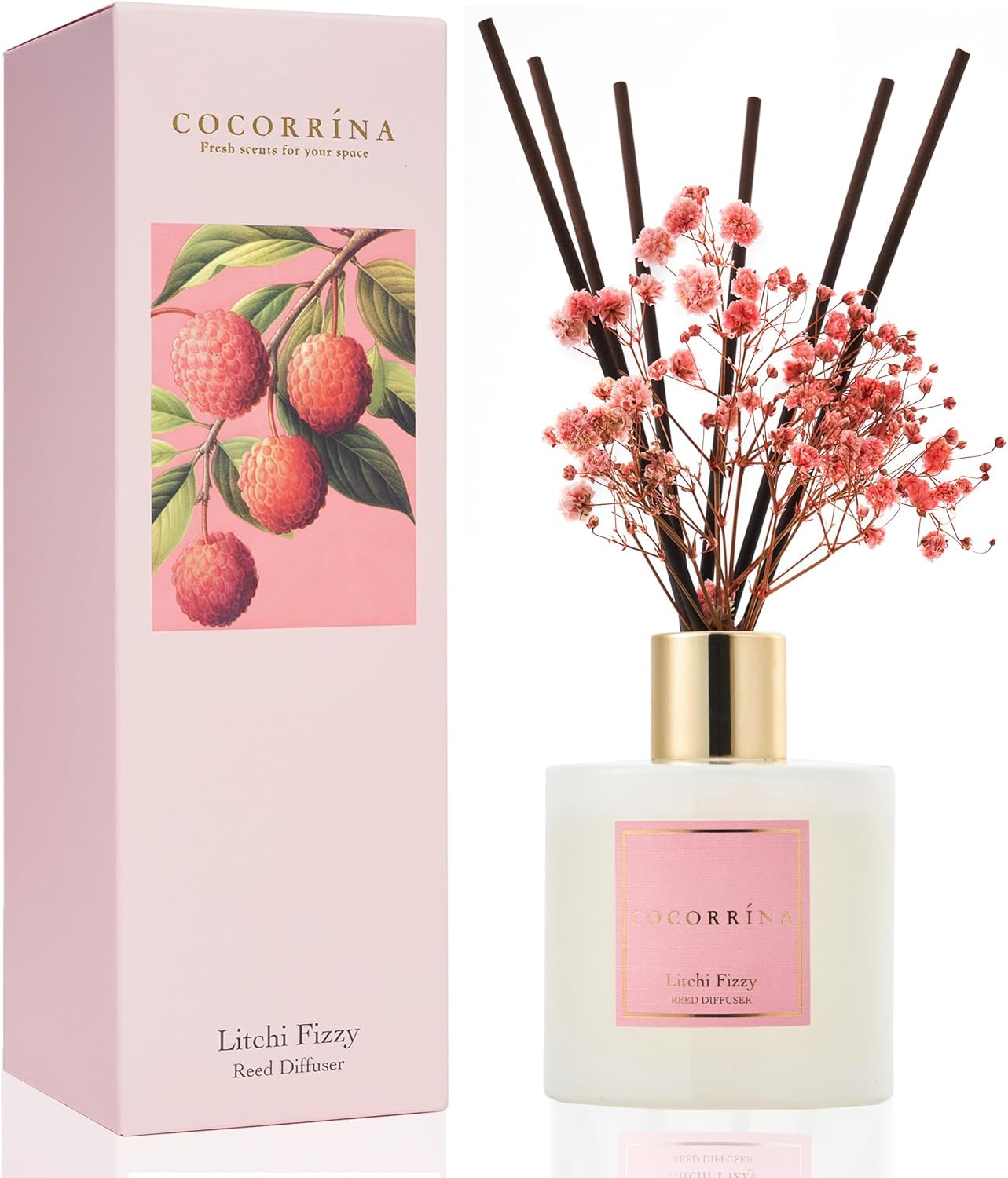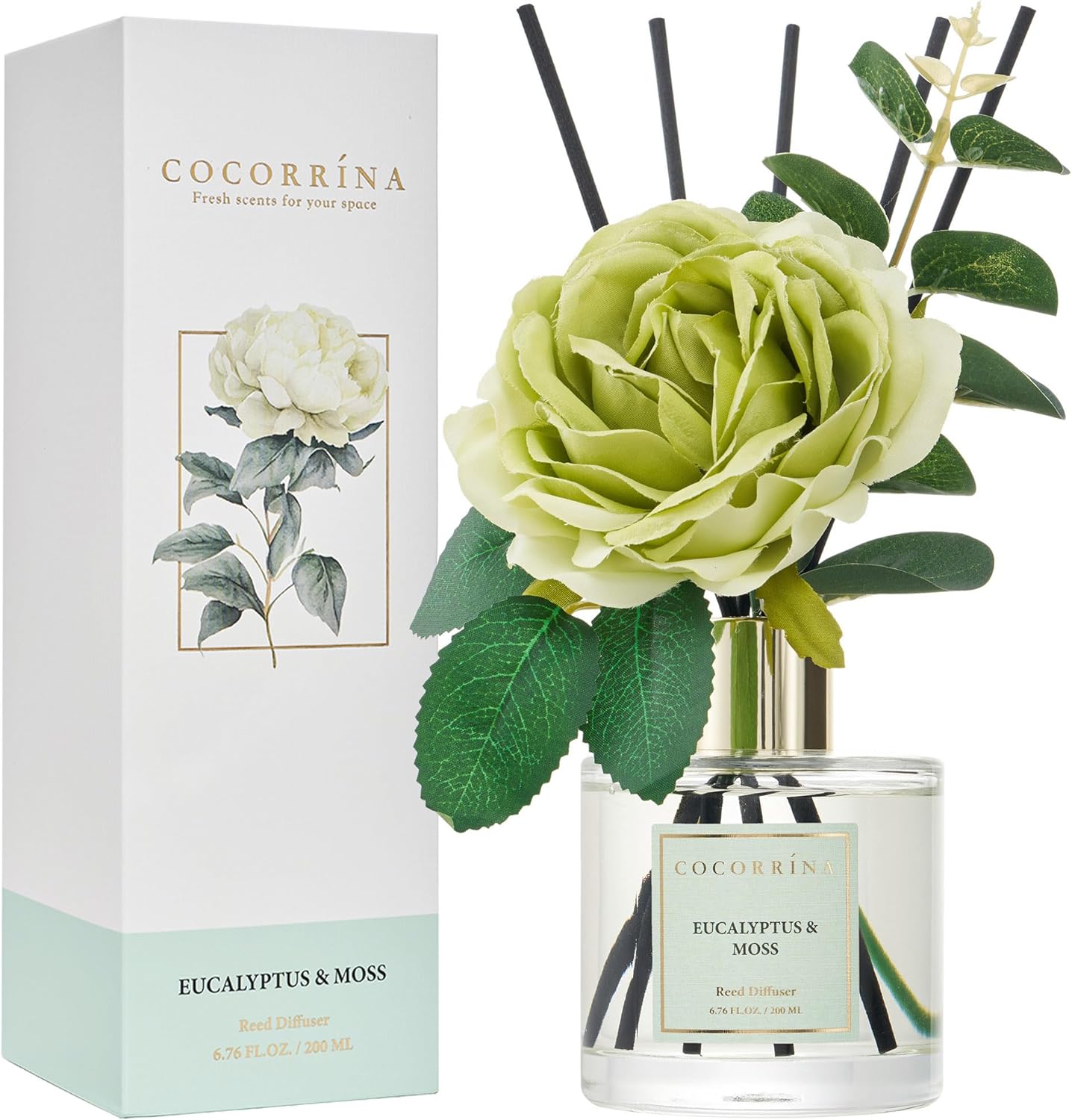 Cocorina Reed Diffuser Set, Flower Reed Diffuser Cashmere Vanilla, Scented Diffuser with Sticks Home Fragrance Essential Oil for Bathroom Shelf Decor, Living Room, Large Room, Rose/6.7 Ounce/1pack