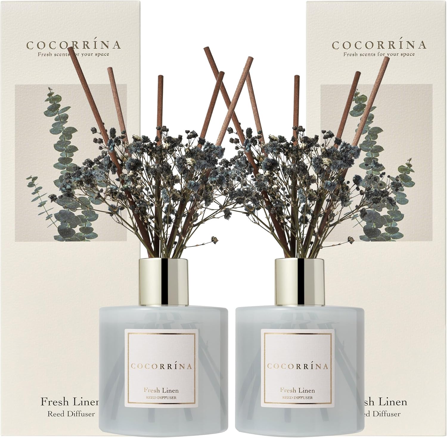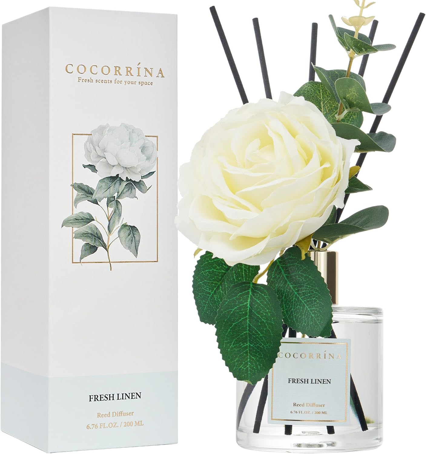Cocorrína Reed Diffuser Set, 6.7 oz Clean Linen Scented Diffuser with Sticks Home Fragrance Reed Diffuser for Bathroom Shelf Decor