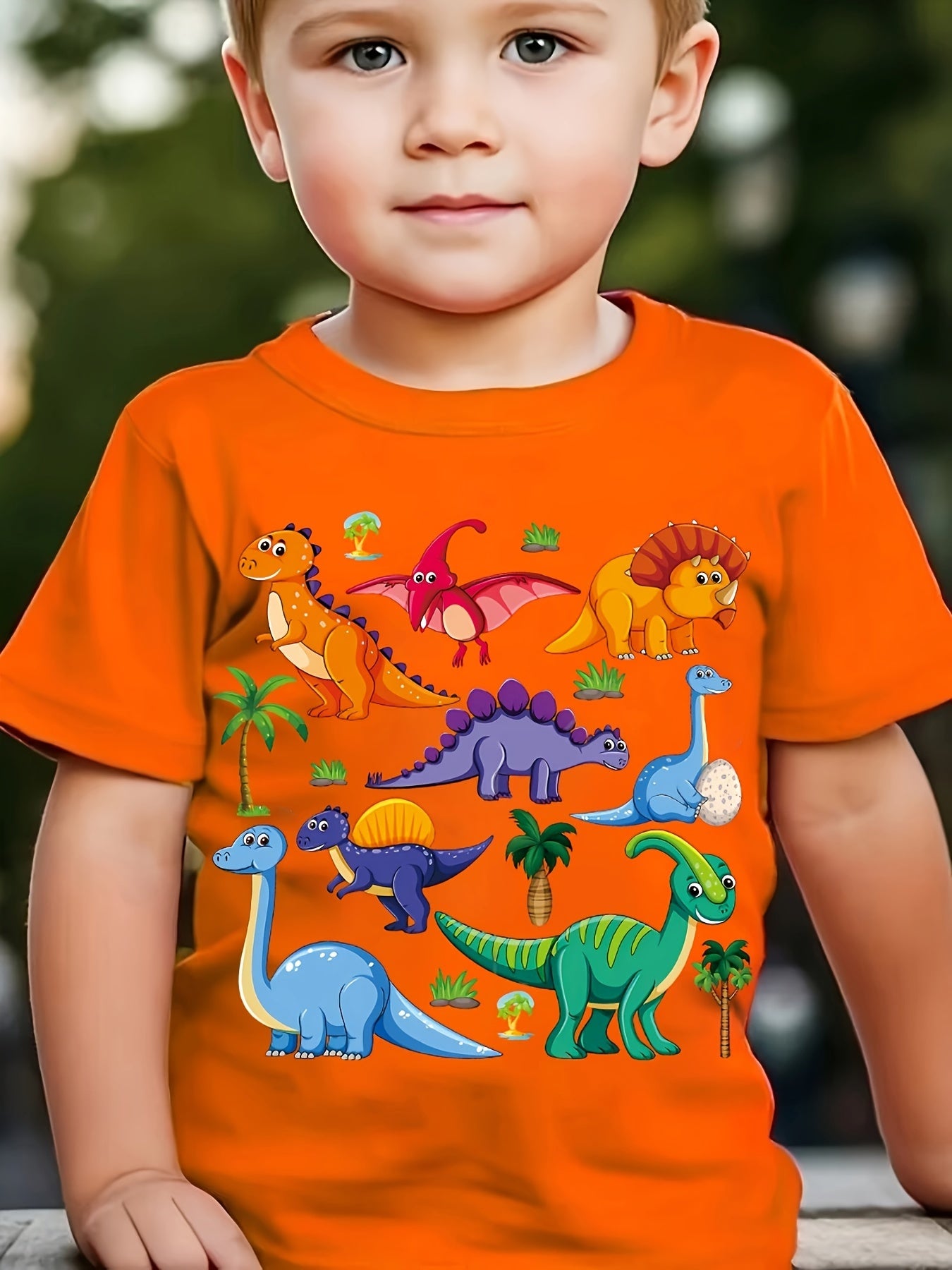Colorful Dino Print Boy's T-shirt, Lightweight And Comfortable Short Sleeve T-shirt, Boy's Summer Clothing