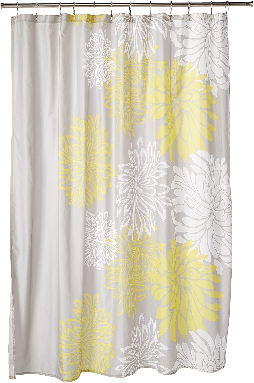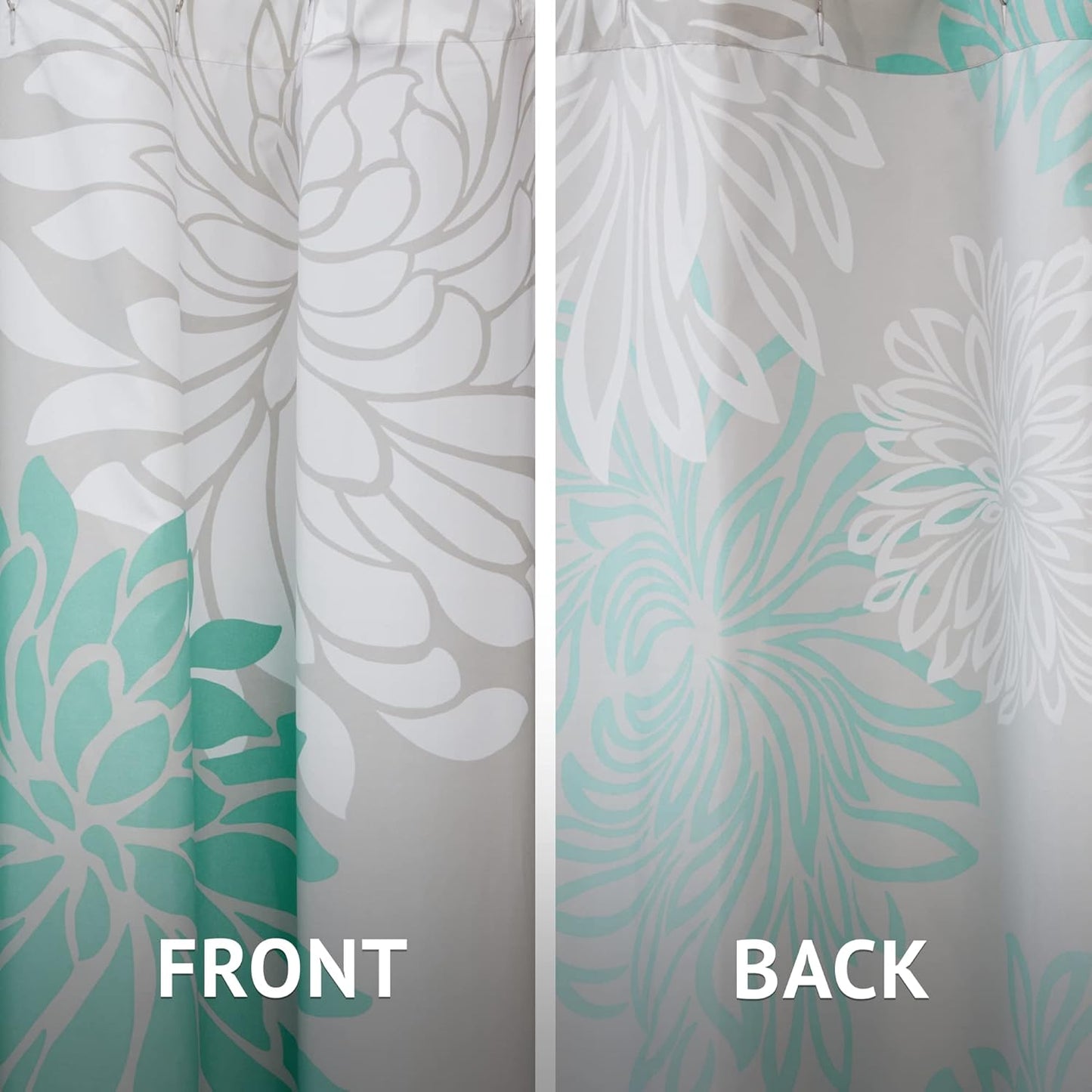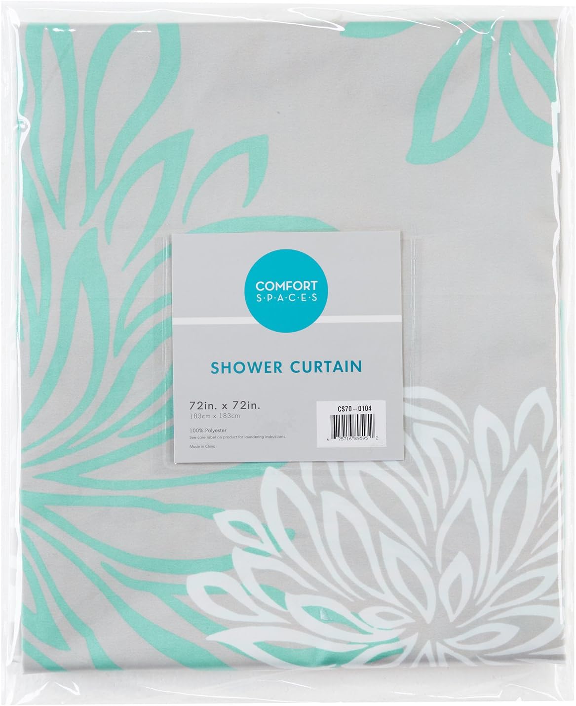 Comfort Spaces Enya Bathroom Shower Floral Printed Cute Chic Microfiber Fabric Bath Curtains, 72"x72", Aqua/Grey