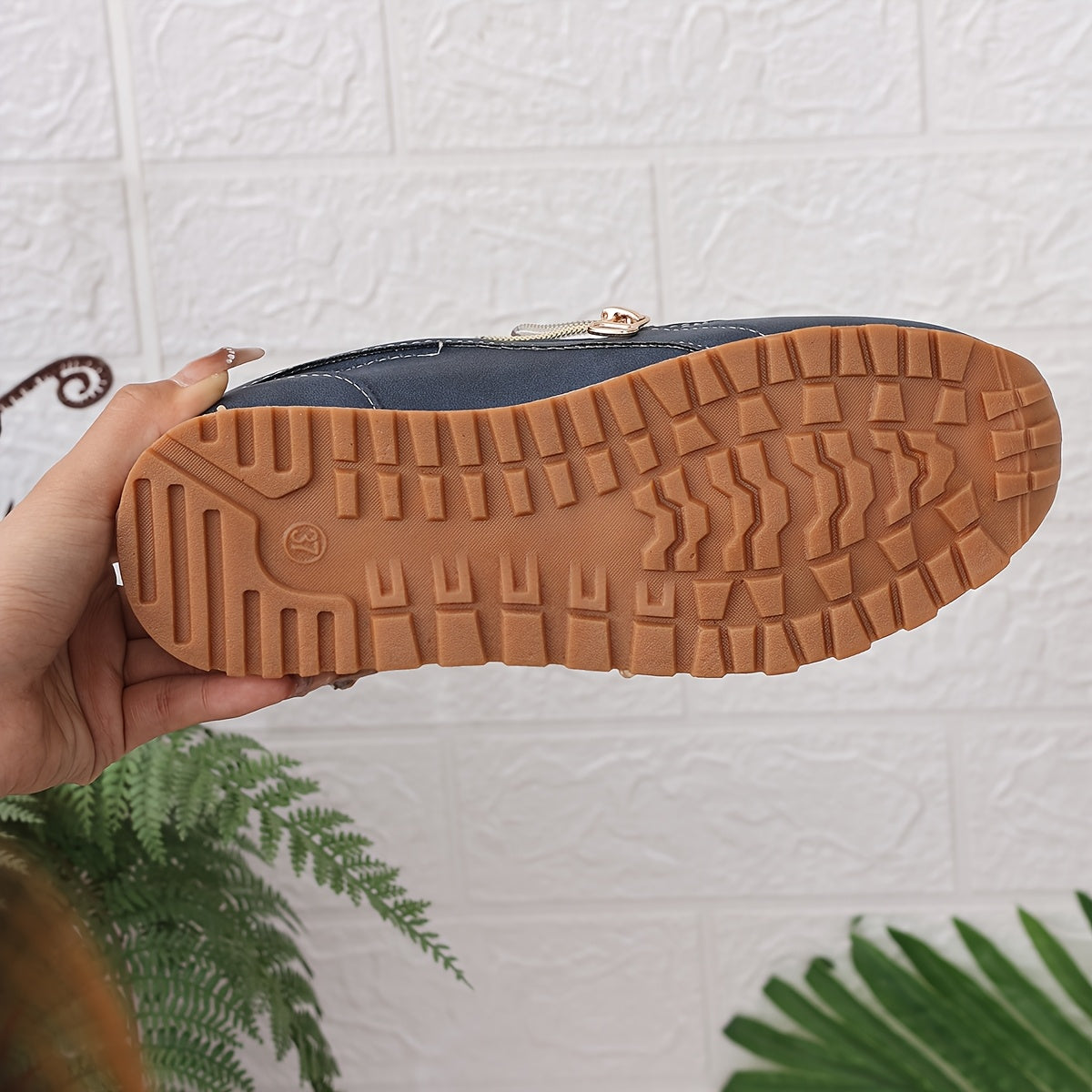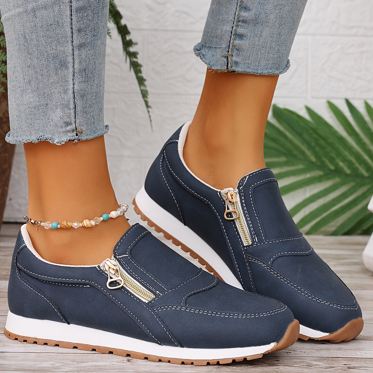 [Comfortable Slip-On Sneakers] Navy Blue Women's Slip-On Sneakers | Comfortable Low-Top Design, Breathable Fabric Lining, Durable TPR Sole, Zipper Detail - Everyday Shoes | Ballet Shoes