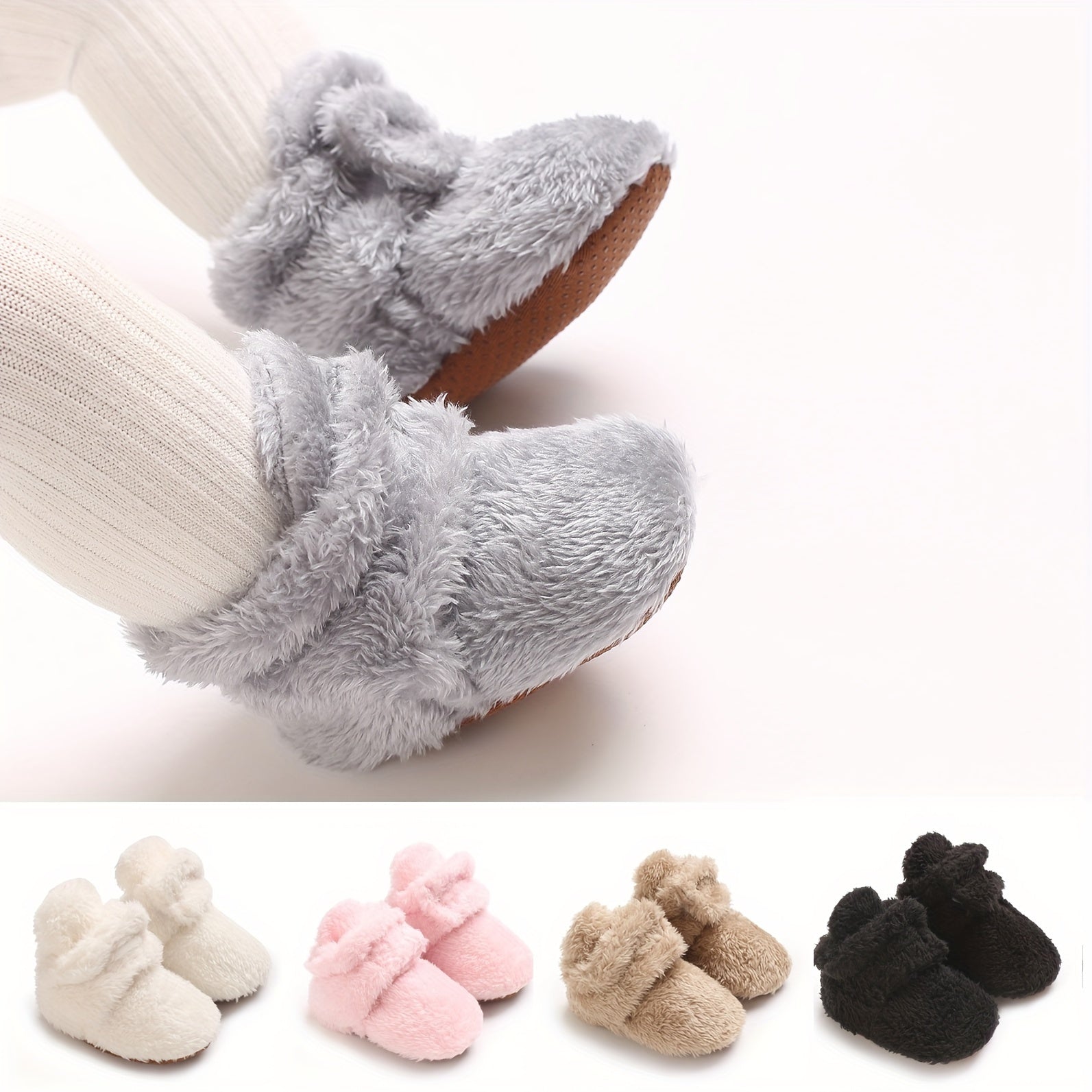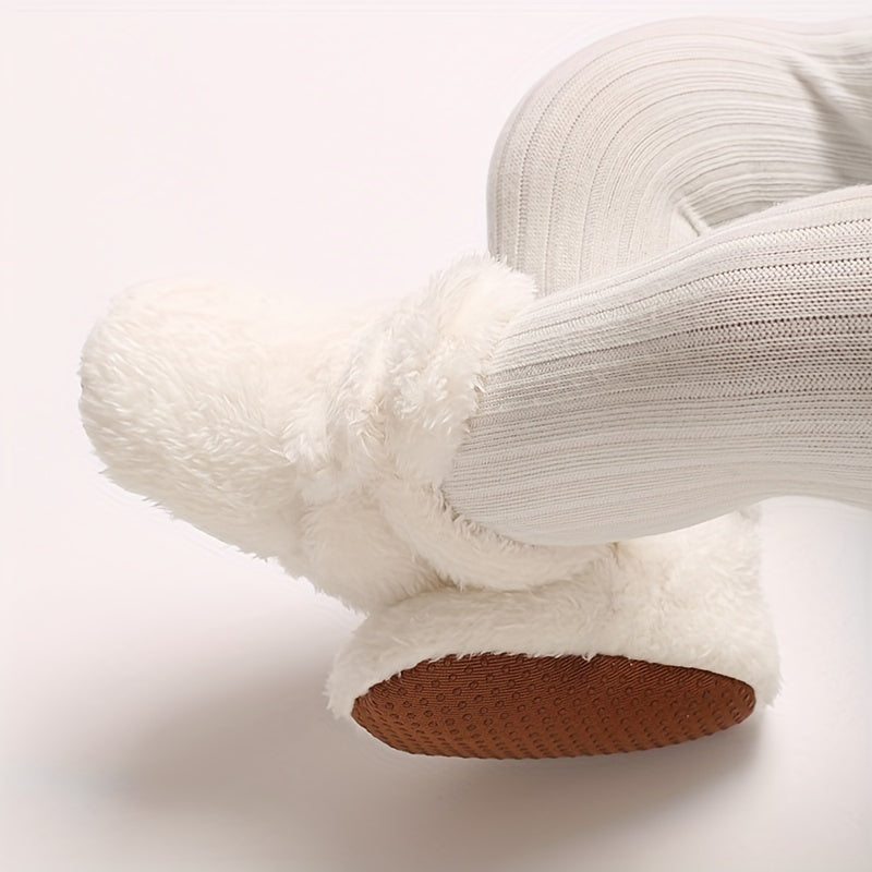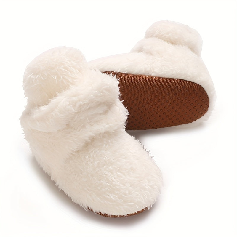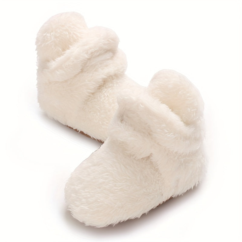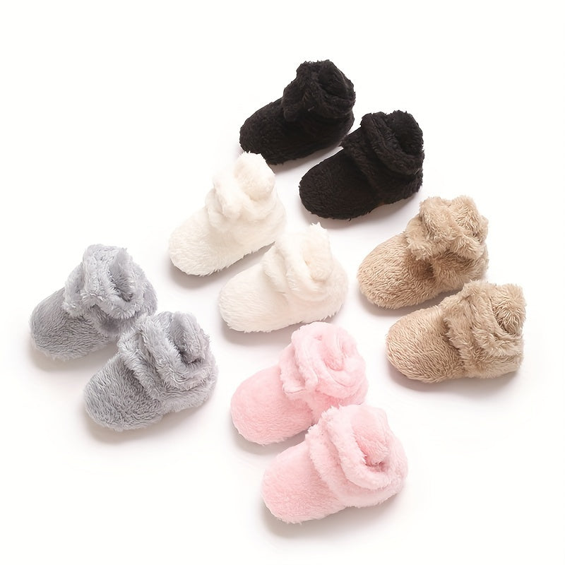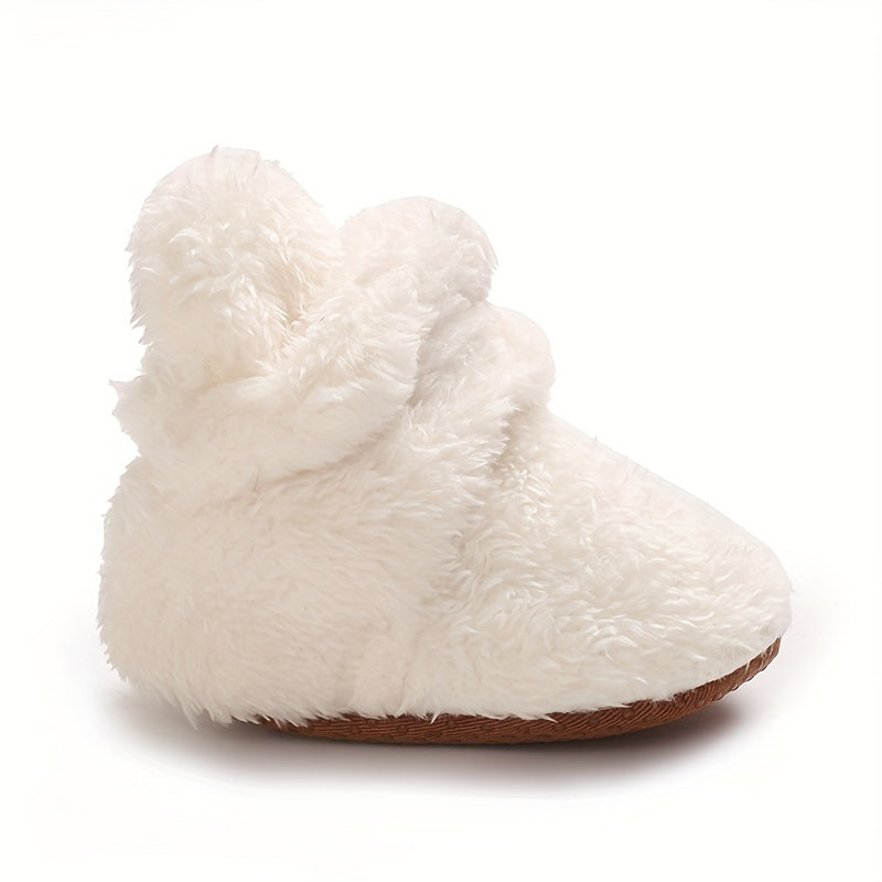 Cozy Winter Baby Shoes for 0-1 Year Olds - Soft Ankle-High Infant Walking Shoes with Faux Fur Texture, Bow Detail, and Flexible Sole for Comfort and Warmth