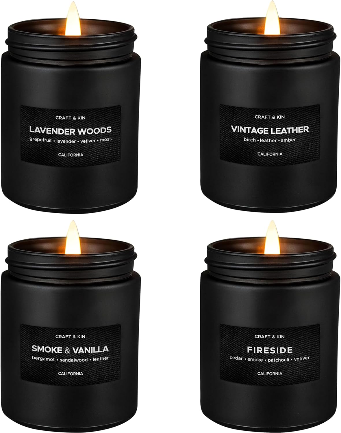 Craft & Kin Premium Smoke & Vanilla Candle | Black Scented Candles for Men | Long Lasting with 45 Hour Burn Time, 7.6oz | Made with Soy | Aromatherapy at Home | Gifts for Men
