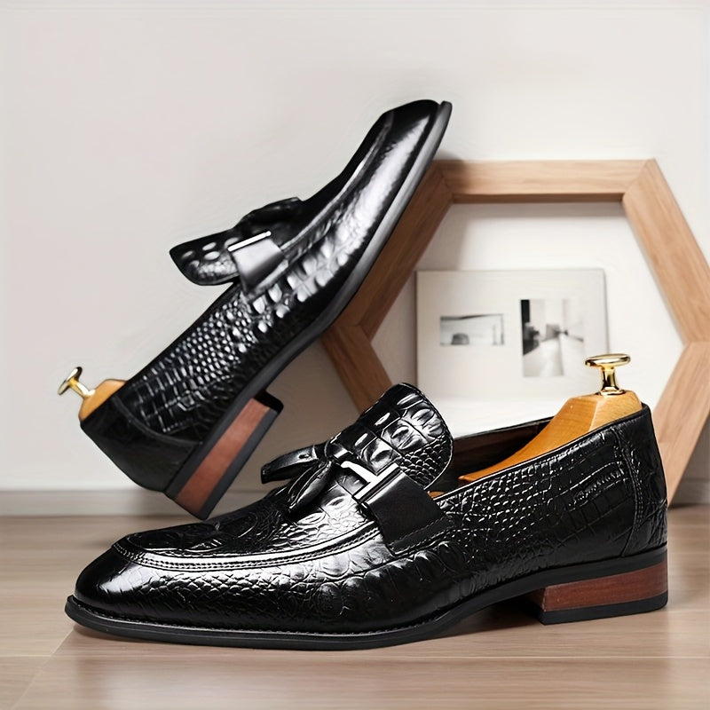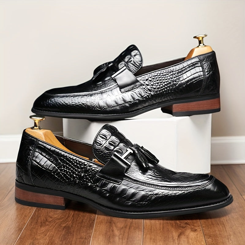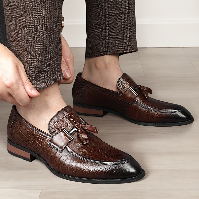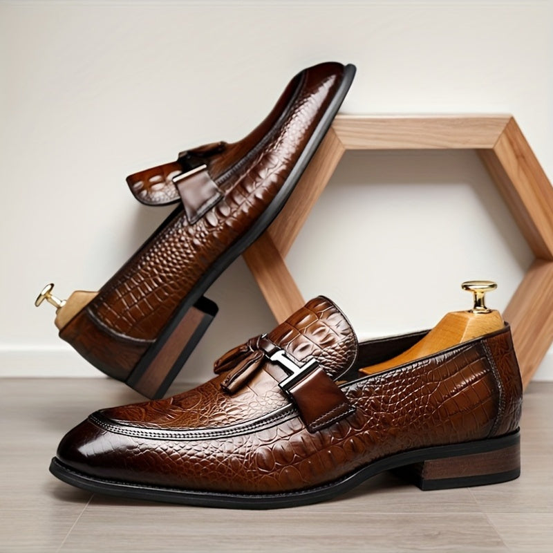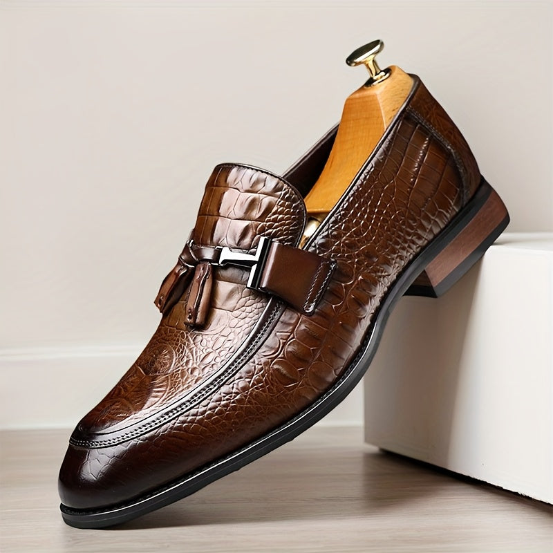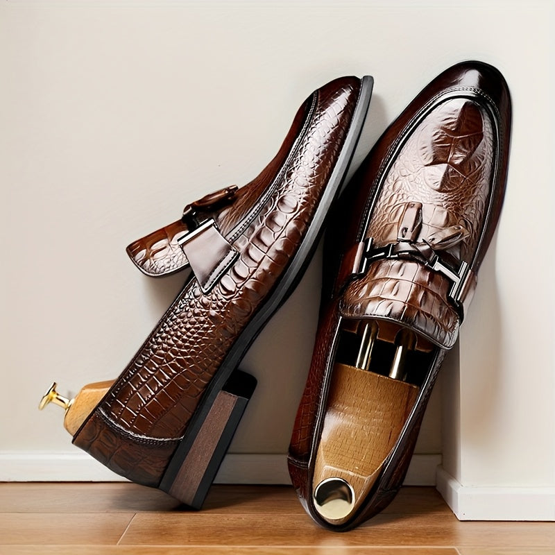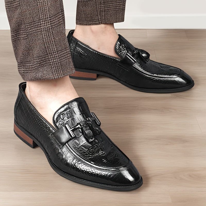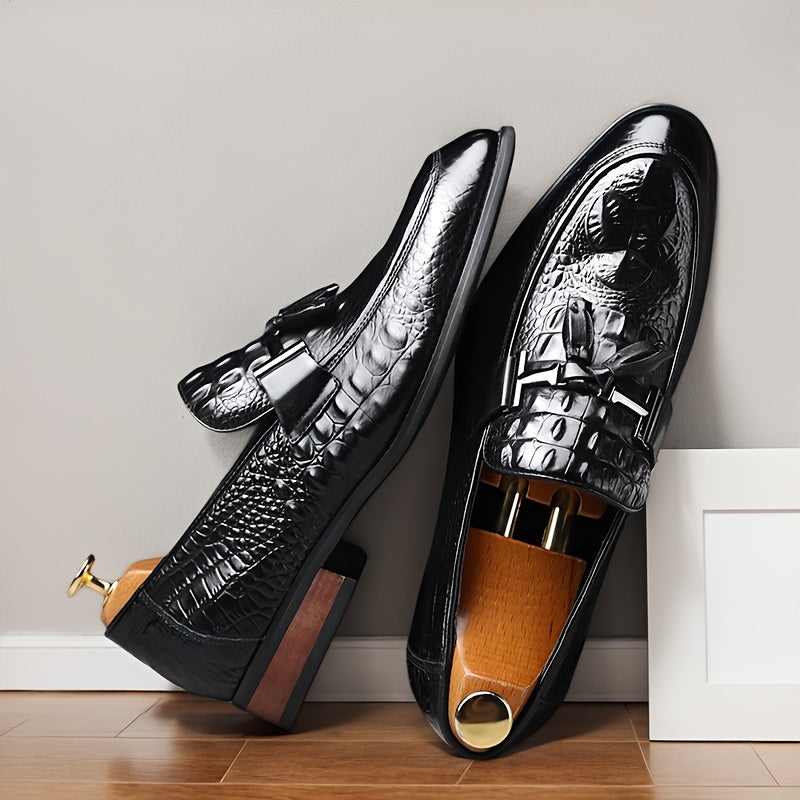 [Crocodile Leather Loafers] Genuine Leather Men's Slip-on Pointed-toe Large-size Loafers - British Business Casual Shoes And Also Formal Shoes, With Crocodile Texture On The Leather, Rubber Soles, And Suitable For All Four Seasons
