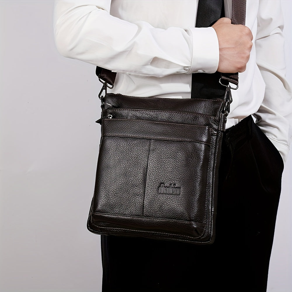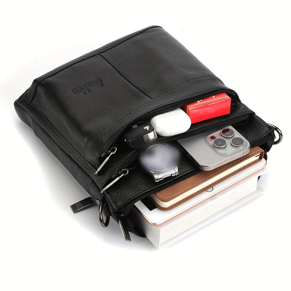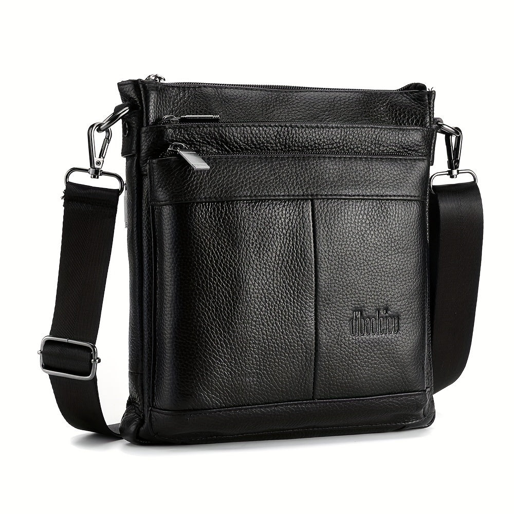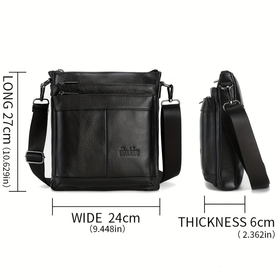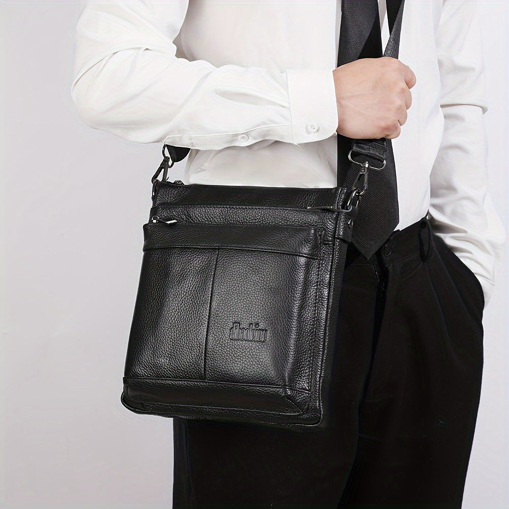 DEABOLAR Genuine Leather Crossbody Bag, Business Style Multi-Compartment Shoulder Bag with Adjustable Strap, Large Capacity Zippered Chest Bag for Office Commute, School, Travel - Black, Commuter Accessory | Professional Style Bag | Topgrain Leather
