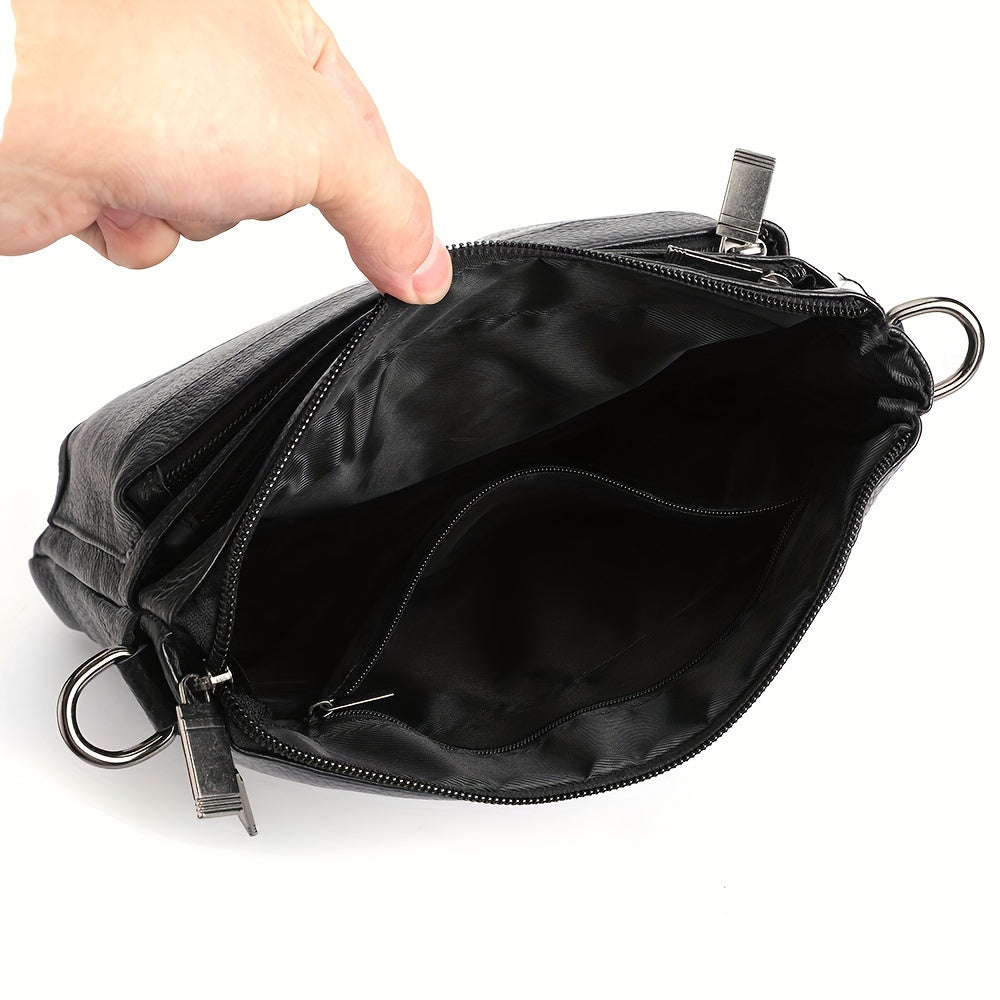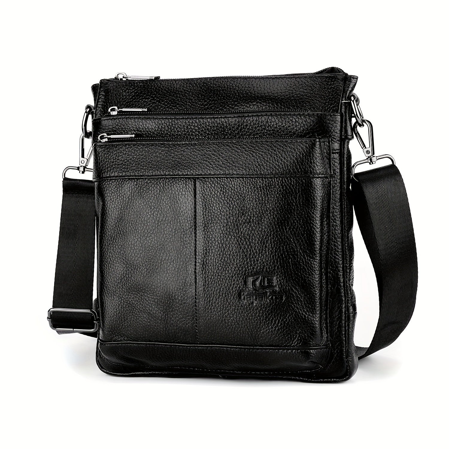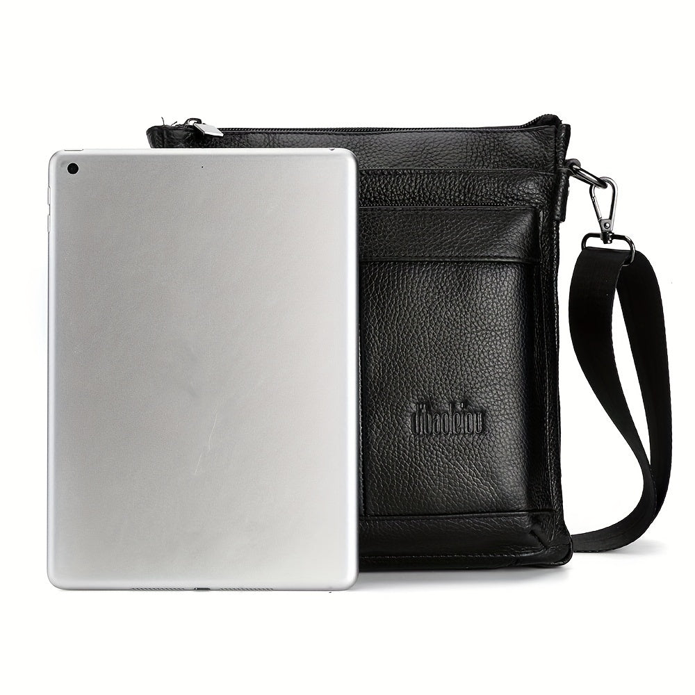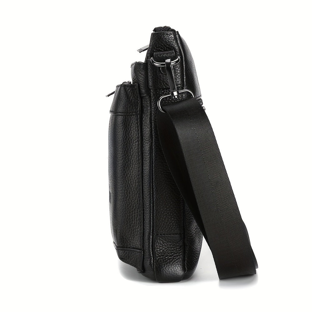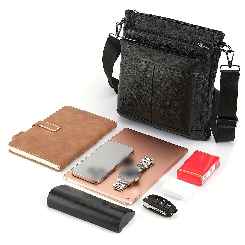 DEABOLAR Genuine Leather Crossbody Bag, Business Style Multi-Compartment Shoulder Bag with Adjustable Strap, Large Capacity Zippered Chest Bag for Office Commute, School, Travel - Black, Commuter Accessory | Professional Style Bag | Topgrain Leather