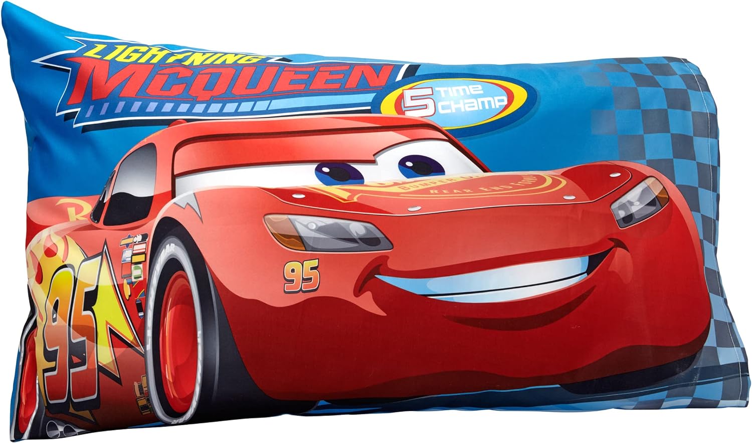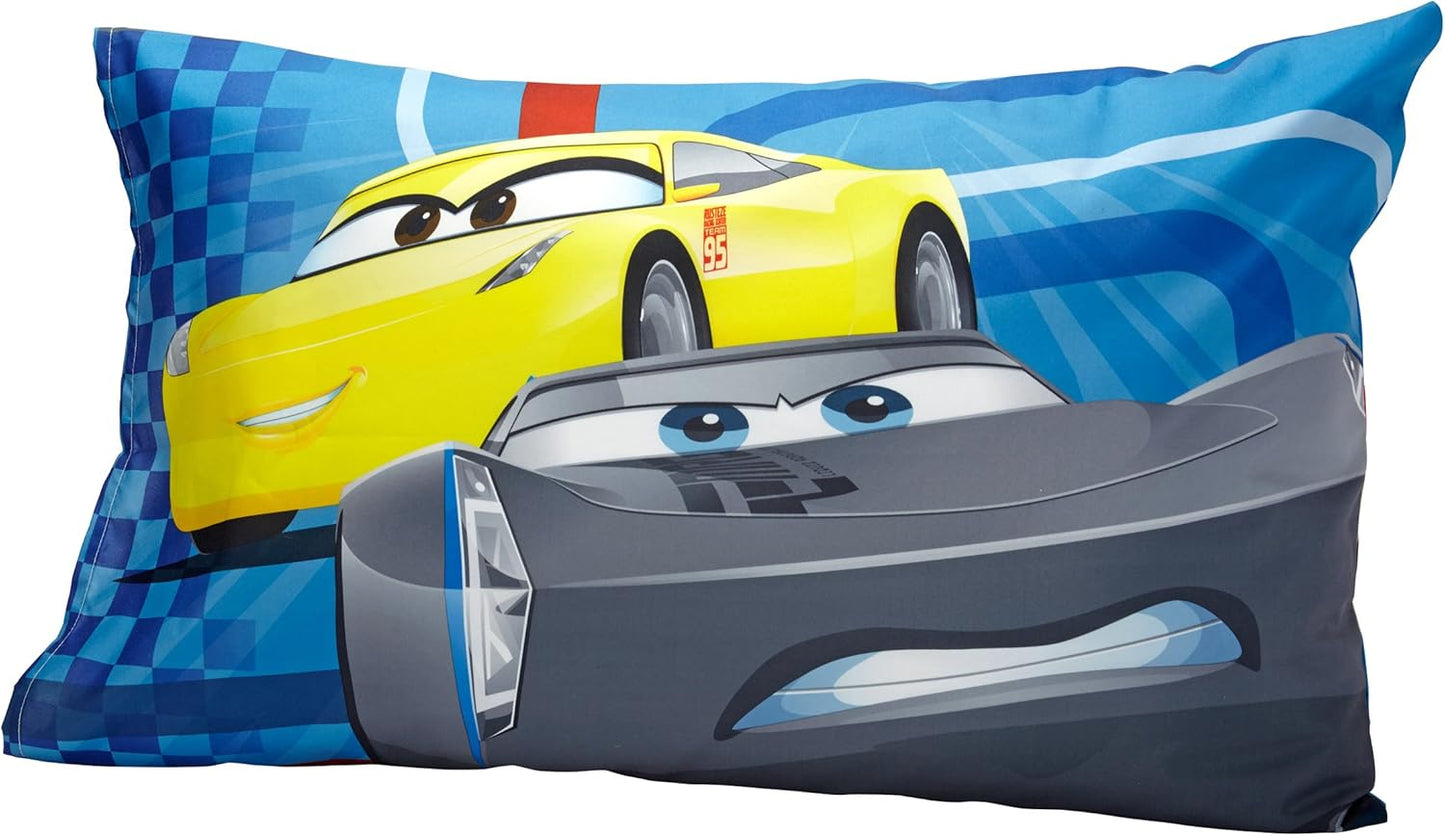 This revved up toddler bedding set features Lightning McQueen, Cruz Ramirez, and other characters, logos, and symbols from the hit Disney movie Cars 3 in shades of red, blue, and yellow.