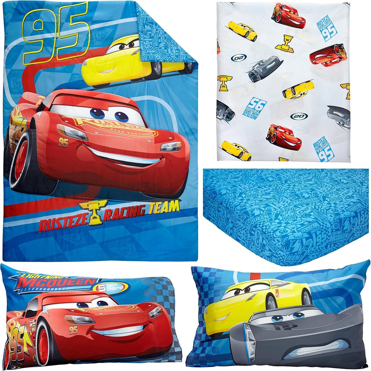 Disney Cars Rusteze Racing Team 4 Piece Toddler Bedding Set, Blue/Red/Yellow/White
