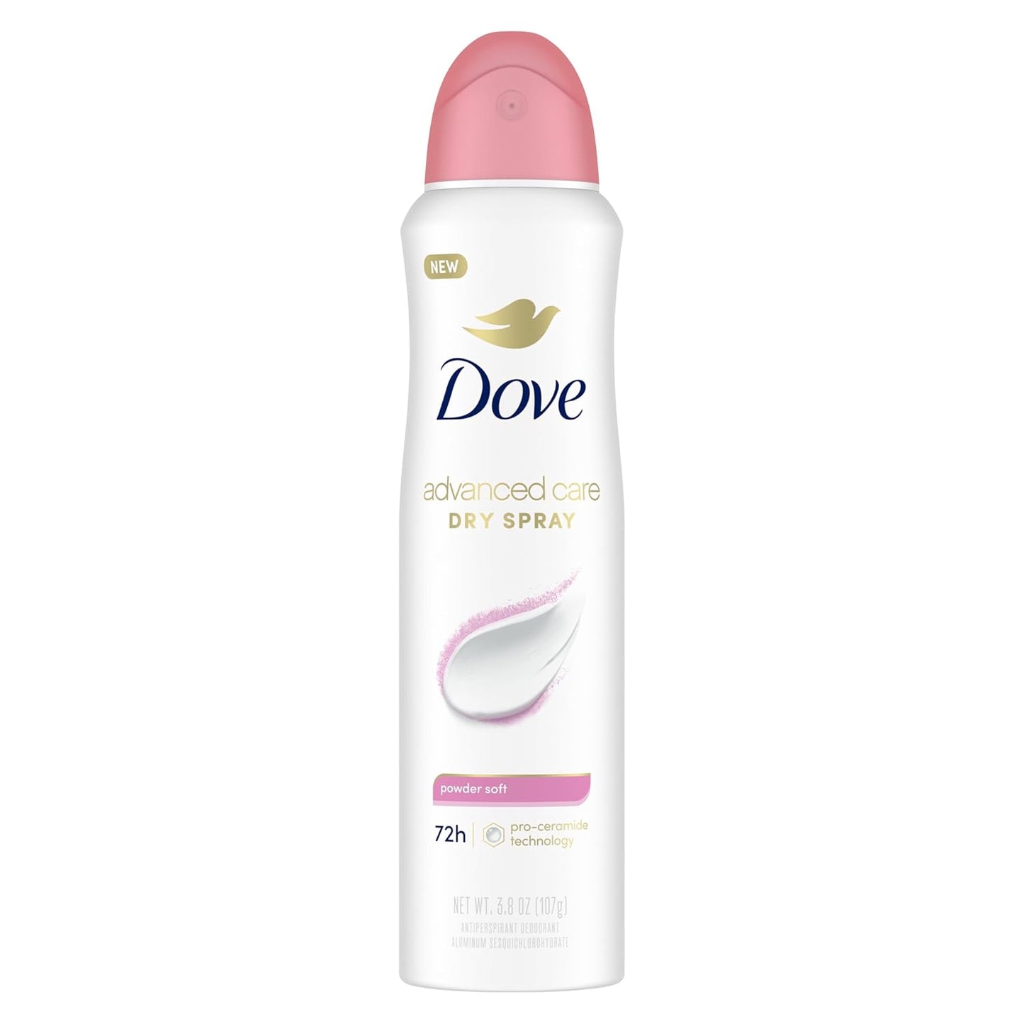 Dove Advanced Care Antiperspirant Deodorant Spray Powder Soft 3 Count to help skin barrier repair after shaving 72 hour antiperspirant deodorant for soft underarms with boosted ceramide levels 3.8 oz