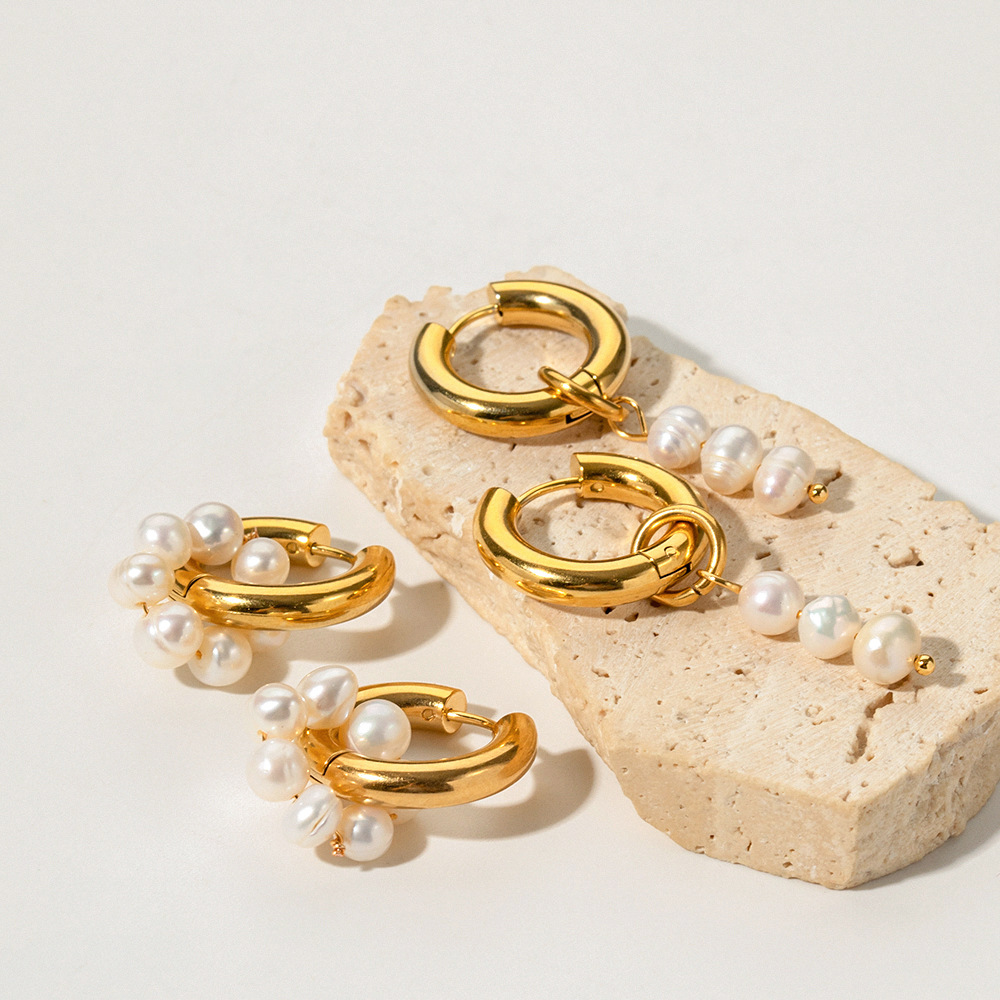 Earrings Wearring 18K Gold Plated Asymmetric Natural Fresh Water Pearl Embellished Ear Ring Earrings Jewelry Accessories