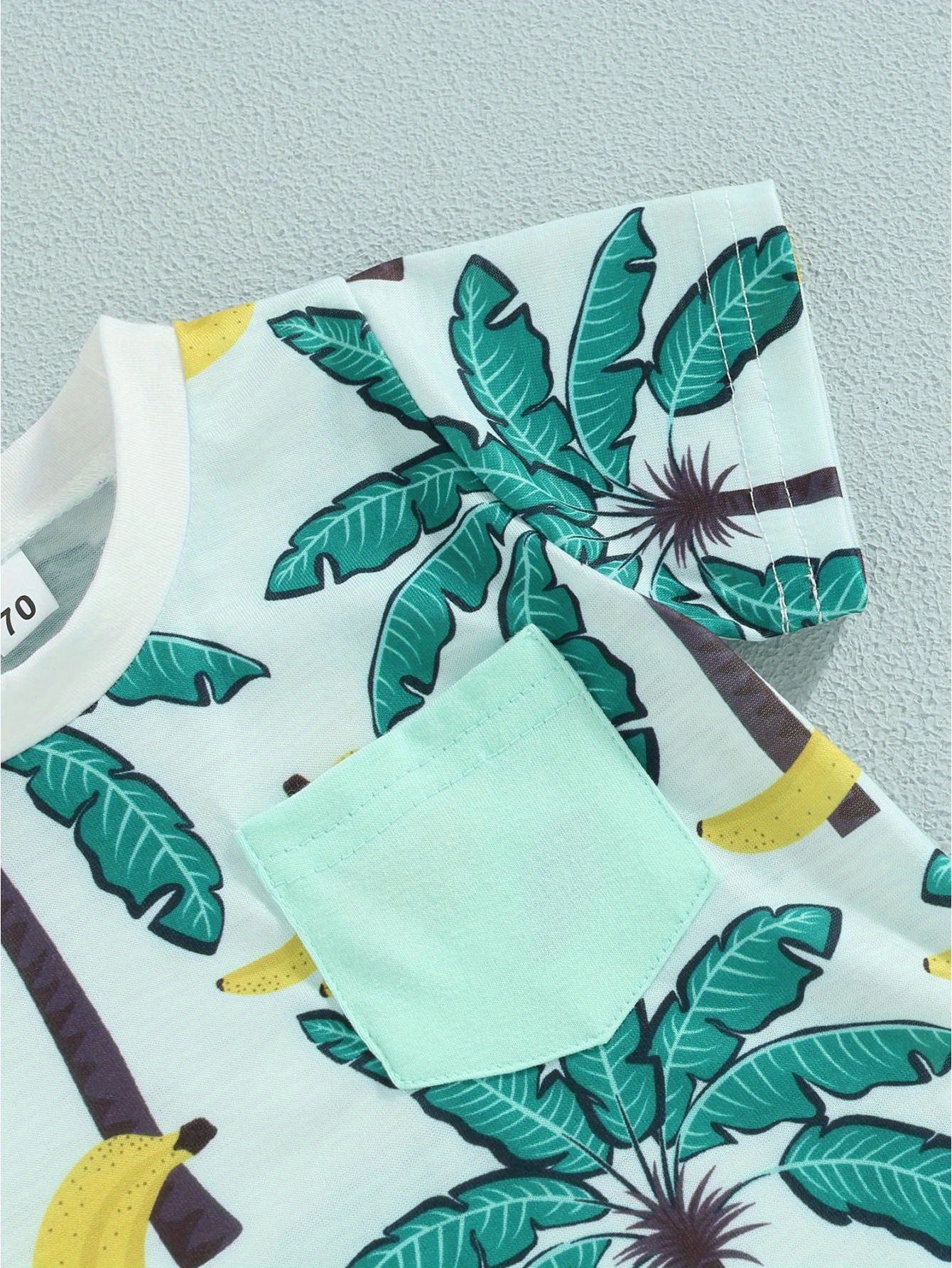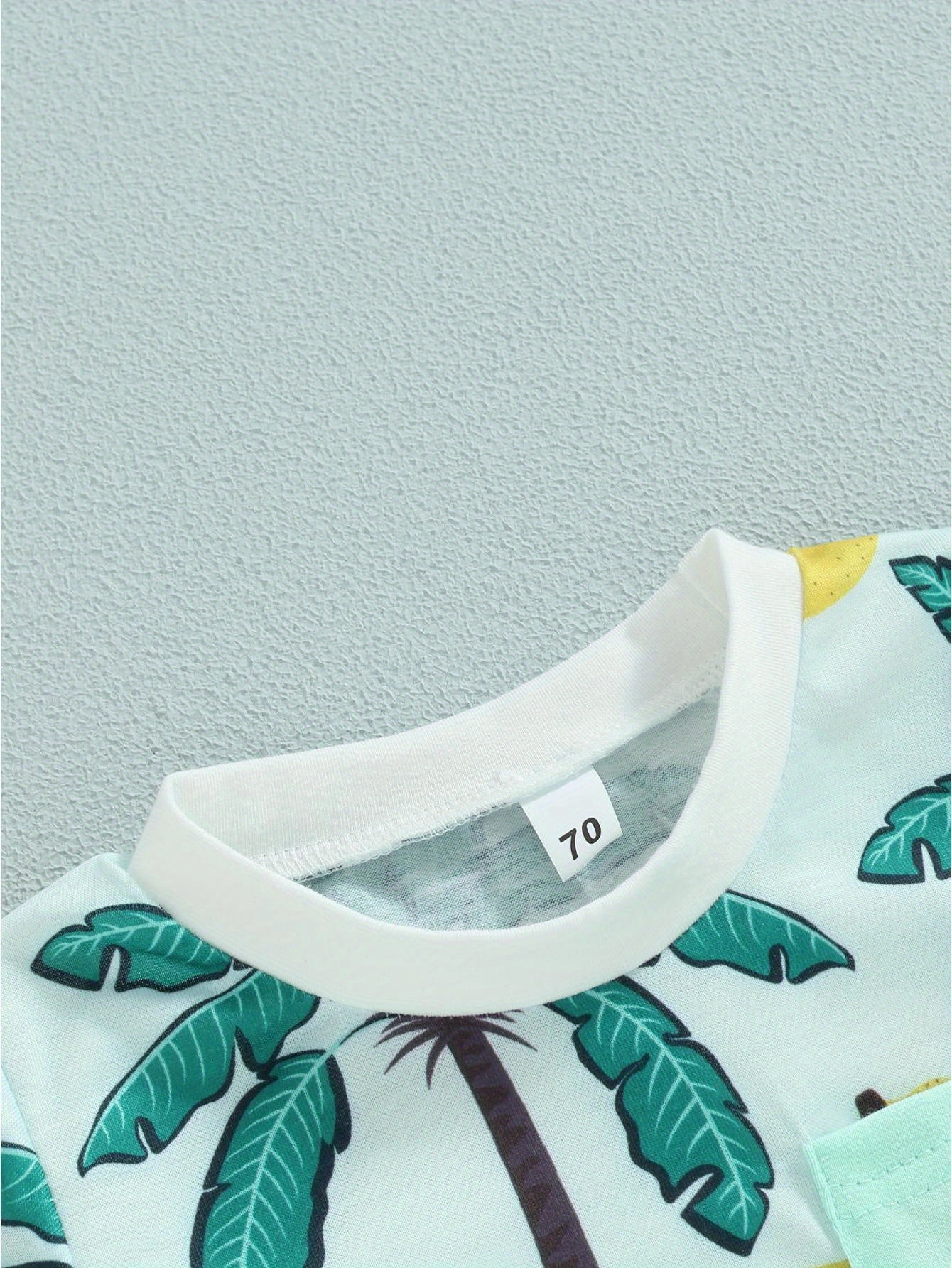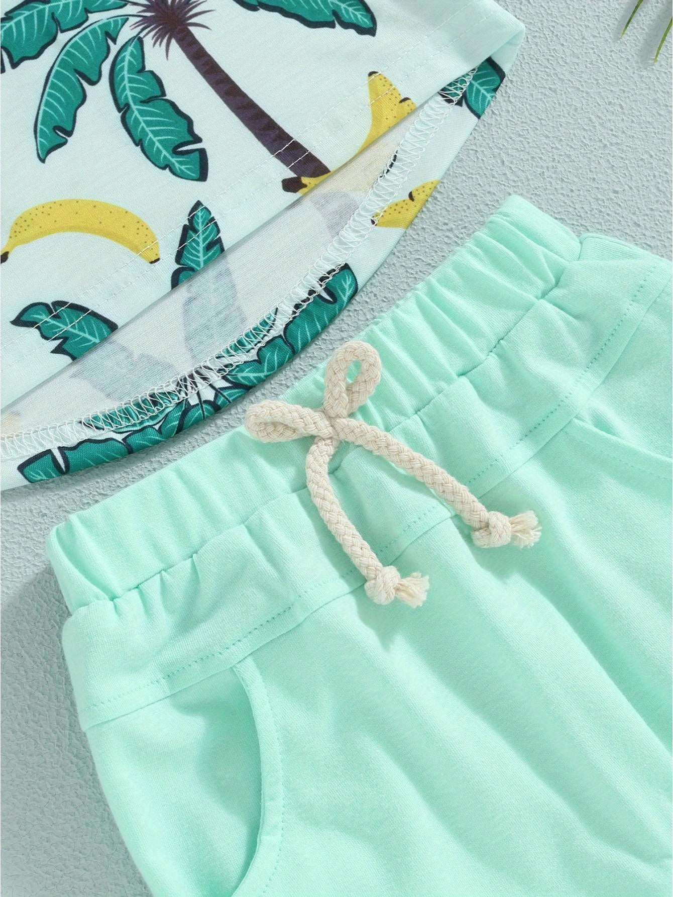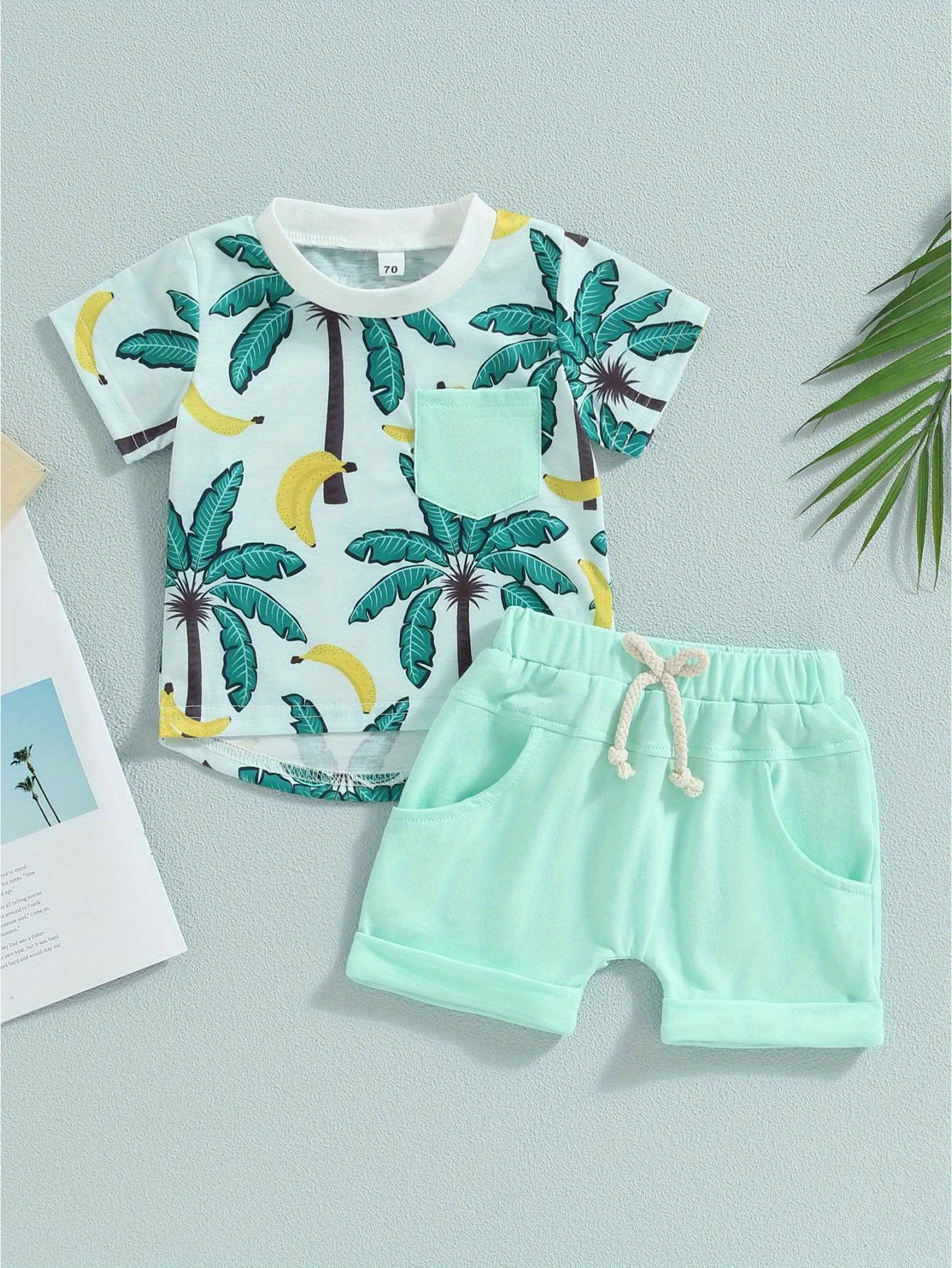 Easy Care, Boys' Tropical Palm Print Hawaiian T-Shirt & Light Blue Drawstring Shorts Set - Summer Beach Outfit, Cotton Blend, Machine Washable, Perfect for Outdoor