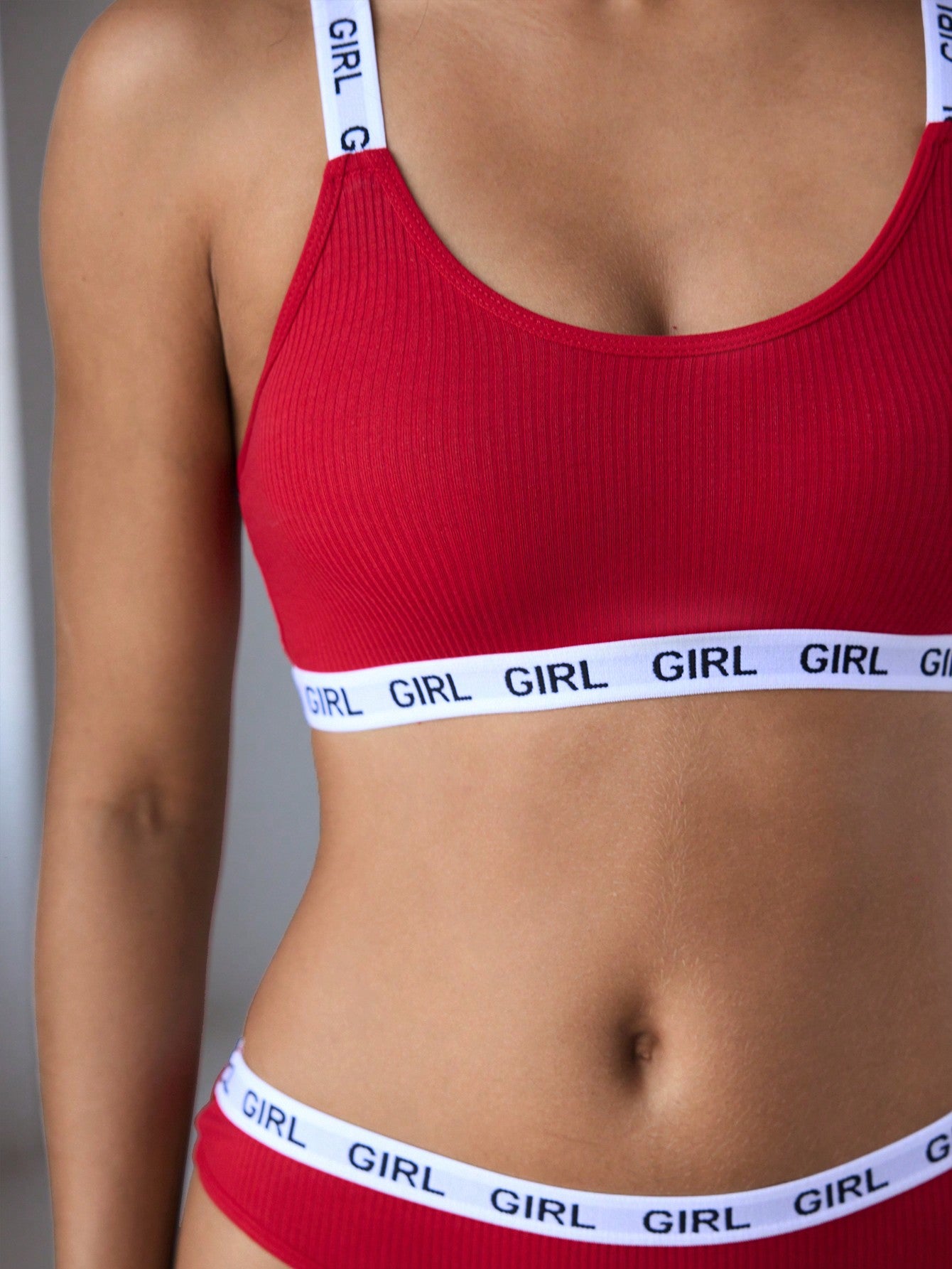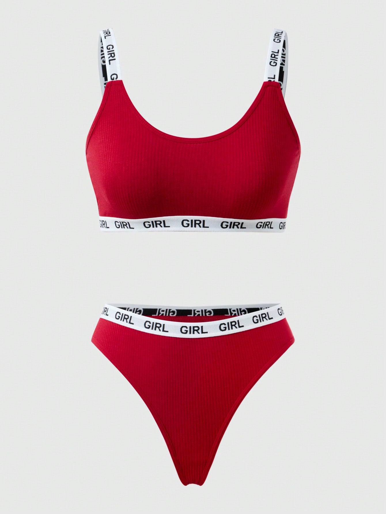 EasyFave Yoga Letter Tape Bra & Panty Lingerie Set Sports