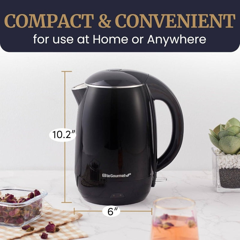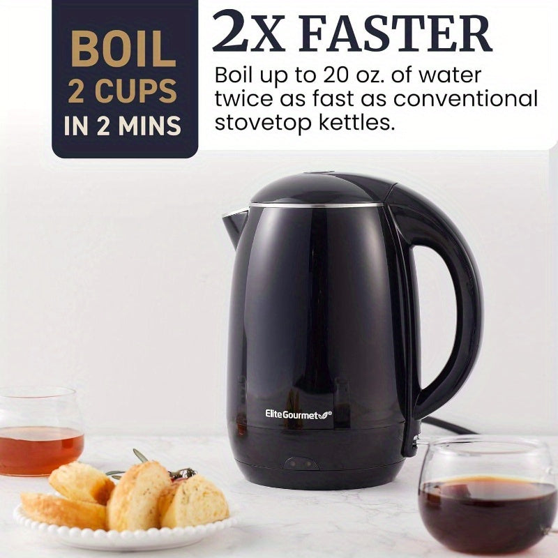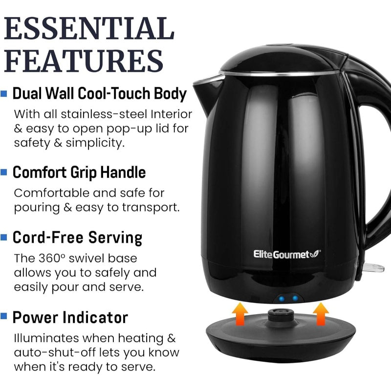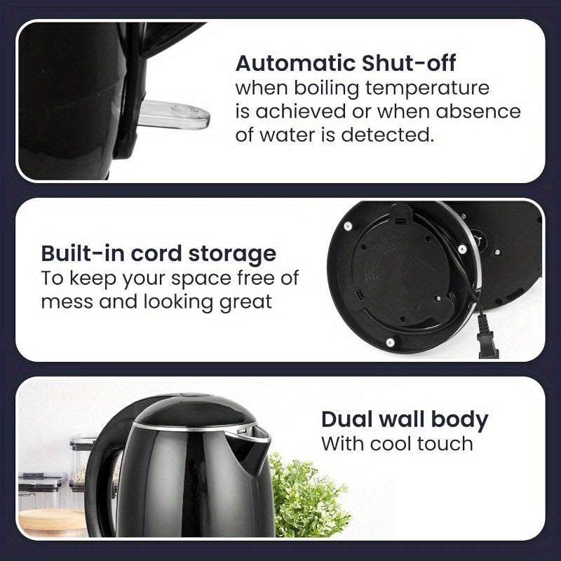 EKT1821 1.8L/1.8L Electric Kettle - Fast Boiling, Double Wall Insulated, Auto Shut-Off & Boil-Dry Protection, Cordless Serving Base, Stainless Steel Lid, Cool-Touch Exterior, for Home, Office, Commercial Use - Black, Office Kitchen, Sleek Design, Durable