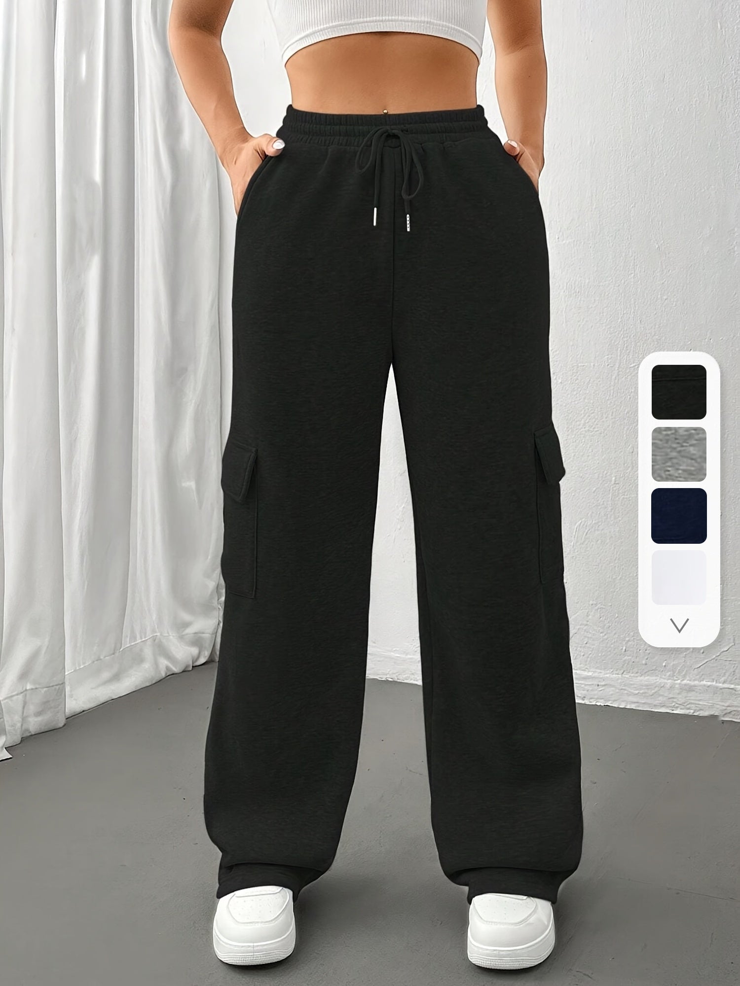 Elastic Drawstring Waist Solid Color Multi-pocket Slim Sports Sweatpants Casual Cargo Pants Outer Wear