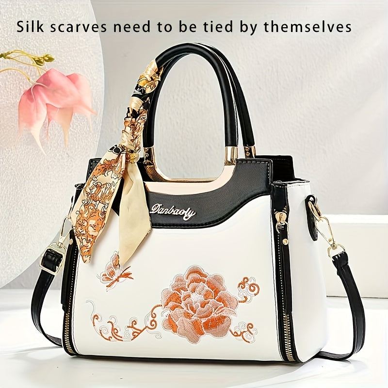 Elegant Women'S Crossbody Bag with Floral Pattern - Large Capacity, Black, Zipper Closure, Detachable Strap, Perfect for Everyday Use or Gift Giving, Everyday Handbag | Elegant Handbag | Detachable Strap Bag