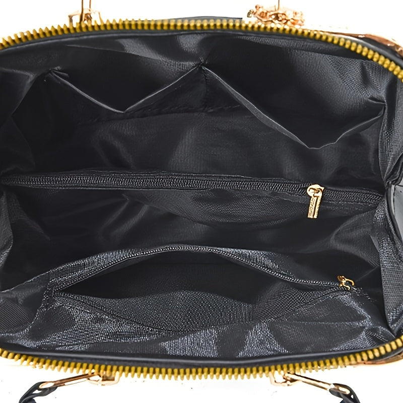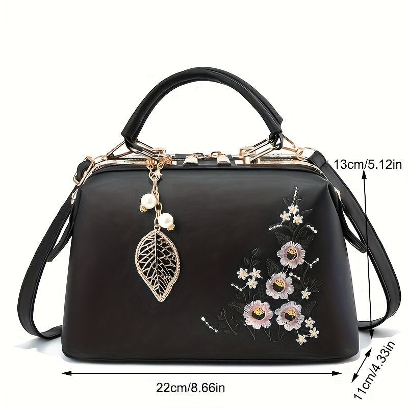 Elegant Women's Floral Embroidered Handbag - Trendy Green Synthetic Leather Crossbody Bag with Adjustable Strap, Golden-Tone Hardware & Decorative Leaf Charm
