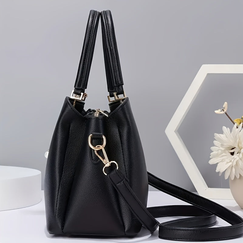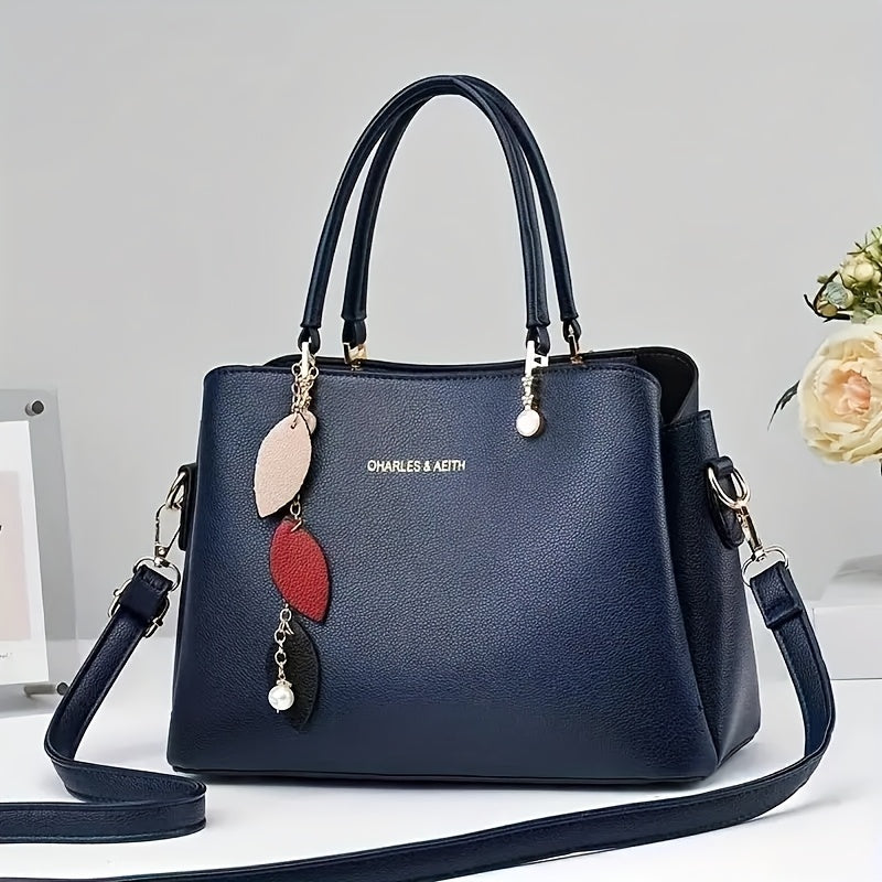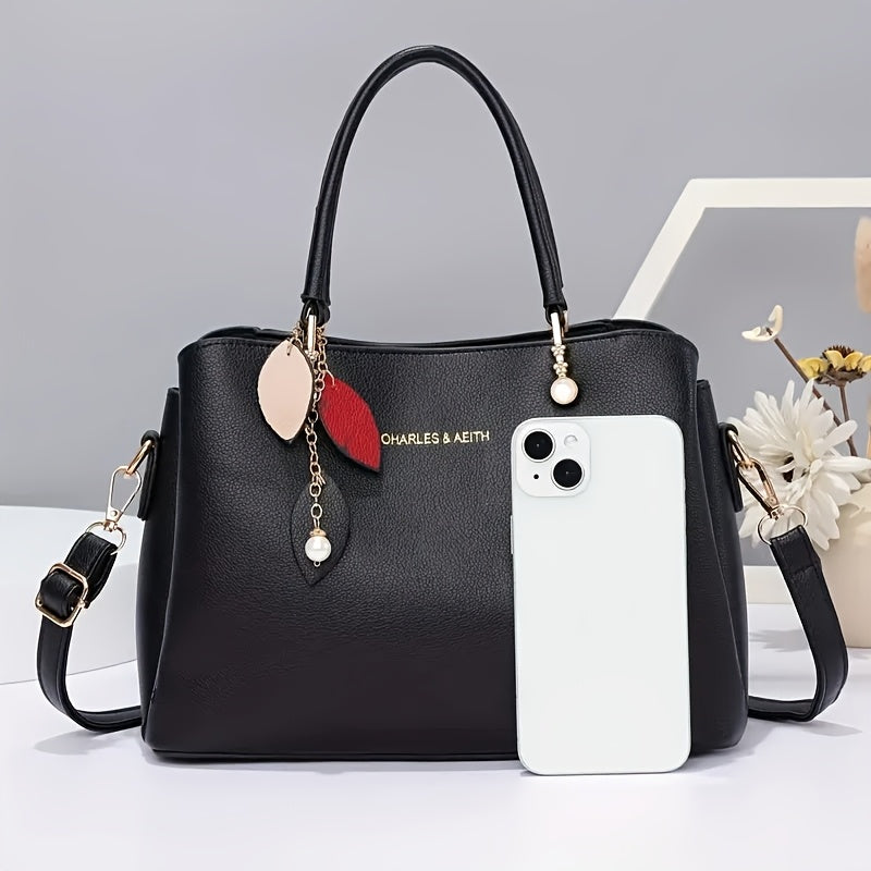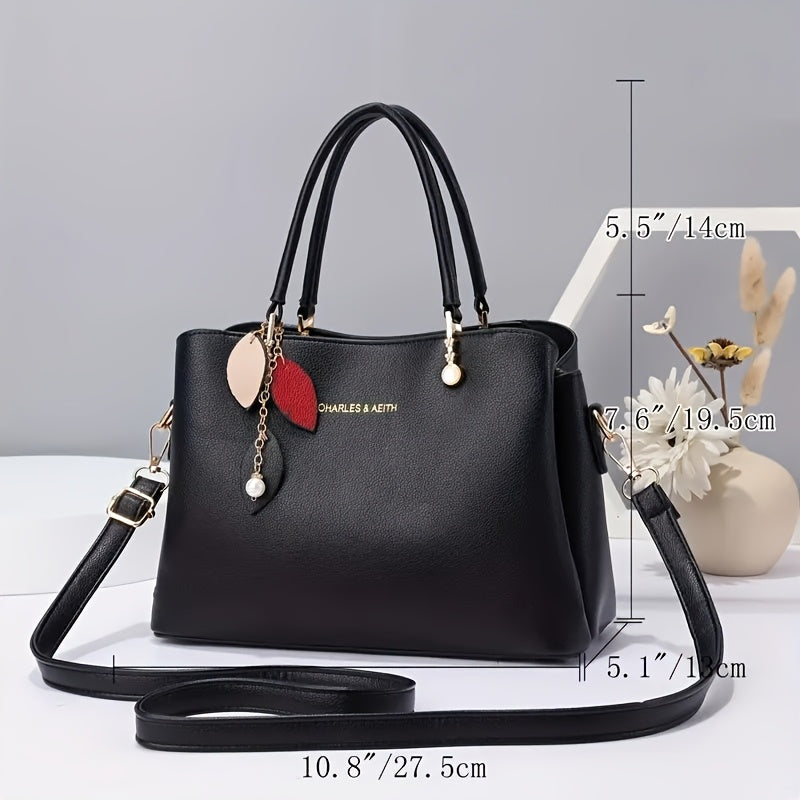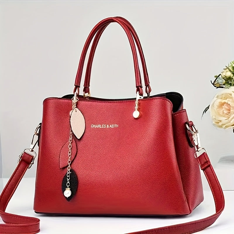 Elegant Women's Handbag - Vibrant Red with Adjustable Shoulder Strap, Golden-Tone Hardware & Tassel Charms, Zipper Closure, Durable Polyester Lining for Work, Casual, Formal Occasions, Everyday Luxury Bag, Sophisticated Charm, Oiled Edge Construction