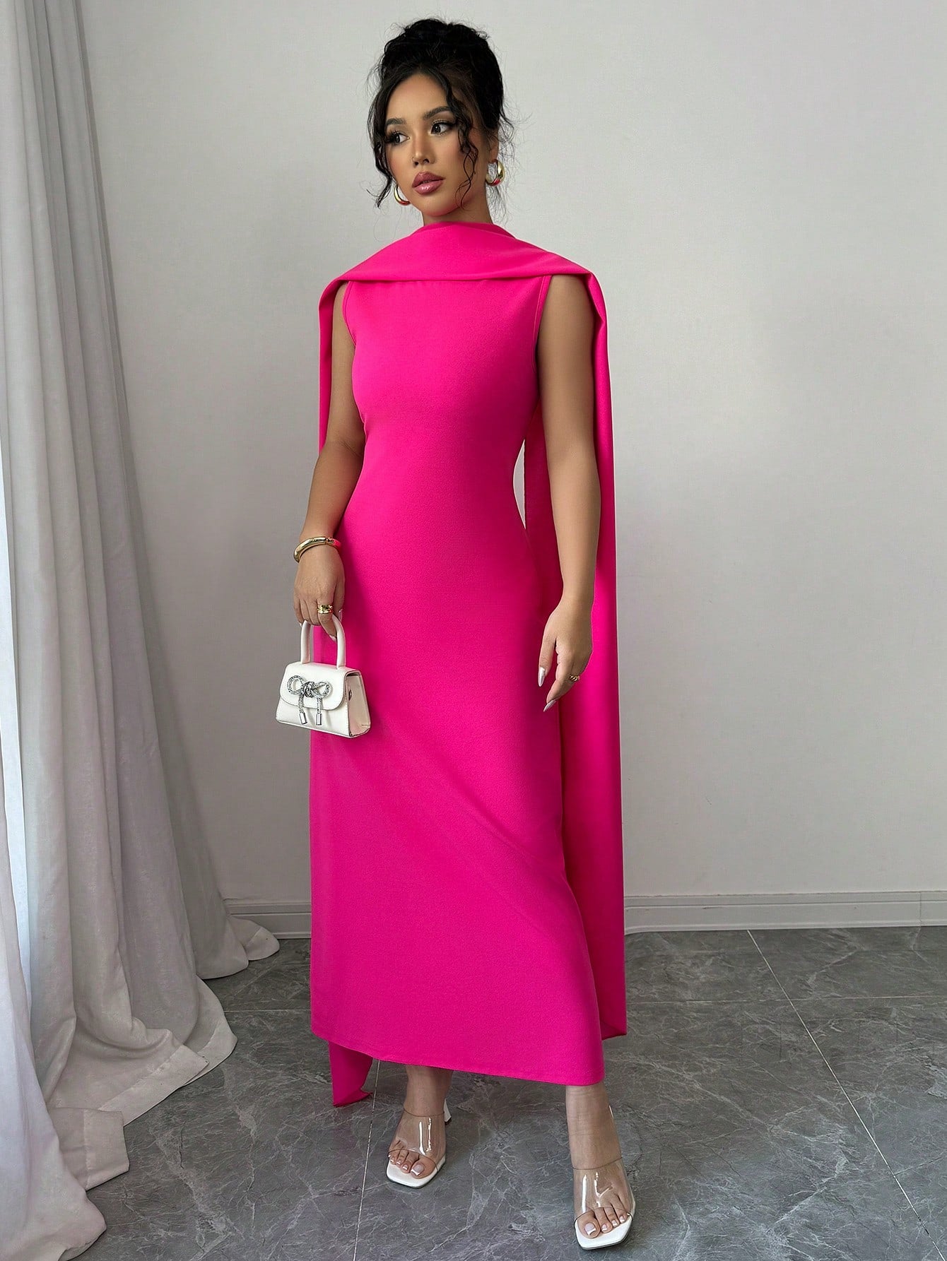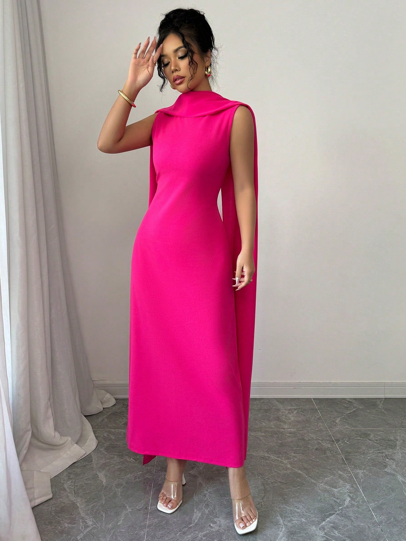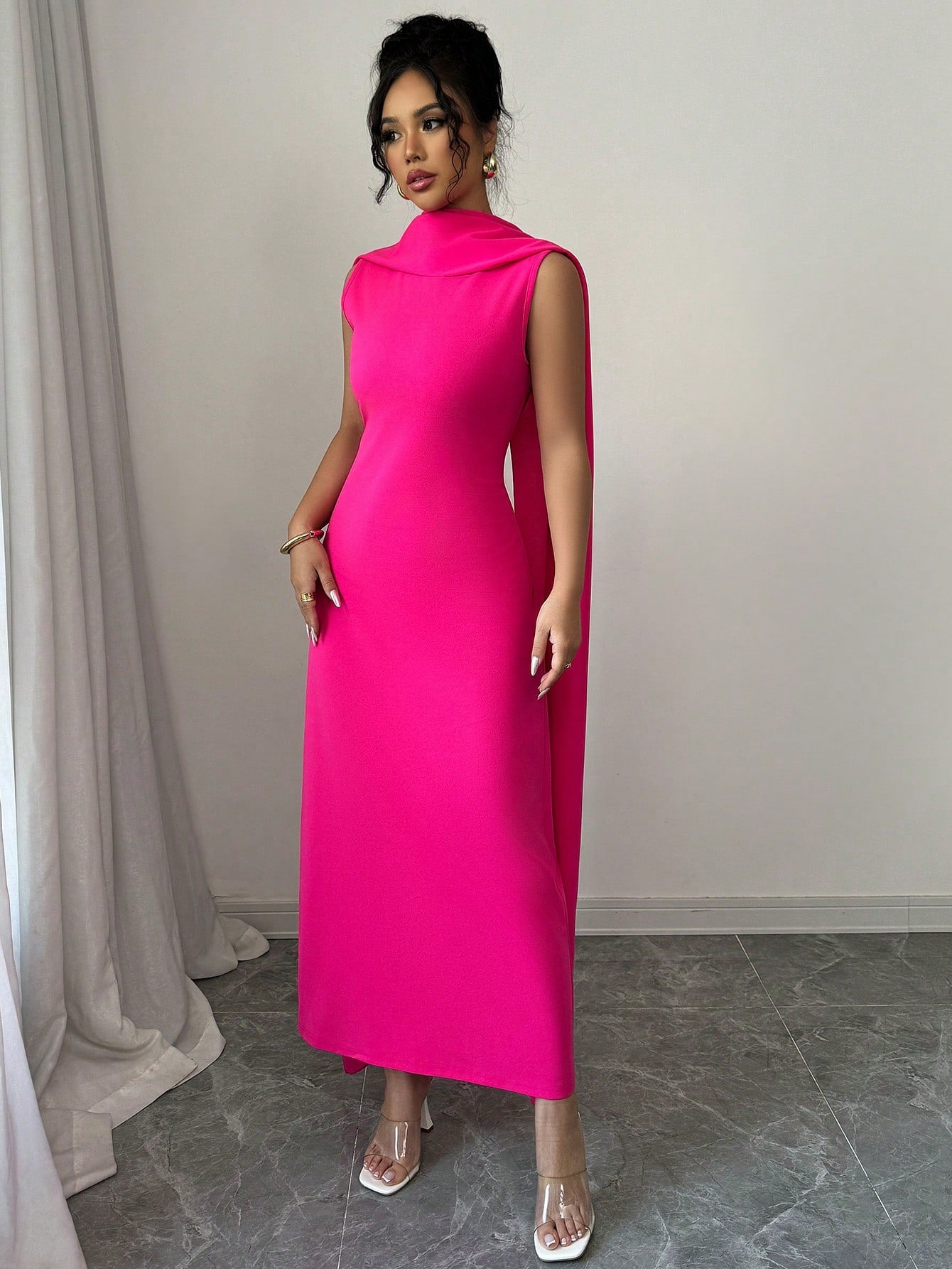Elenzga Women's Commuting Minimalist Solid Color Slim Fit Long Dress