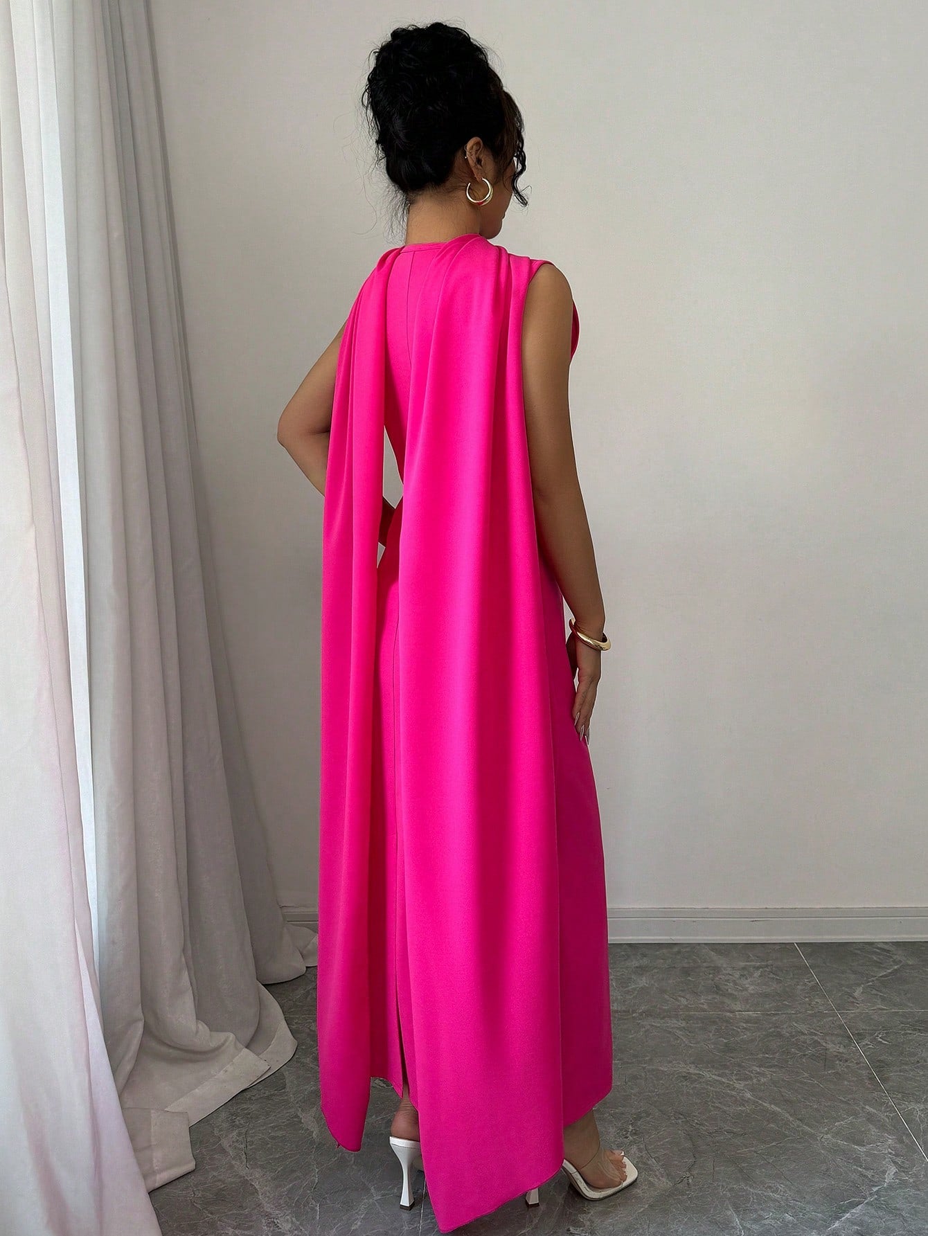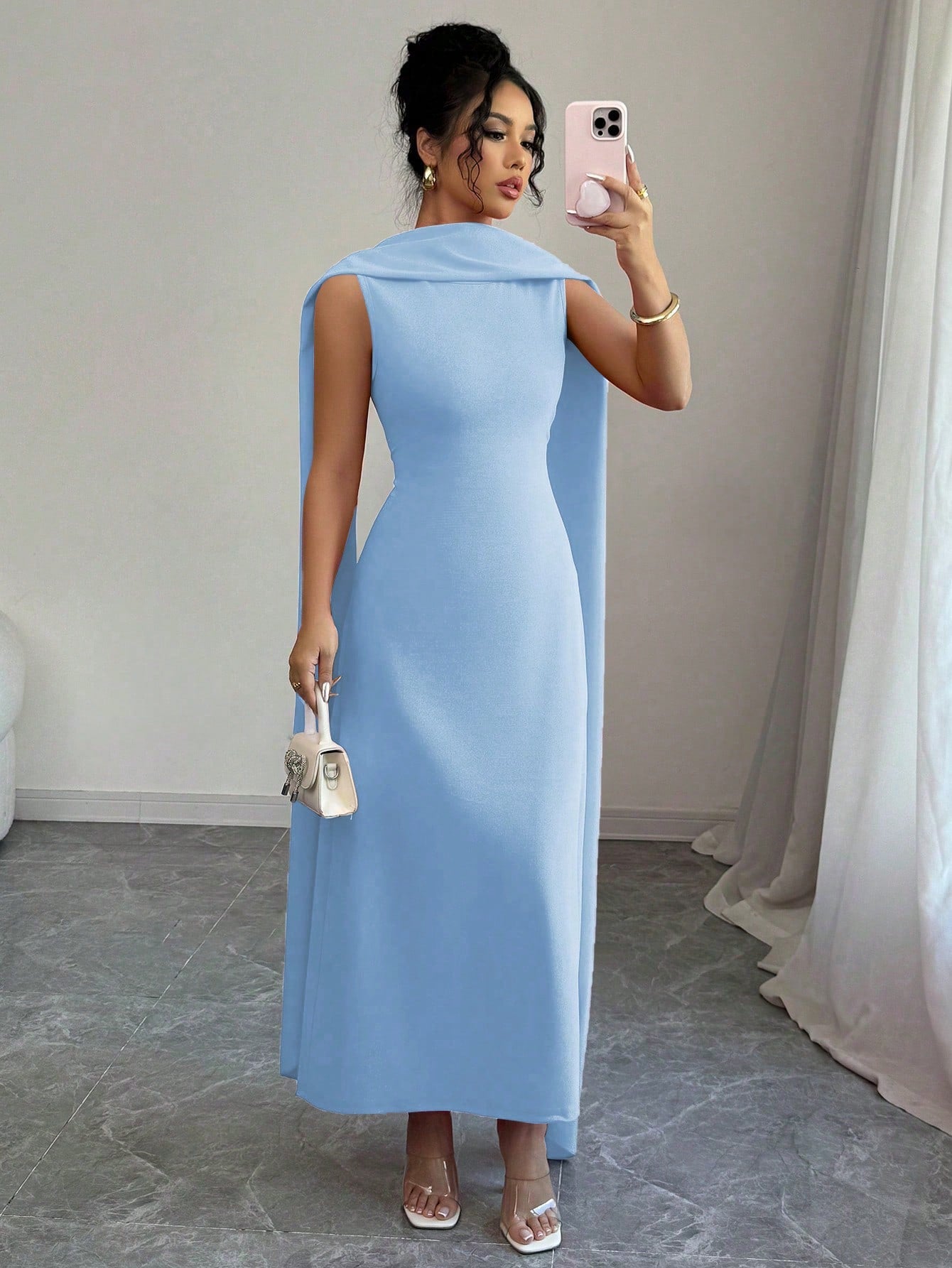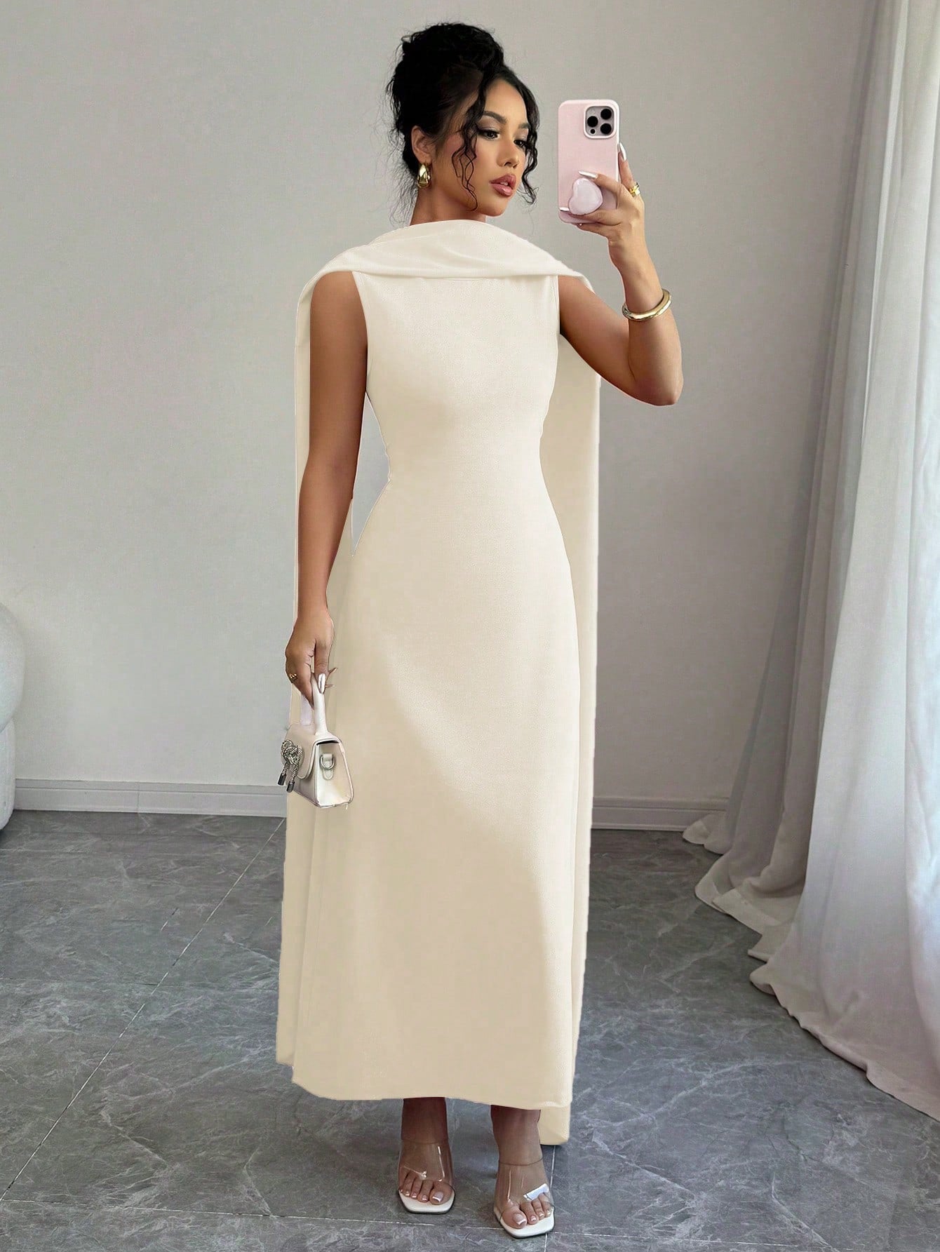 Elenzga Women's Commuting Minimalist Solid Color Slim Fit Long Dress