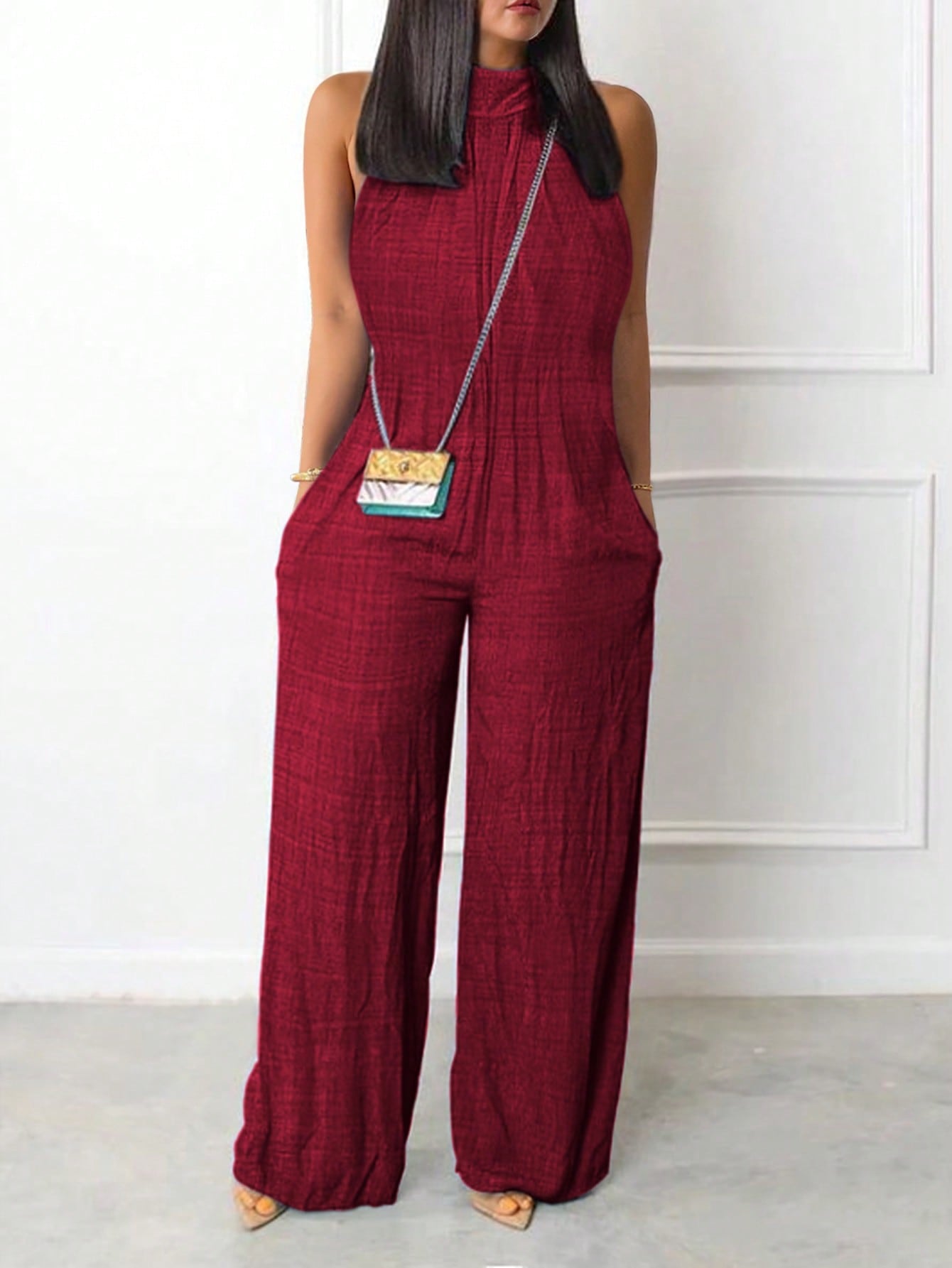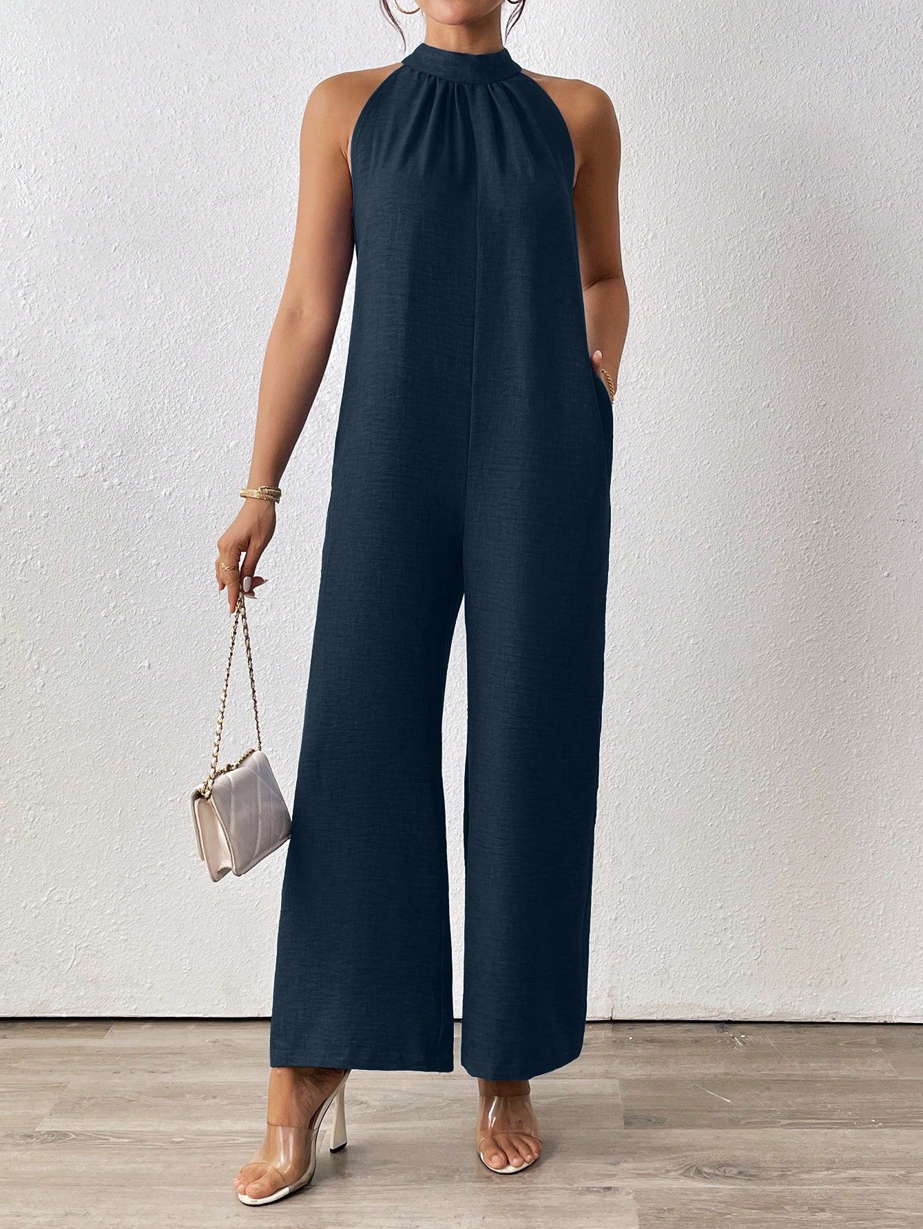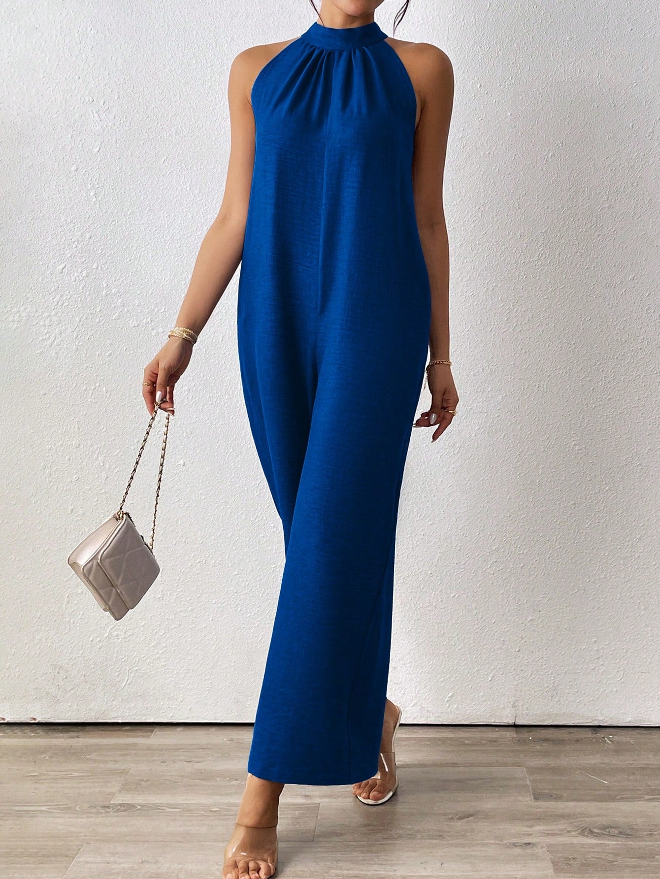 EMERY ROSE Sleeveless Pleated Halter Jumpsuit For Elegant And Youthful Women